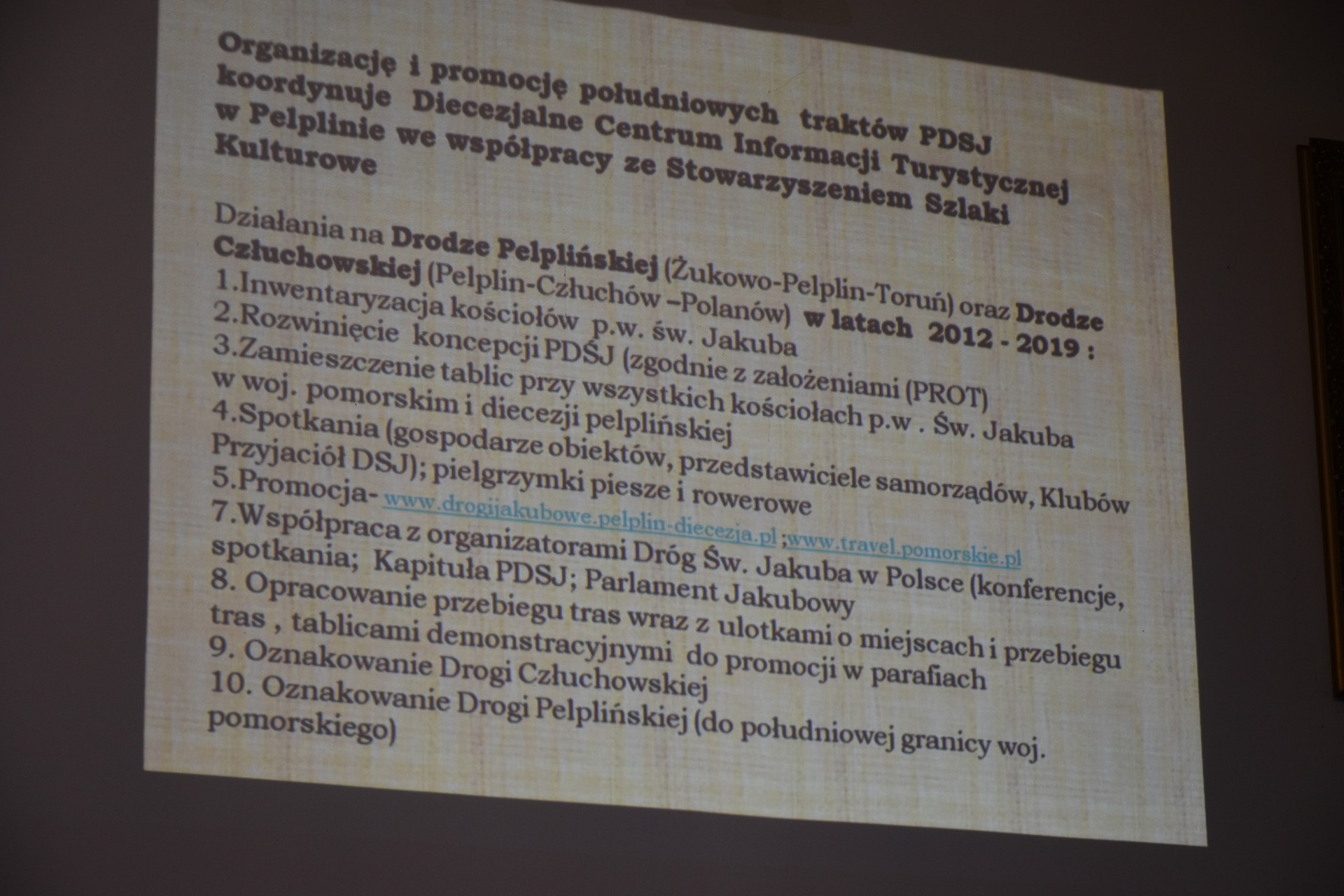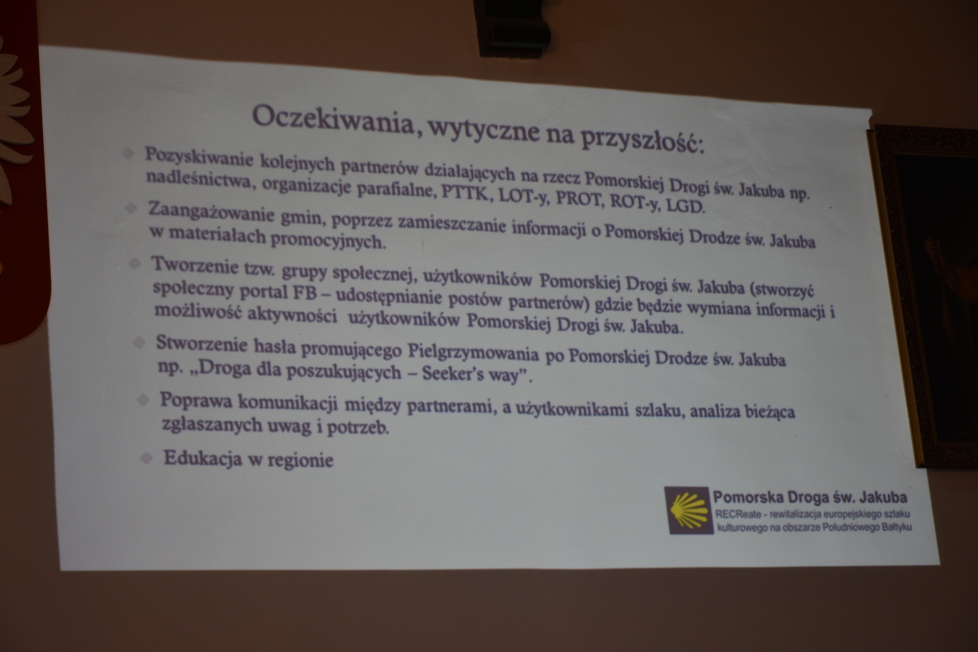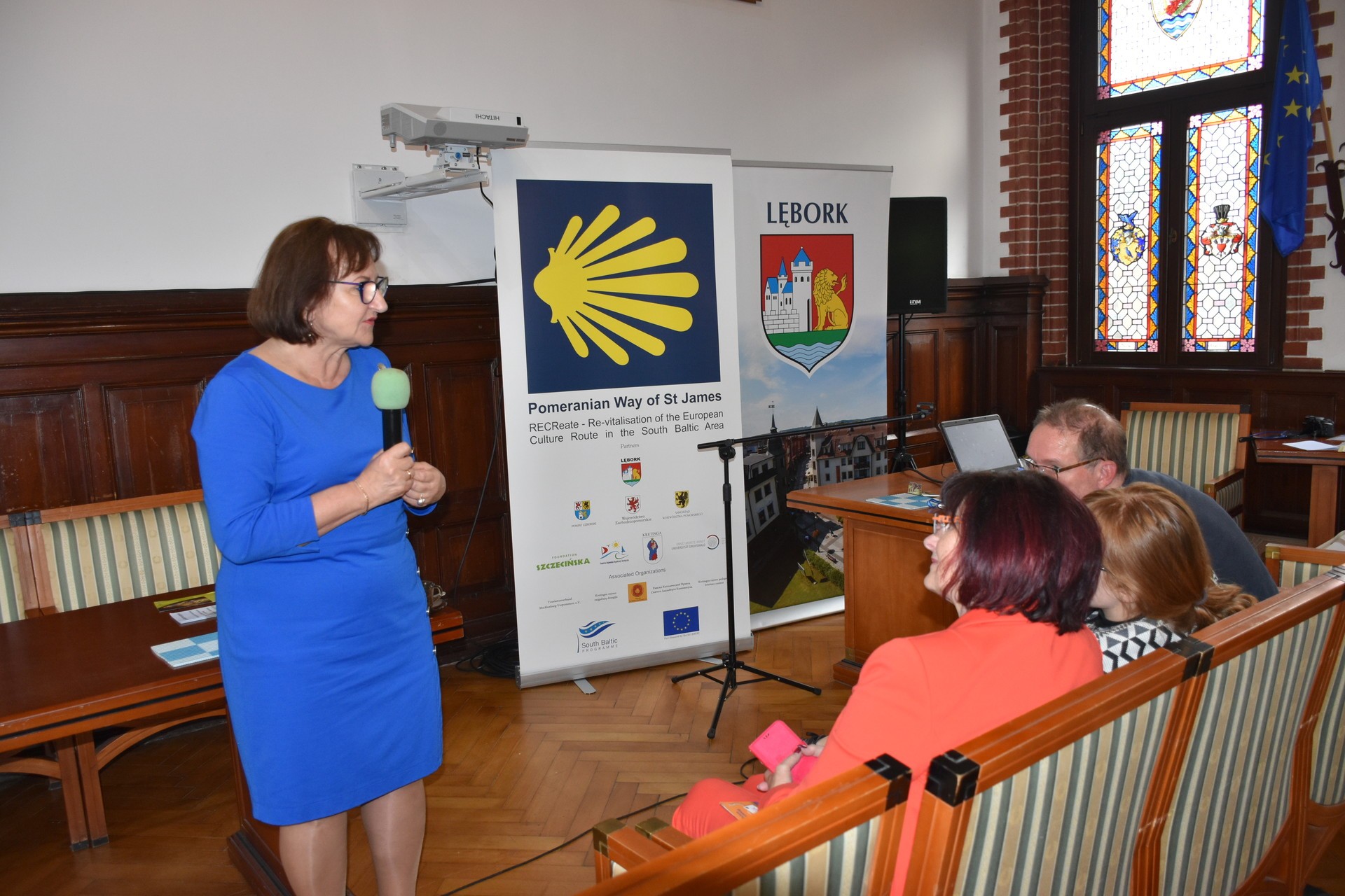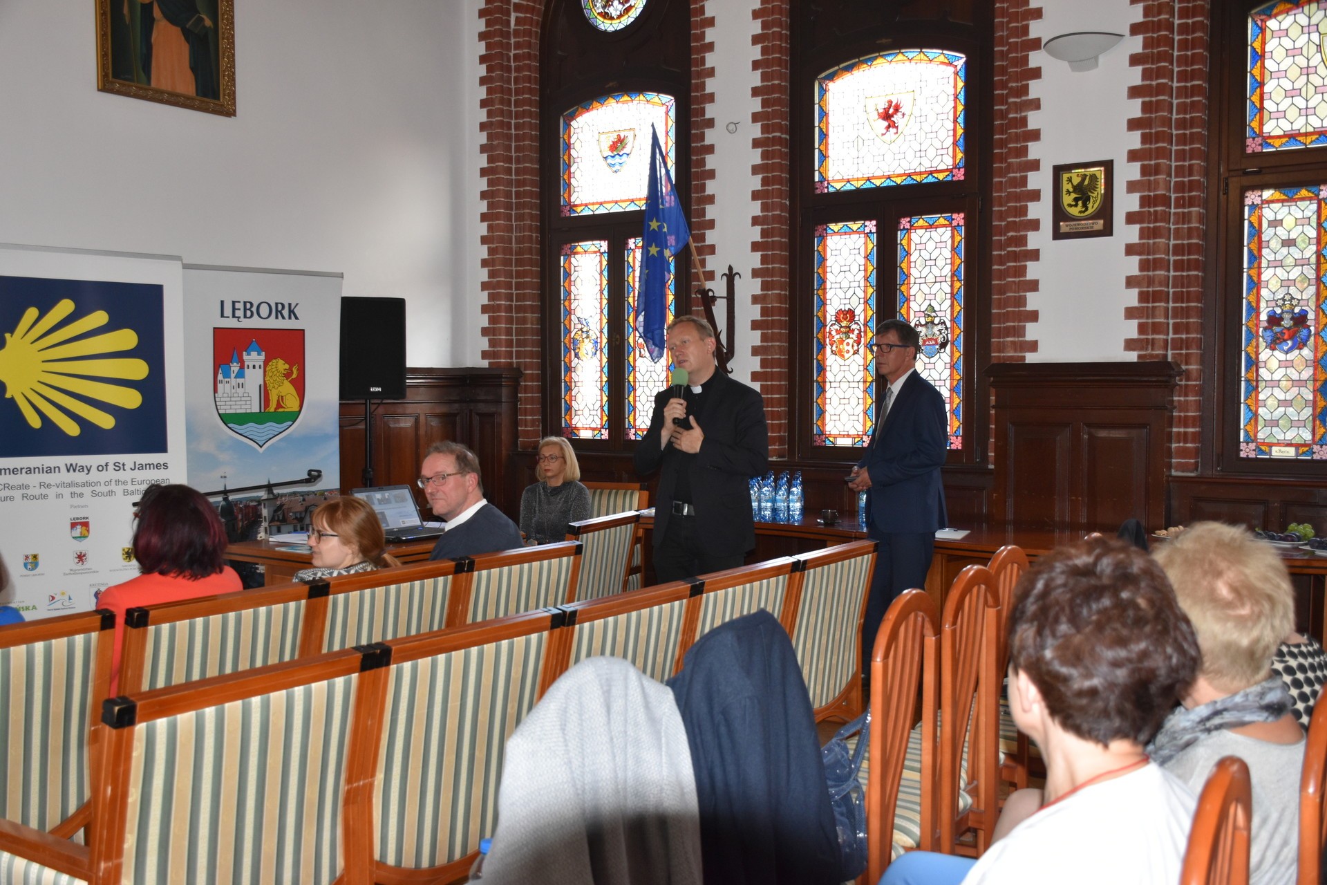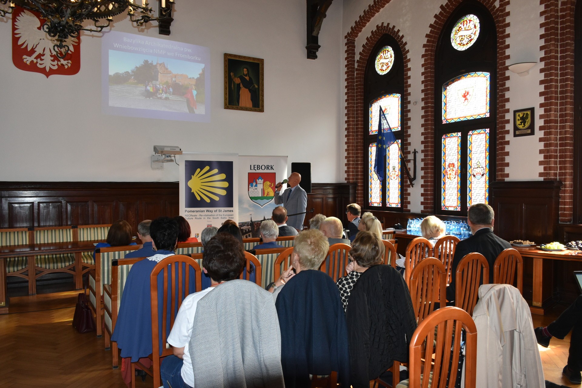 12 września 2019 roku w lęborskim ratuszu spotkali się przedstawiciele Partnerów, którzy w latach 2011-2014 realizowali projekt „RECReate - Rewitalizacja europejskiego szlaku kulturowego na obszarze Południowego Bałtyku – Pomorska Droga św. Jakuba”, członkowie Kapituły Pomorskiej Drogi św. Jakuba oraz animatorzy Klubów Przyjaciół Pomorskiej Drogi św. Jakuba i zaproszeni Goście. Powiat Lęborski reprezentowała Alicja Zajączkowska, Starosta Lęborski. Na spotkaniu nie zabrakło także delegacji Urzędu Marszałkowskiego Środkowej Frankonii.