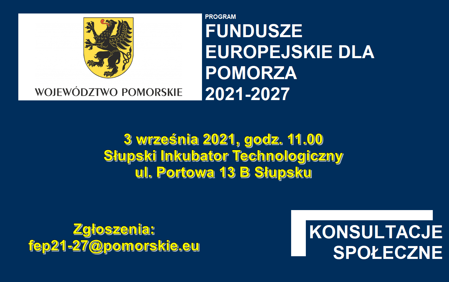 Na 3 września (piątek) zaplanowane zostało spotkanie konsultacyjne w sprawie projektu programu Fundusze Europejskie dla Pomorza. Subregion słupski będzie mógł się wypowiedzieć w tej sprawie w siedzibie Słupskiego Inkubatora Technologicznego.