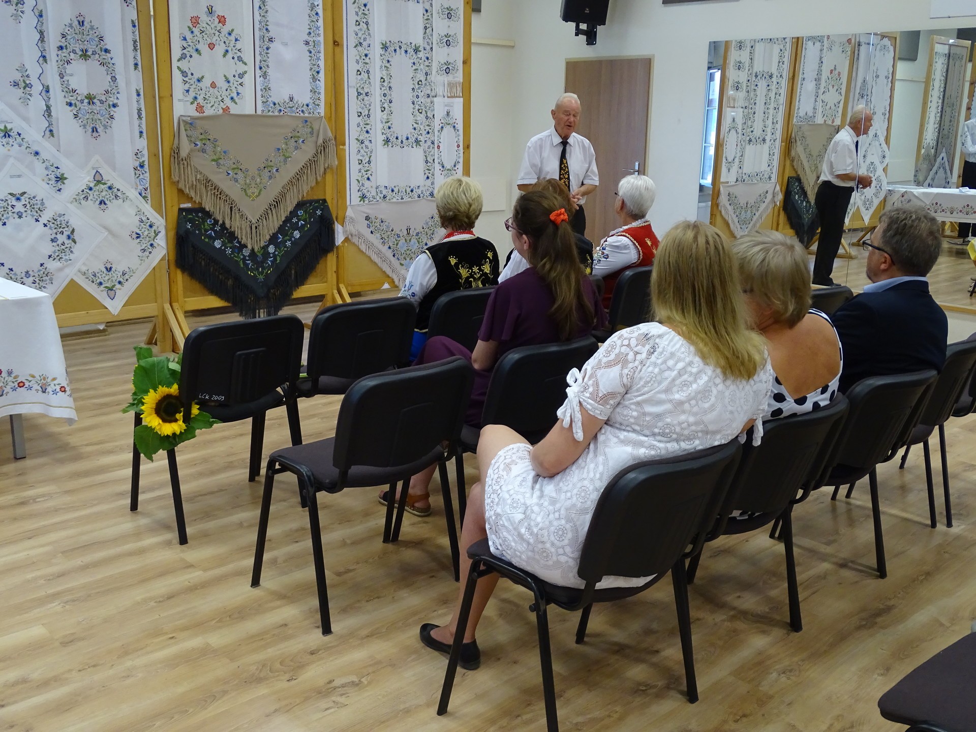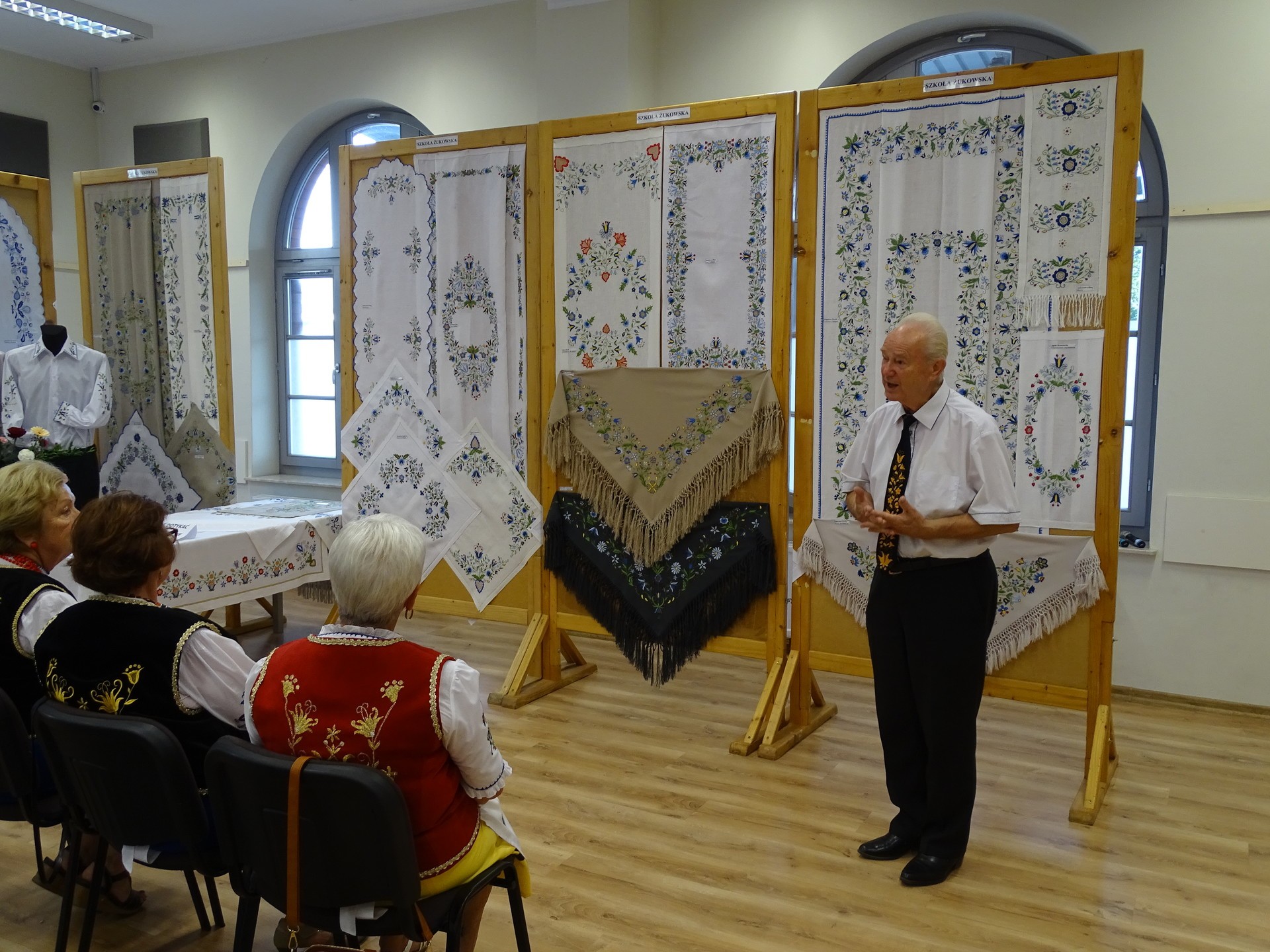 Jeden z konkursowych jurorów, pomysłodawca przedsięwzięcia, pan Edmund Szymikowski omówił narodziny i rozwój haftu na Kaszubach, a także zaprezentował szczegóły wyróżniające poszczególne szkoły haftu kaszubskiego.
