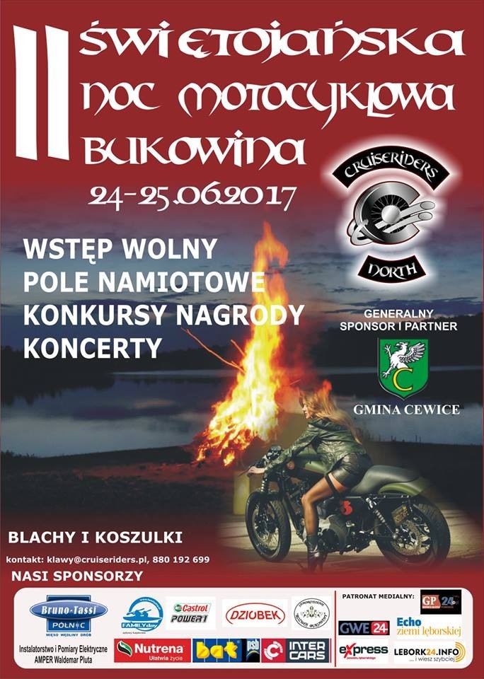 Już w najbliższą sobotę 24-25.06.2017 r., na terenie rekreacyjnym przy jeziorze Bukowińskim odbędzie się II Świętojańska Noc Motocyklowa, na którą już dziś serdecznie zapraszamy!!!