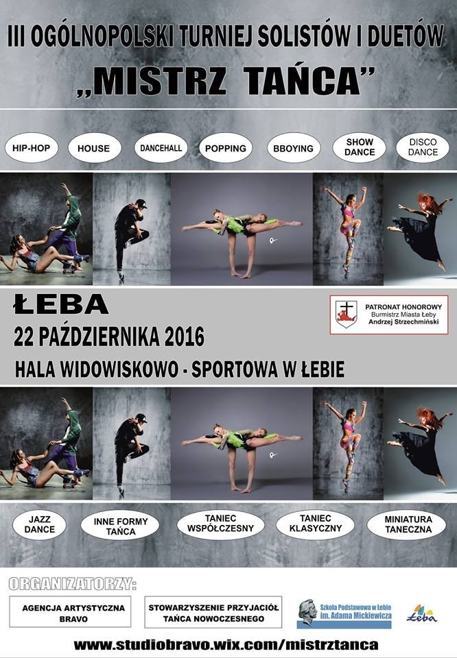 22 października 2016 roku w Łebie odbędzie się III Ogólnopolski Turniej Tańca pn. „Mistrz Tańca”. Jest to impreza taneczna, adresowana wyłącznie dla solistów i duetów, której głównym organizatorem jest Agencja Artystyczna "BRAVO". Swoje talenty taneczne zaprezentuje ponad 300 uczestników z całej Polski m.in. z takich miejscowości jak: Płock, Malbork, Gdańsk, Świnoujście czy ze Szczecina. Turniej odbędzie się na Hali widowiskowo-Sportowej w Łebie, mieszczącej się przy ulicy Tysiąclecia 11. Pierwsze występy rozpoczną się już o godzinie 9.00 i potrwają do późnych godzin wieczornych. Uczestnicy zostaną podzieleni w danej kategorii na grupy wiekowe.