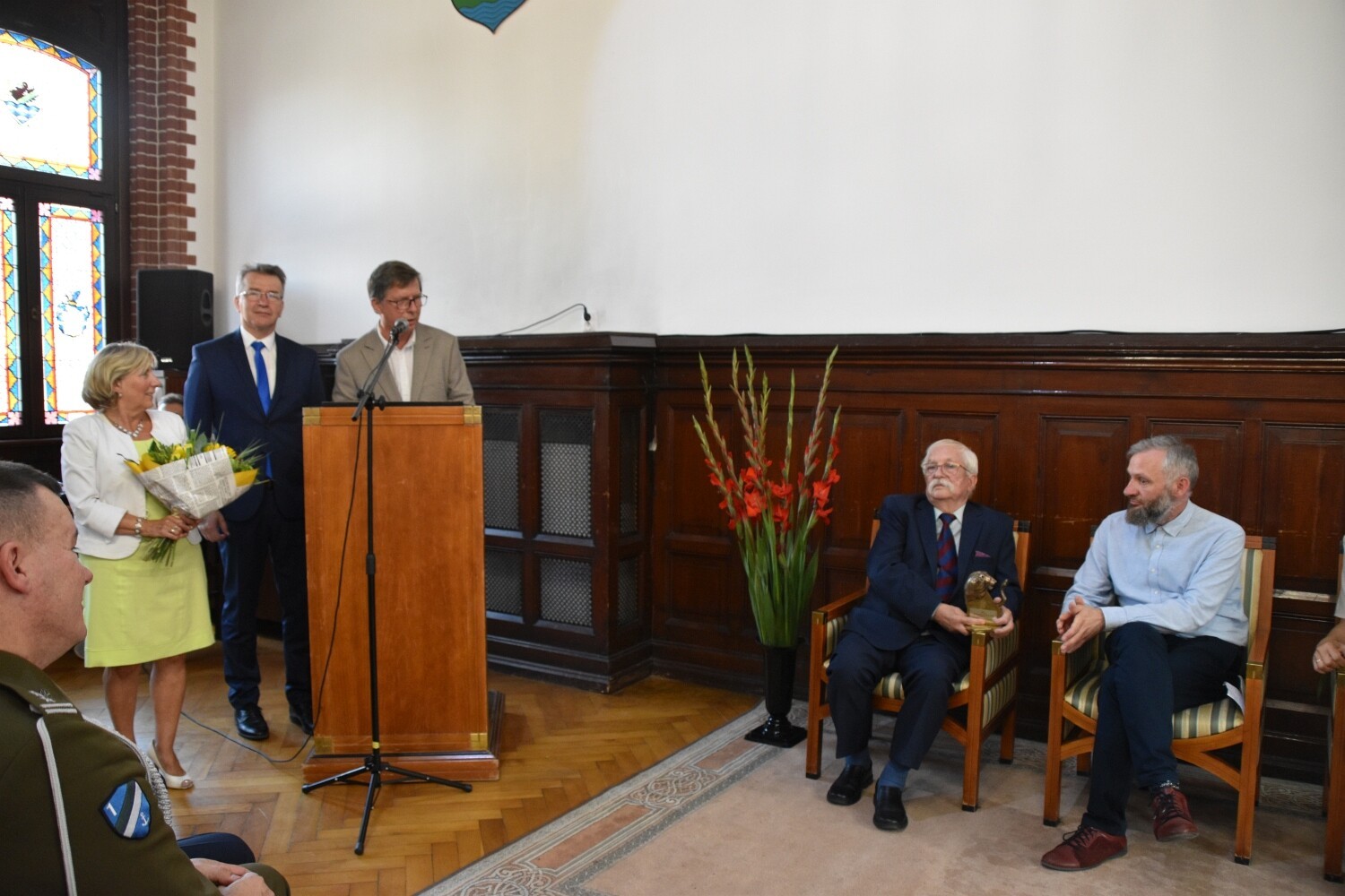 Lęborskie Dni Jakubowe zainaugurowało uroczyste spotkanie w Sali Rajców Lęborskiego Ratusza, podczas którego nadano honorowe wyróżnienie „Lęborski Lew”. W tym roku Kapituła przyznała to prestiżowe wyróżnienie Lęborskiemu Bractwu Historycznemu. W uzasadnieniu przeczytać można, że to wyraz uznania za wkład wniesiony w rozwój i promocję Miasta Lęborka. Z rąk przewodniczącego Rady Miejskiej Jarosława Litwina i burmistrza Lęborka Witolda Namyślaka statuetkę odebrał przewodniczący Zarządu stowarzyszenia Marcin Ramczyk. Laureaci otrzymali również gratulacje od przedstawicieli Powiatu Lęborskiego, obecnych na uroczystości: Danuty Mikołajczyk – sekretarza powiatu, Ryszarda Wenty – członka Zarządu Powiatu Lęborskiego i Witolda Krużyckiego – wiceprzewodniczącego Rady Powiatu.