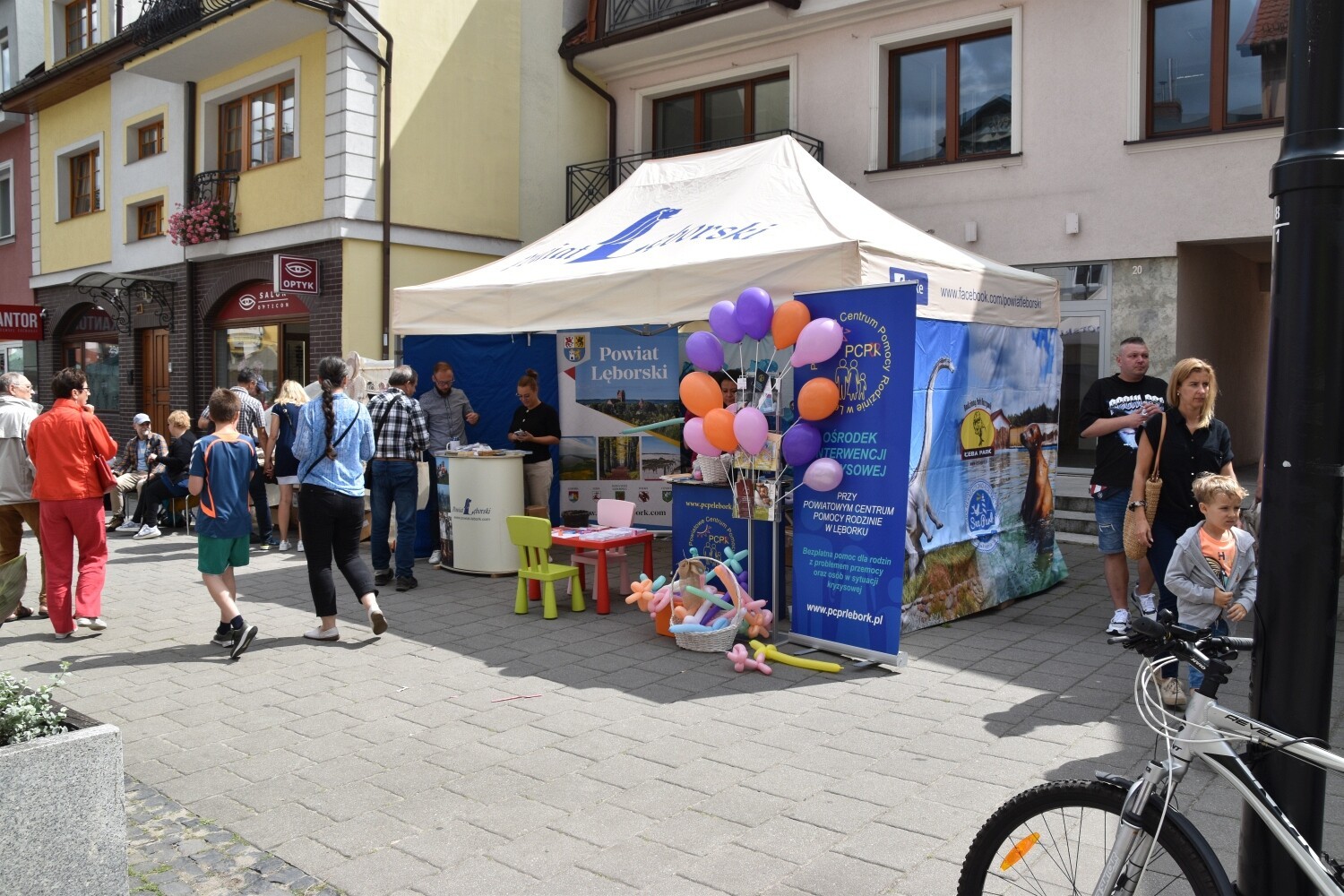 W części wystawienniczej Lęborskich Dni Jakubowych – jak co roku – Powiat Lęborski wystawił swoje stoisko, obsługiwane wspólnie z Powiatowym Centrum Pomocy Rodzinie. Oprócz materiałów promocyjno-informacyjnych, w powiatowym namiocie działo się wiele, w tym również dla najmłodszych i nieco starszych dzieci.