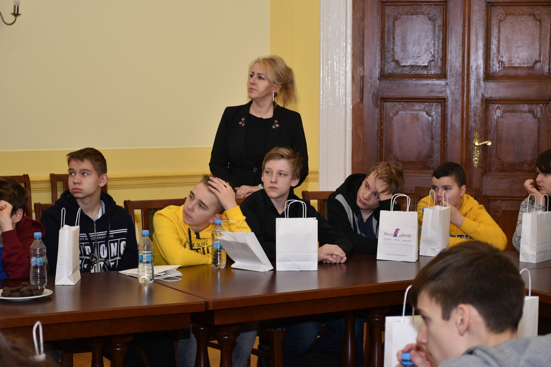 - Witam was w historycznym, ponad 100-letnim budynku naszego starostwa. Za chwilę opowiemy wam o historii i współczesności tego obiektu oraz o tym, czym zajmuje się starostwo – mówiła Alicja Zajączkowska, Starosta Lęborski, witając, wraz z Krzysztofem Królem, sekretarzem powiatu, młodzież w sali obrad Rady Powiatu Lęborskiego.