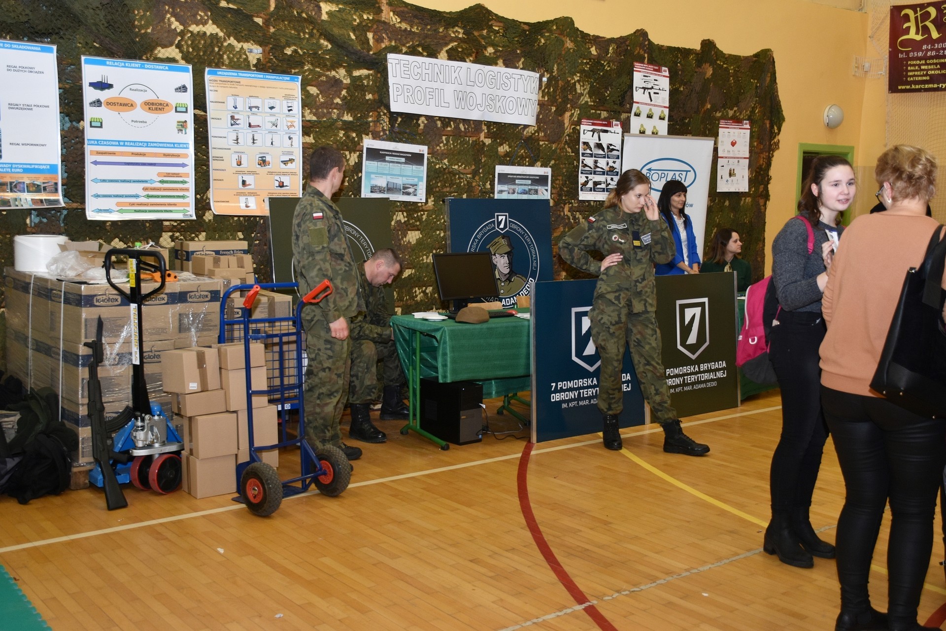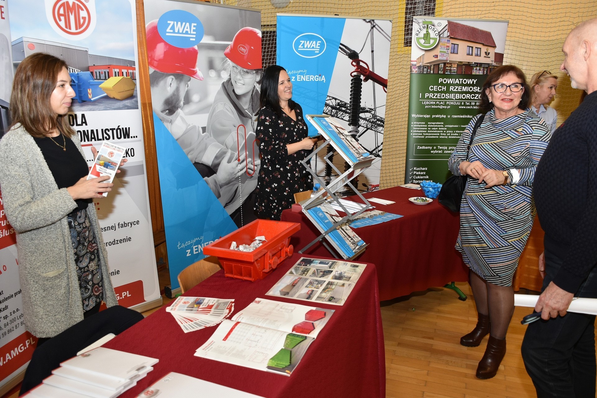 Podczas imprezy zaprezentowało się 9 lokalnych firm i miejscowa jednostka wojskowa. W zakresie doradztwa zawodowego swoją ofertę prezentował Powiaty Urząd Pracy, w zakresie szkoleń - Powiatowy Cech Rzemiosła i Przedsiębiorczości. Stoiska informacyjne wystawiły także stowarzyszenia działające na obszarze powiatu. Targi odwiedziła Alicja Zajączkowska, Starosta Lęborski. – Myślę, że taka forma prezentacji oferty edukacyjnej szkół ponadpodstawowych jest propozycją bardzo dobrą, ponieważ uczniowie szkół podstawowych mają okazję porozmawiać ze swoimi niemal rówieśnikami, którzy funkcjonują w powiatowym systemie edukacyjnym i są w stanie odpowiedzieć na wszystkie pytania, nie tylko te, na które można znaleźć odpowiedzi w oficjalnych biuletynach szkół – mówi Alicja Zajączkowska, Starosta Lęborski - Nie do przecenienia są osobiste kontakty uczniów z ich nieco starszymi kolegami, którzy potrafią wskazać korzyści podjęcia nauki w danym kierunku nauczania. Udział lokalnych firm wzbogaca to przedsięwzięcie, wskazując w jakim kierunku można się kształcić, by mieć niemal pewną szansę na zatrudnienie w miejscu zamieszkania.