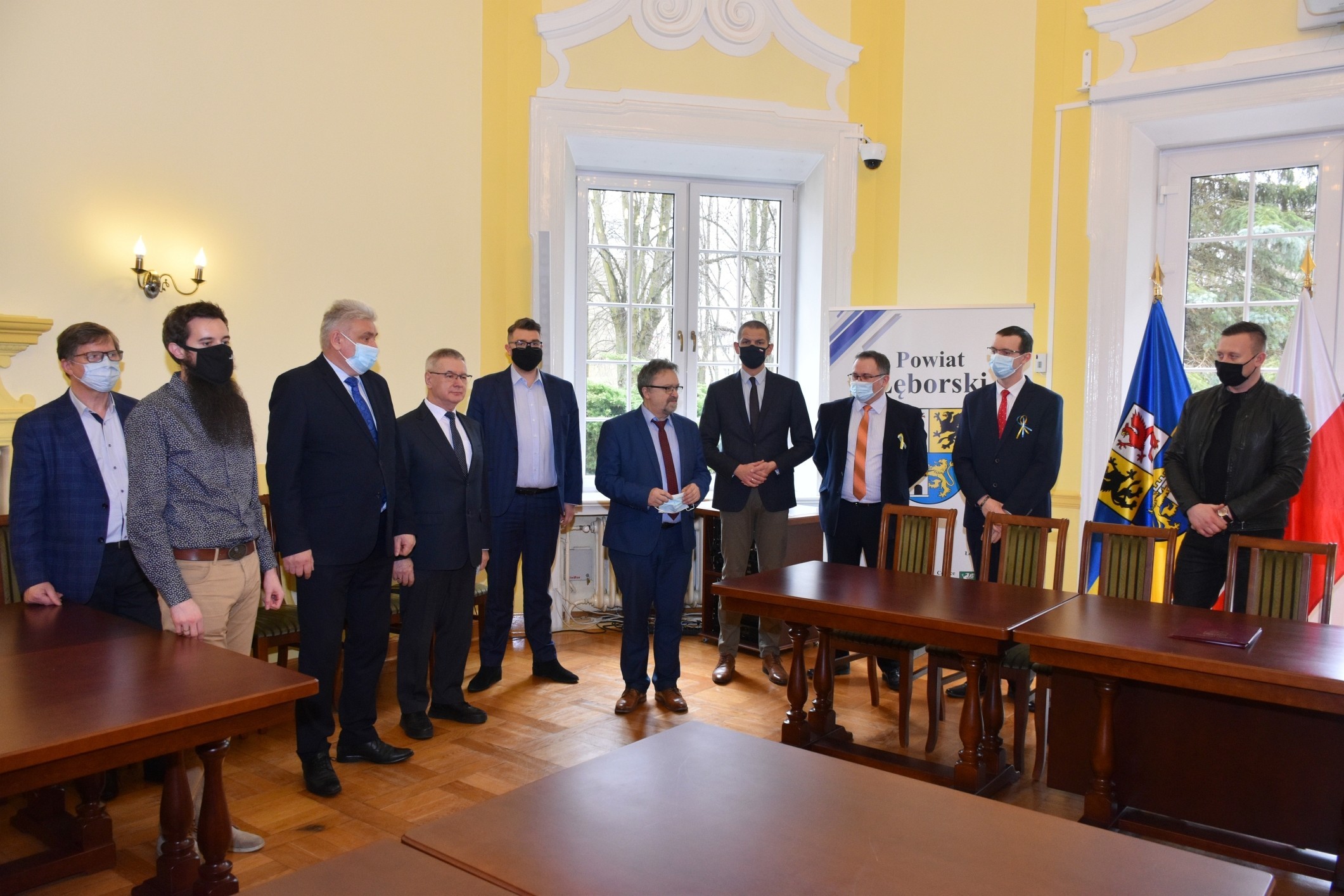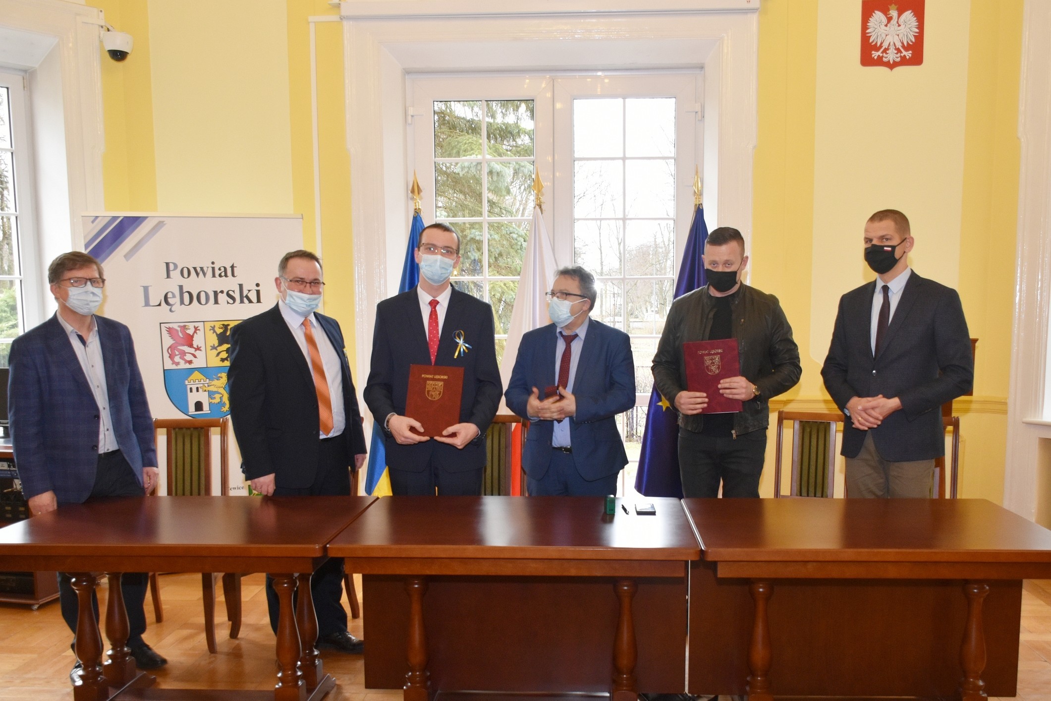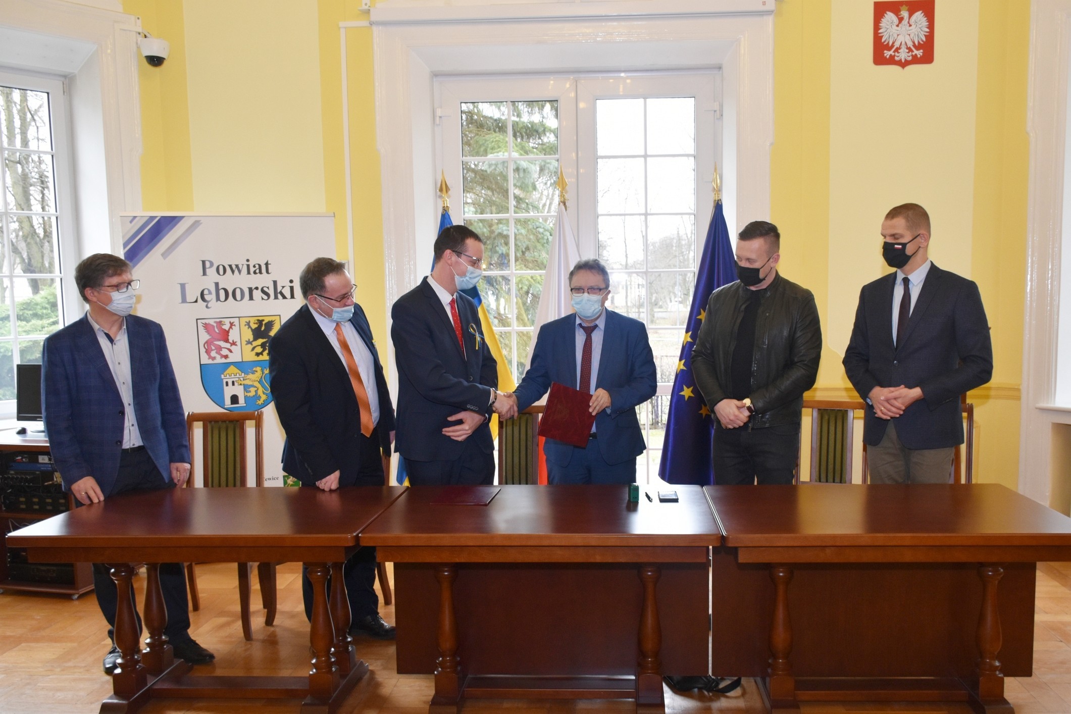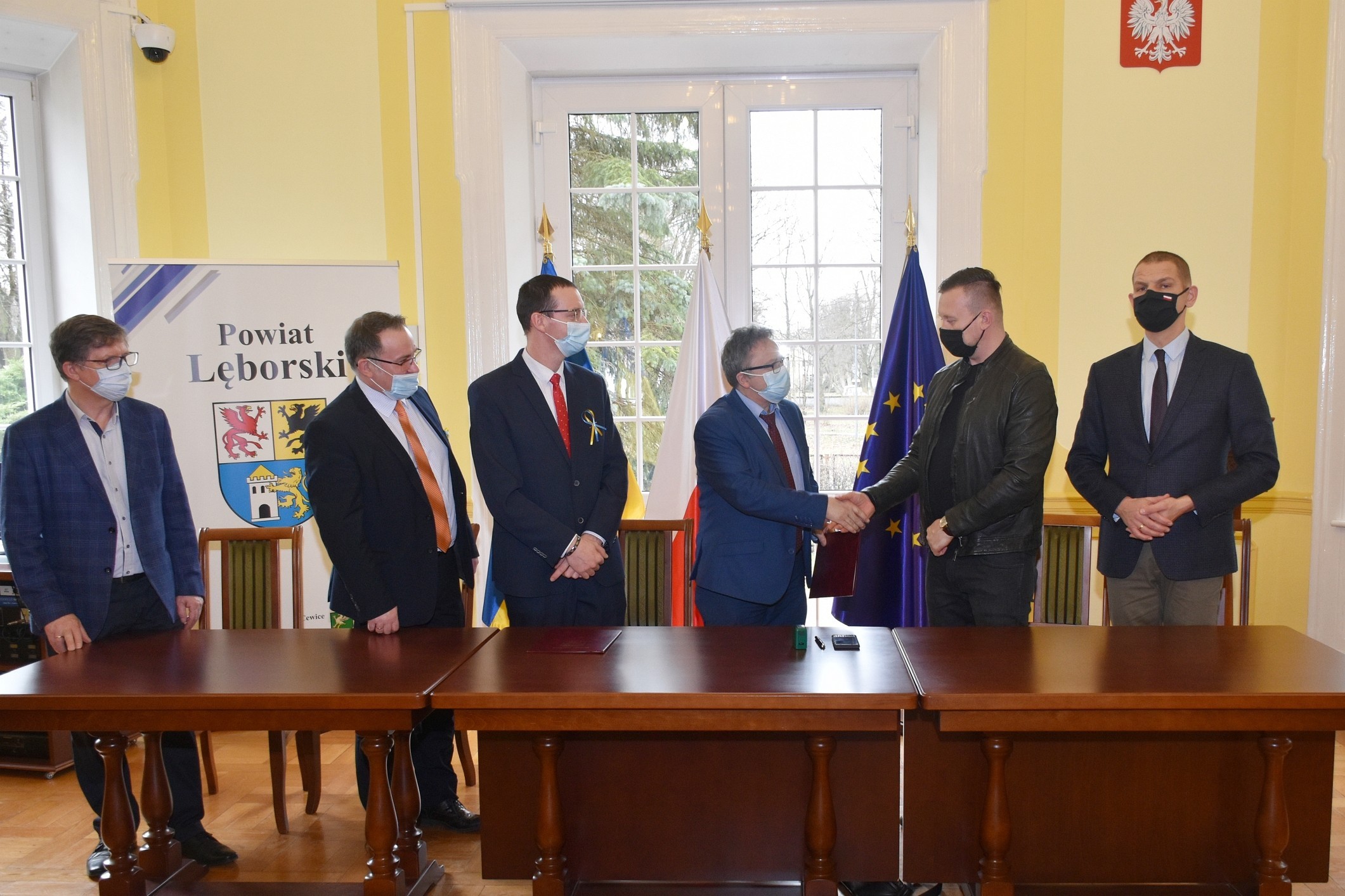 Umowę na wykonawstwo inwestycji ze strony Powiatu podpisał Adrian Wenta – Dyrektor Zarządu Dróg Powiatowych, a ze wykonawcy, Grzegorz Banasik - pełnomocnik firmy „Drogomex S.A.” w Pruszkowie. Podczas podpisania dokumentów na wykonawstwo wartej 6.677.777,77 zł inwestycji uczestniczyli również członkowie Zarządu Powiatu: Adam Nowak i Ryszard Wenta, Marcin Brodalski – kierujący lęborskim biurem posła Mülera, Michał Maliński – reprezentujący Bank Gospodarstwa Krajowego oraz Adam Etmański – kierownik Referatu Realizacji Inwestycji w lęborskim starostwie.