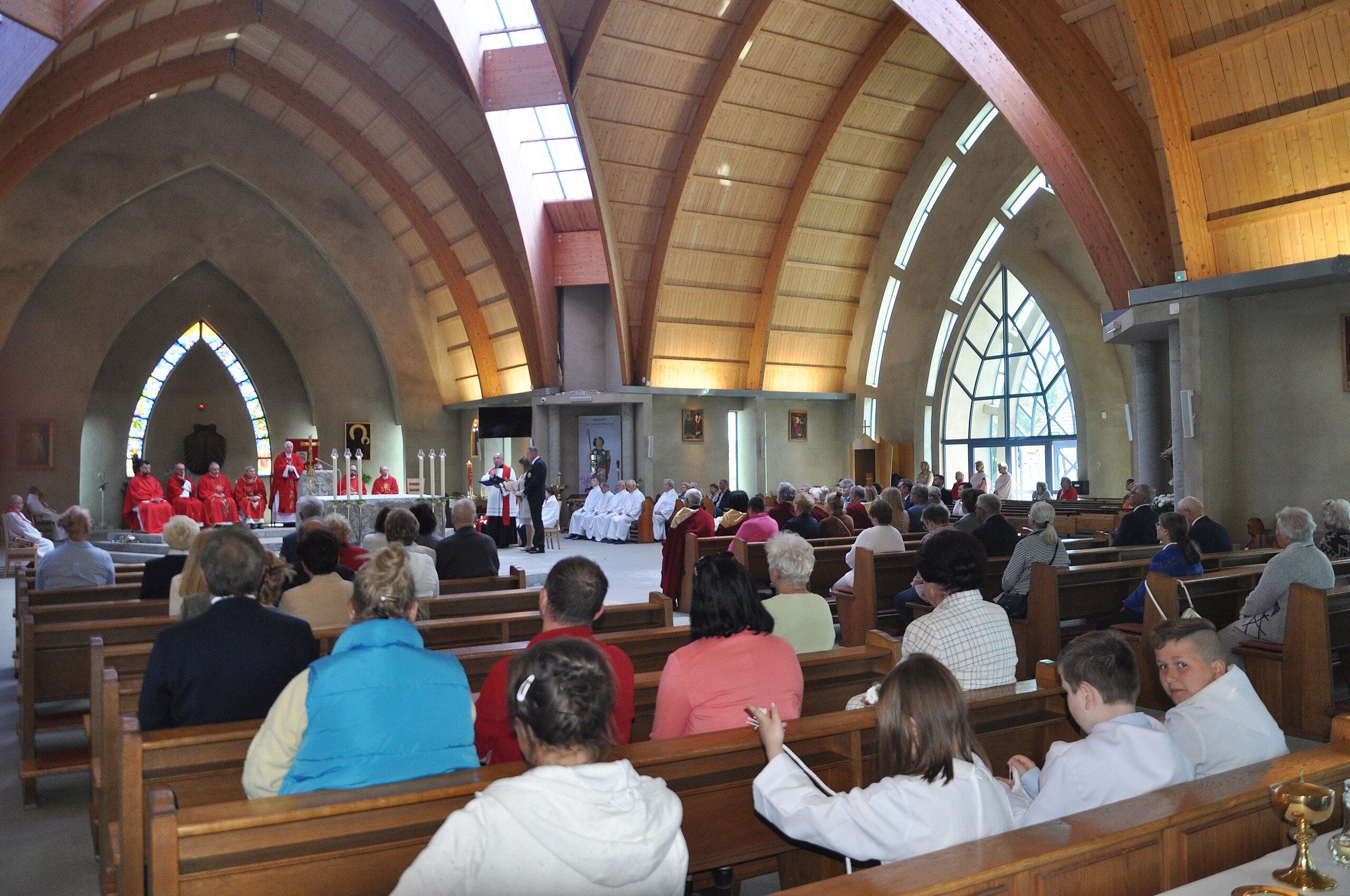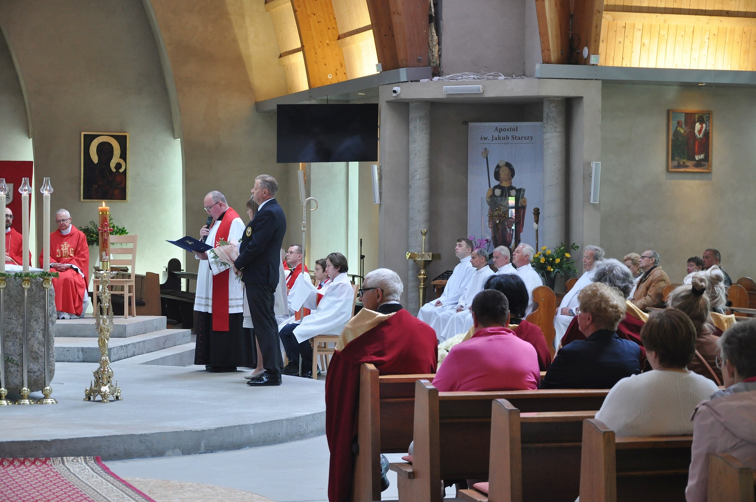 O wspólnocie, miłości i wielbieniu Boga mówił podczas homilii okolicznościowej bp. R. Kasyna. – Wielu z was, uczestniczących w dzisiejszym spotkaniu zapewne pamięta narodziny tej parafii. Wielu pewnie było fundatorami, osobami wspierającymi powstanie parafii formalnie, świadkami narodzin nowej wspólnoty wiernych. Dzisiaj sprawujemy, wraz z jubileuszem świątyni dziękczynienie za dar rodziny parafialnej św. Jakuba. – mówił bp. R. Kasyna – Kościół narodził się, żeby iść, podobnie jak apostołowie wyszli na cały świat. Tak też się dzieje z parafią, że poprzez swoją działalność, przygotowuje członków wspólnoty, aby stali się ludźmi ewangelizującymi, swoim głosem, życiem, uczynkami – głosili Chrystusa.