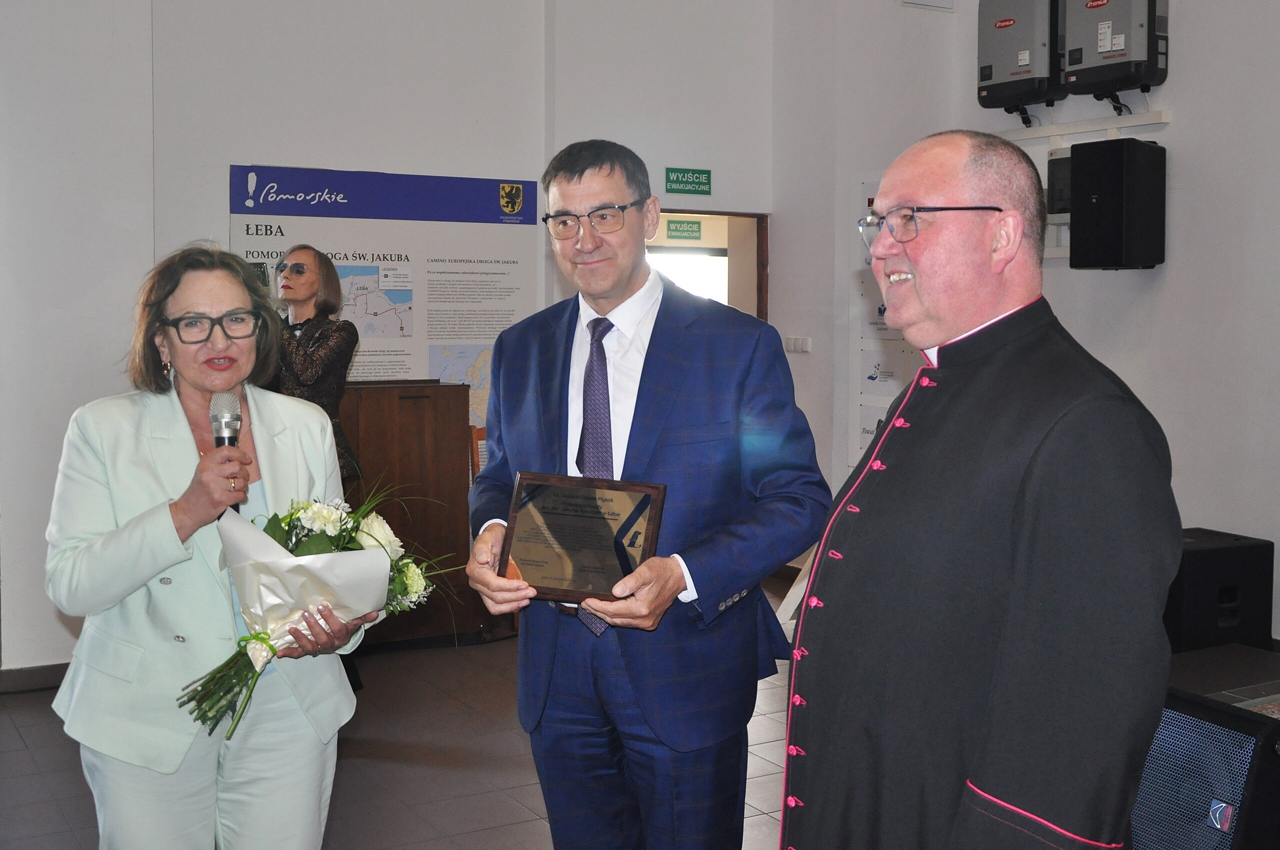 Oficjalnym uroczystości odbywających się w kościele, towarzyszyło spotkanie kościelnych dostojników z zaproszonymi gośćmi, osobami zaangażowanymi w działalność parafialną, samorządowcami i reprezentantami świata polityki. – Na ręce ks. dziekana składam najserdeczniejsze życzenia z okazji jubileuszu – mówiła starosta A. Zajączkowska, zwracając się do ks. kanonika Zenona Myszka – Gratuluje przede wszystkim odwagi, wizjonerstwa i konsekwencji działania. To co się tutaj działo przez lata to budowanie wspólnoty. Pamiętam nasze wspólne działania przy budowie Pomorskiej Drogi św. Jakuba. Gratuluję również takich dobrych parafian, ufających swojemu proboszczowi, którzy uwierzyli, że niemożliwe może stać się możliwym, by działy się rzeczy niezwykłe i wspaniałe.