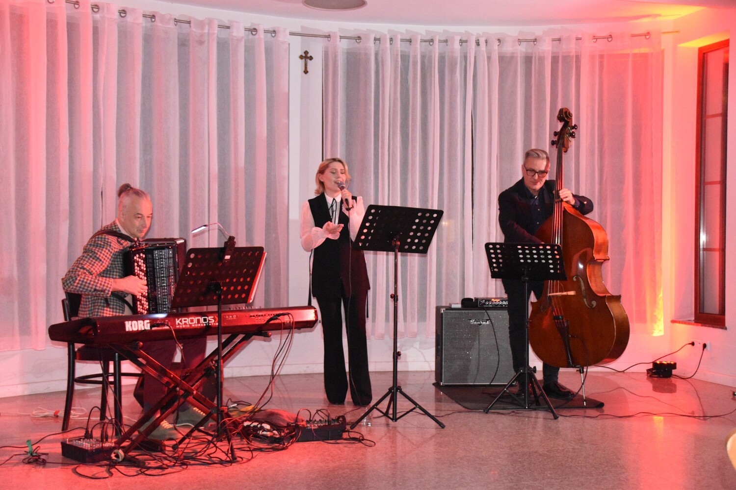 Wymiar duchowego święta wzbogaciły wrażenia artystyczne, które zapewnili: Katarzyna Golecka (wokal), Piotr Lemańczyk (kontrabas) i Cezary Paciorek (fortepian elektryczny i akordeon), którzy wystąpili w Centrum Kultury Chrześcijańskiej w ramach Zaduszek Jazzowych.