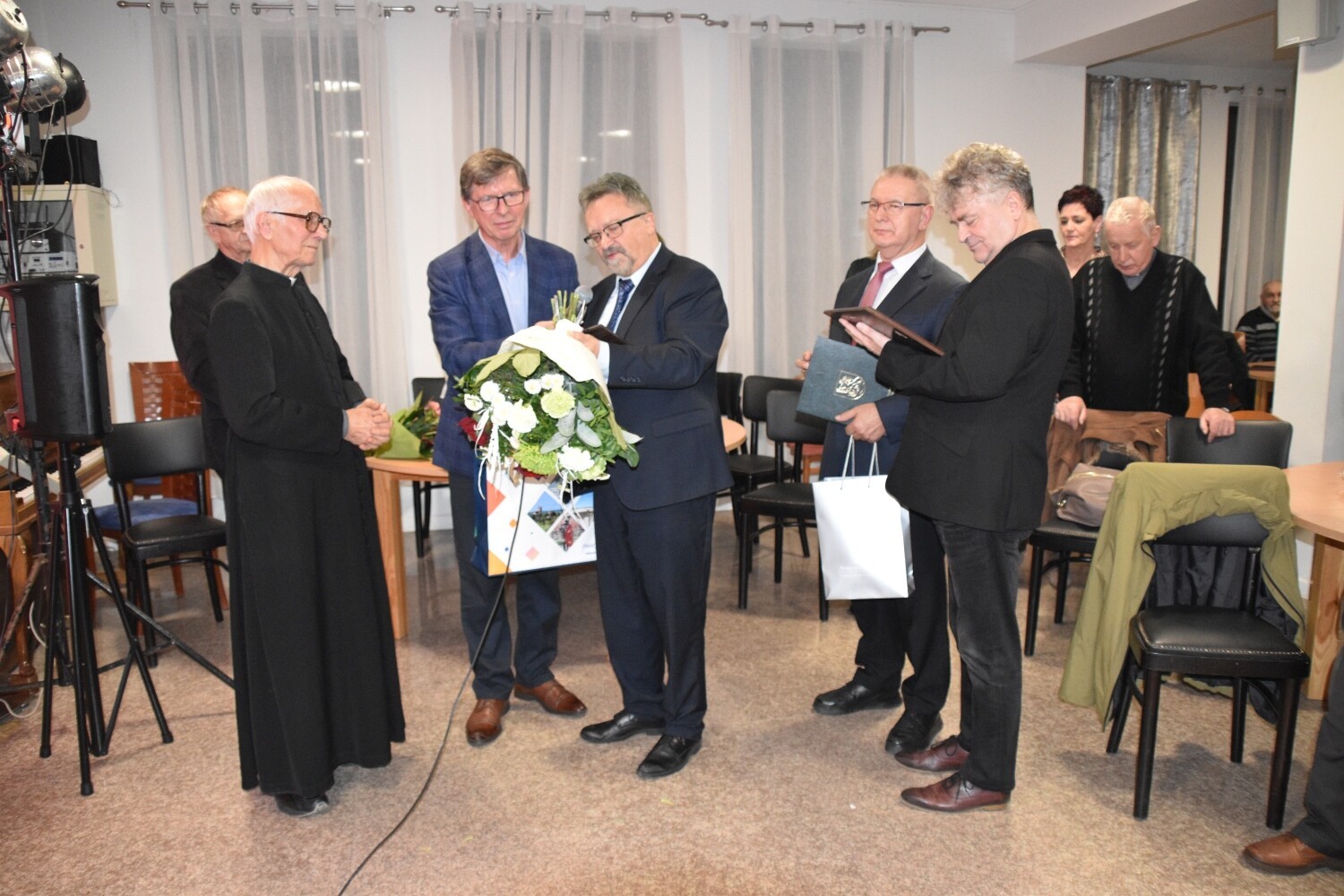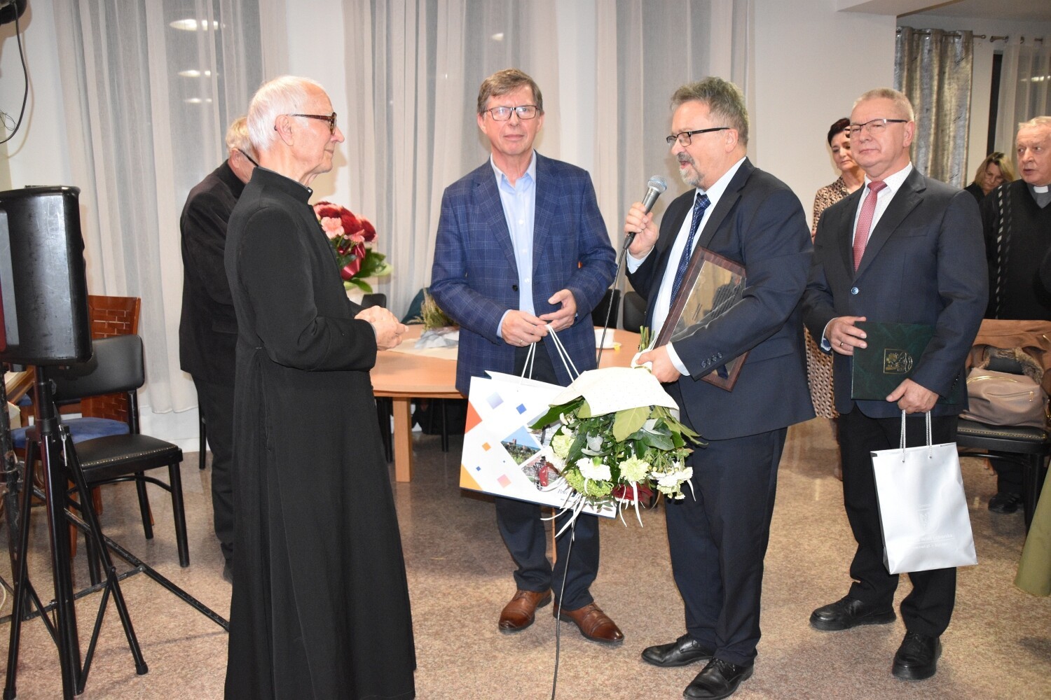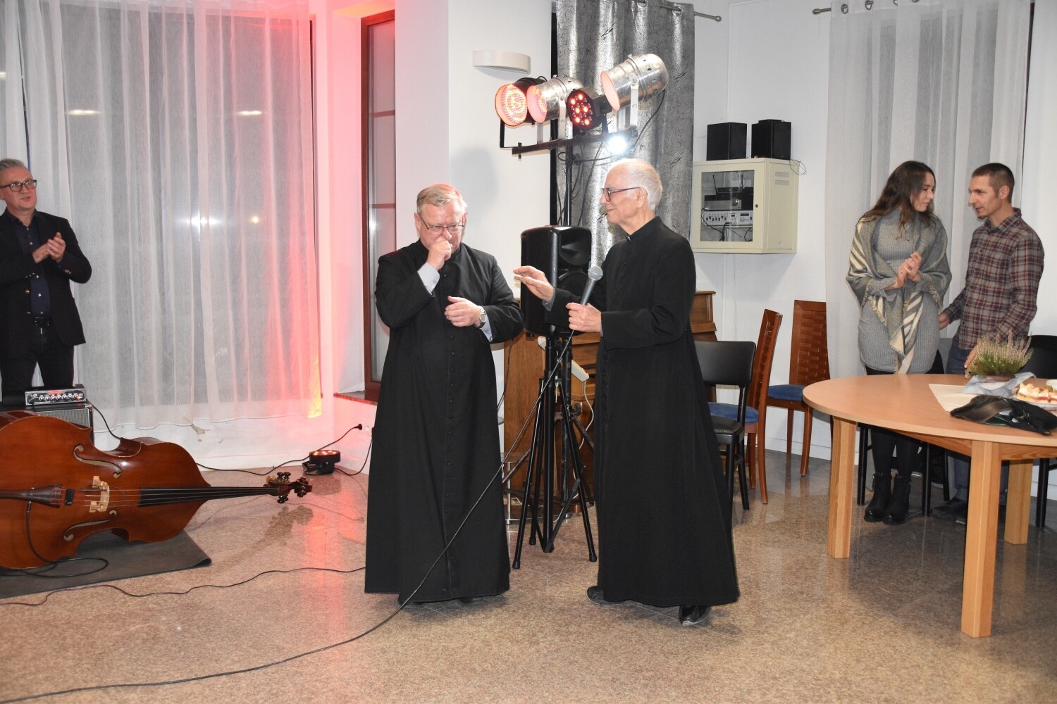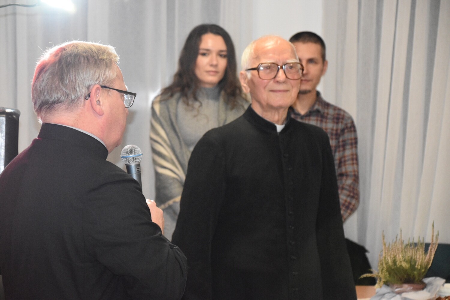 To była podwójna okazja do świętowania. Jubileuszowi 65-lecia sprawowania posługi towarzyszyła rocznica 90. urodzin ks. Józefa Janiaka. W sali parafialnej Centrum Kultury Chrześcijańskiej przy kościele zebrali się przedstawiciele lokalnej społeczności i samorządowcy. Ks. Janiak otrzymał rocznicowe serdeczności od Rad Sołeckich Mostów i Lubowidza, działających przy parafii wspólnot modlitewnych oraz od samorządowców. Powiat Lęborski reprezentował Edmund Głombiewski – Wicestarosta Lęborski wraz z Ryszardem Wentą – członkiem Zarządu Powiatu. Obecni byli samorządowcy z Gminy Nowa Wieś Lęborska z wójtem Zdzisławem Chojnackim oraz Lęborka, który reprezentował burmistrz Witold Namyślak. Nie zabrakło obecnego proboszcza parafii św. Brata Alberta Chmielowskiego – ks. Jacka Giełdona.