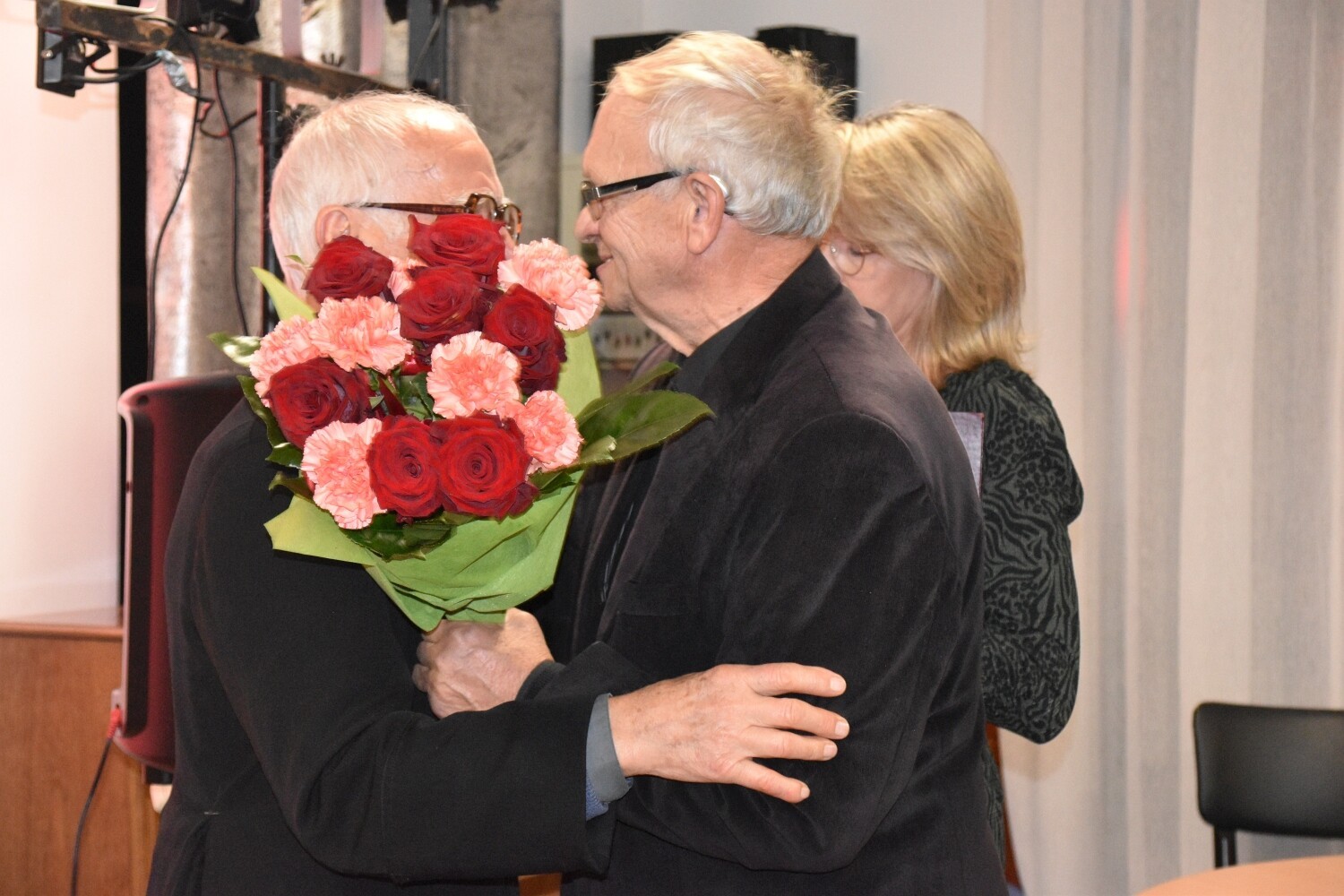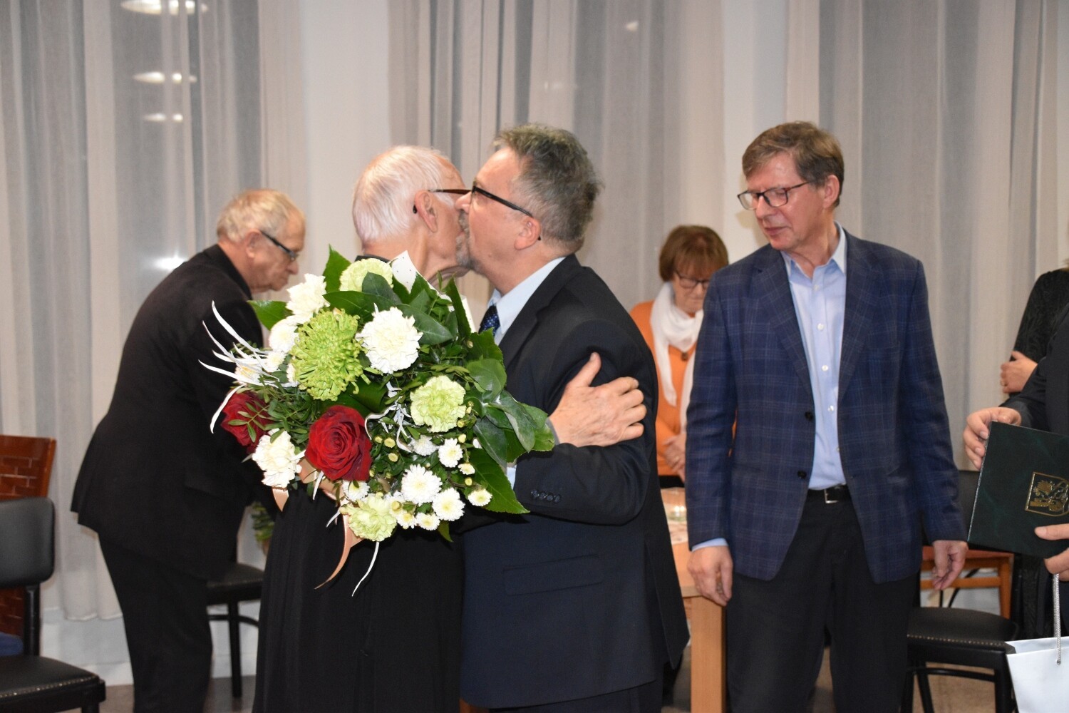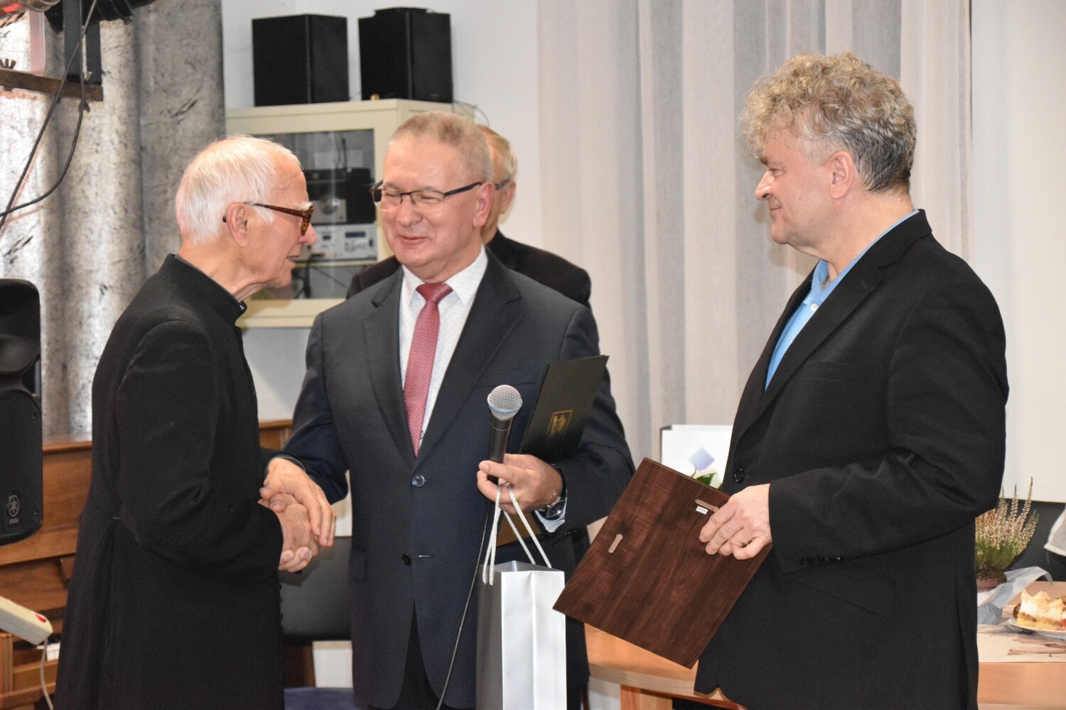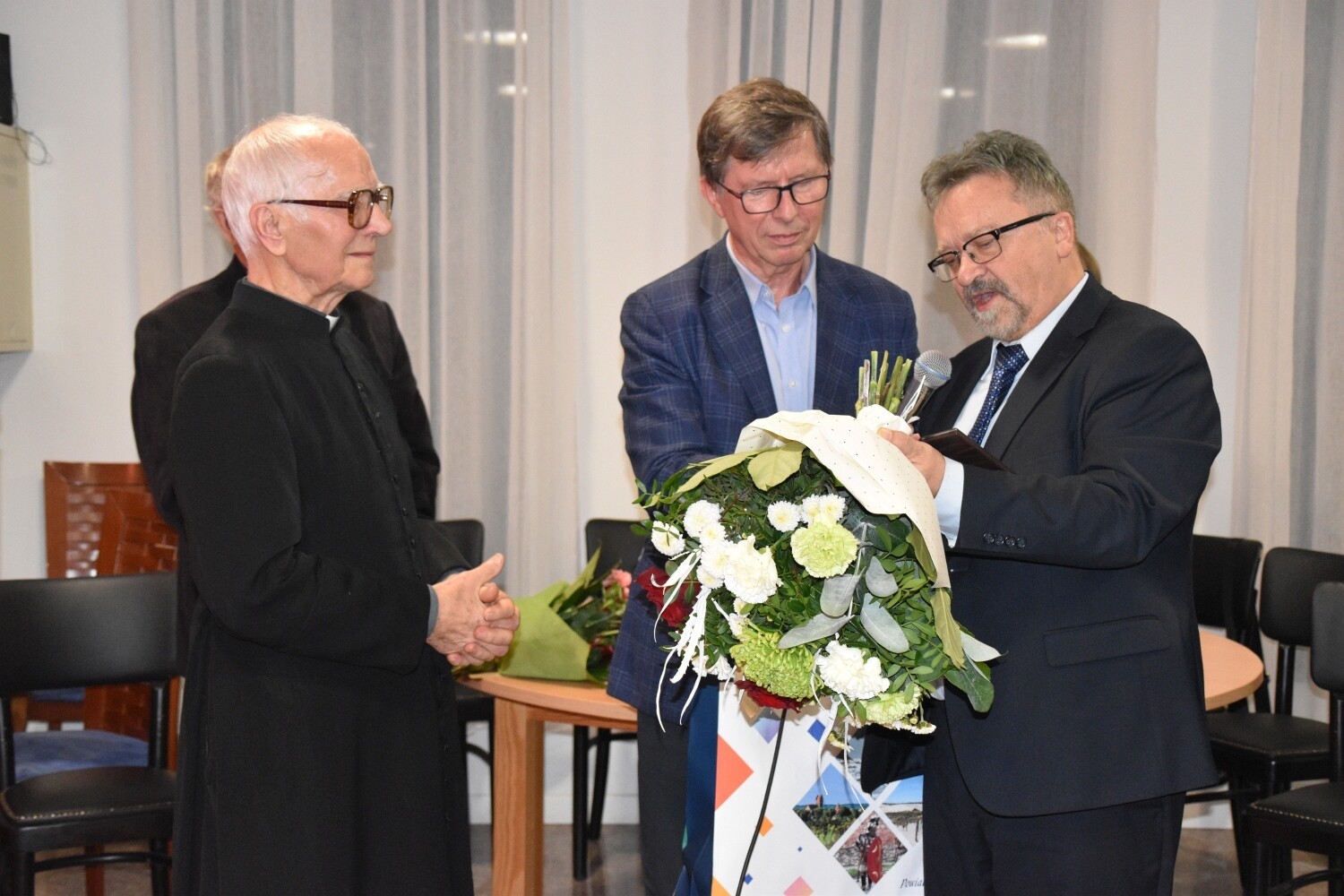 To była podwójna okazja do świętowania. Jubileuszowi 65-lecia sprawowania posługi towarzyszyła rocznica 90. urodzin ks. Józefa Janiaka. W sali parafialnej Centrum Kultury Chrześcijańskiej przy kościele zebrali się przedstawiciele lokalnej społeczności i samorządowcy. Ks. Janiak otrzymał rocznicowe serdeczności od Rad Sołeckich Mostów i Lubowidza, działających przy parafii wspólnot modlitewnych oraz od samorządowców. Powiat Lęborski reprezentował Edmund Głombiewski – Wicestarosta Lęborski wraz z Ryszardem Wentą – członkiem Zarządu Powiatu. Obecni byli samorządowcy z Gminy Nowa Wieś Lęborska z wójtem Zdzisławem Chojnackim oraz Lęborka, który reprezentował burmistrz Witold Namyślak. Nie zabrakło obecnego proboszcza parafii św. Brata Alberta Chmielowskiego – ks. Jacka Giełdona.