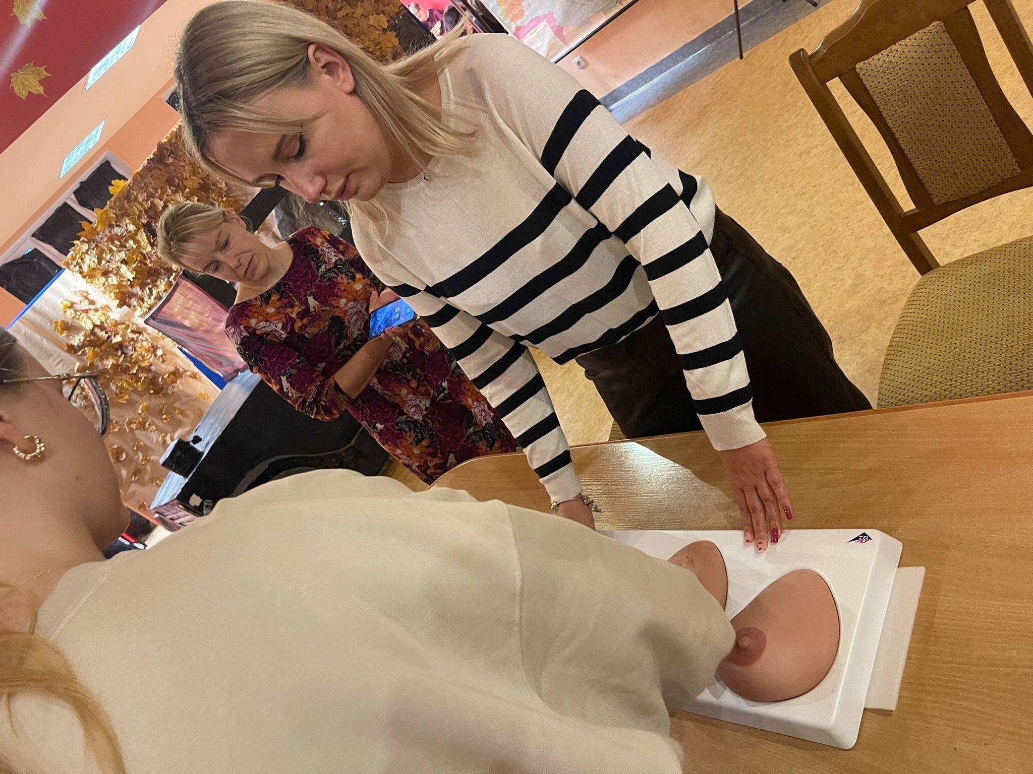 Uczyliśmy samobadania piersi i jąder na fantomach oraz prowadziliśmy rozmowę o odpowiedniej diecie oraz aktywności fizycznej i jaką ona odgrywa rolę w życiu każdego człowieka.