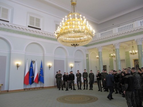 Następnym punktem programu było zwiedzenie przez uczniów Pałacu Prezydenckiego , poznanie jego historii i zadań Prezydenta RP jako konstytucyjnie najwyższego Zwierzchnika Sił Zbrojnych. Naszym opiekunem i wspaniałym przewodnikiem po BBN , Pałacu Prezydenckim i ogrodach Pałacu był pracownik BBN p. Maciej Czulicki. Ostatnim punktem pobytu w Warszawie wojskowych logistyków były odwiedziny w otwartym w 2014 roku Centrum Weterana Działań Poza Granicami Państwa. Tam uczestnicy wycieczki zostali przez pracujących w Centrum oficerów rezerwy zapoznani z historią polskich misji wojskowych a także zwiedzili salę tradycji i wysłuchali wykładu o weteranach. Na koniec spotkania uczniowie oddali hołd żołnierzom poległym na misjach pod Ścianą Pamięci.