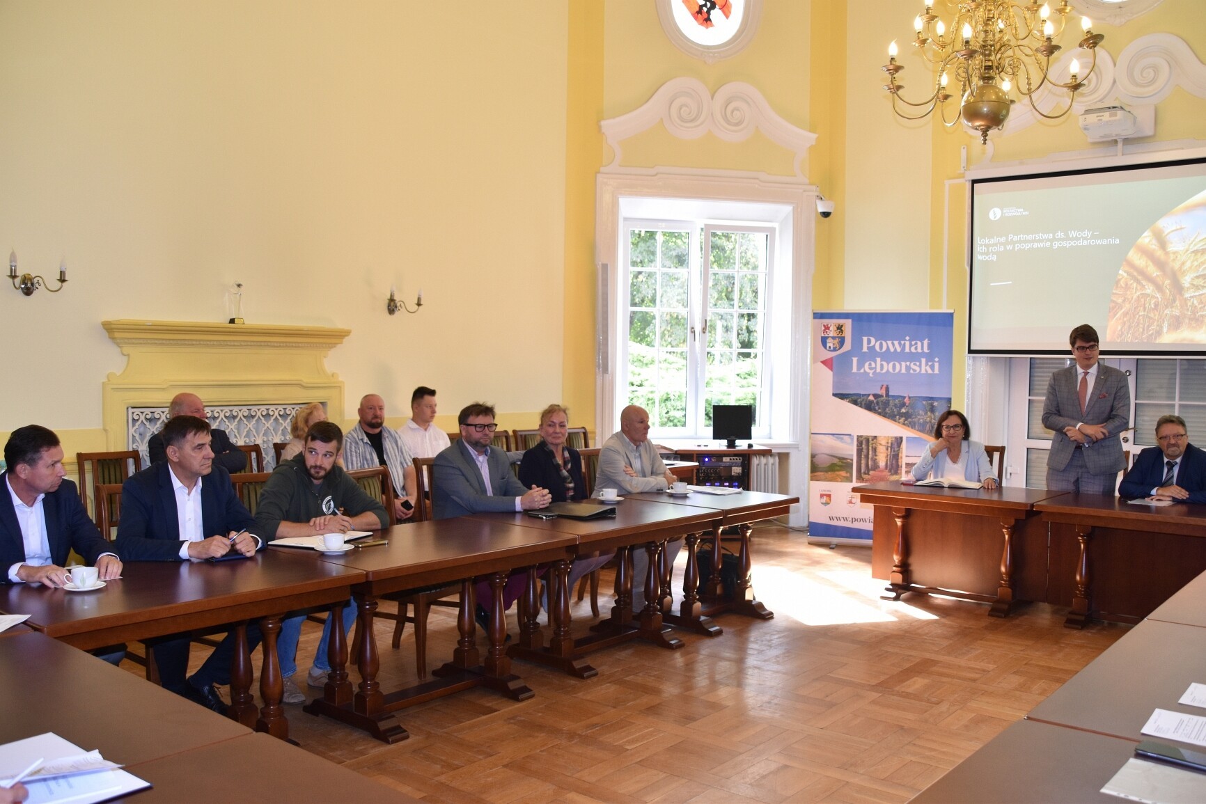 40 samorządowców oraz przedstawicieli instytucji działających na rzecz wspierania rolnictwa, reprezentantów leśnictwa i innych branż, dla których gospodarka wodna jest ważnym elementem działalności spotkało się w Starostwie Powiatowym w Lęborku. Omawiano zasady funkcjonowania i korzyści płynące z powołania Lokalnego Partnerstwa ds. Wody.
