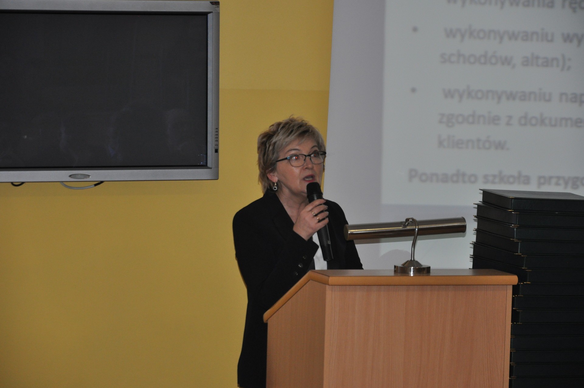 O znaczeniu staży oraz praktyk zawodowych w nabywaniu umiejętności praktycznych opowiedziała pani Irena Małachowicz - doradca zawodowego z Powiatowego Centrum Edukacji - Zespołu Szkół Ponadgimnazjalnych. Zwróciła także uwagę na ogromną rolę pracodawców w tym przedsięwzięciu - przy ich zaangażowaniu stażyści od środka poznają zawód, w którym się kształcą, a dzięki opiekunowi stażysty zostają wprowadzeni w świat pracy zawodowej na danym stanowisku.