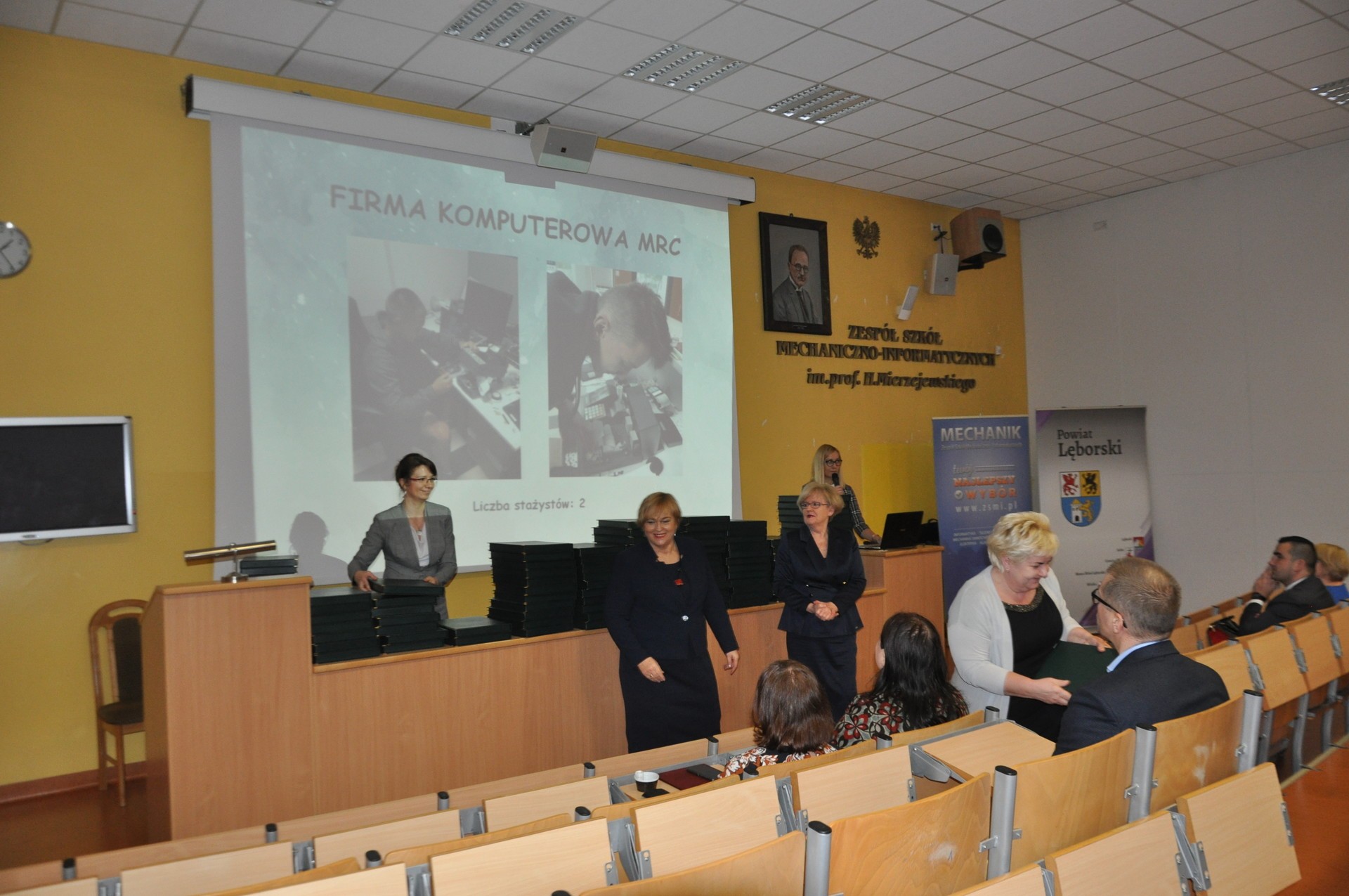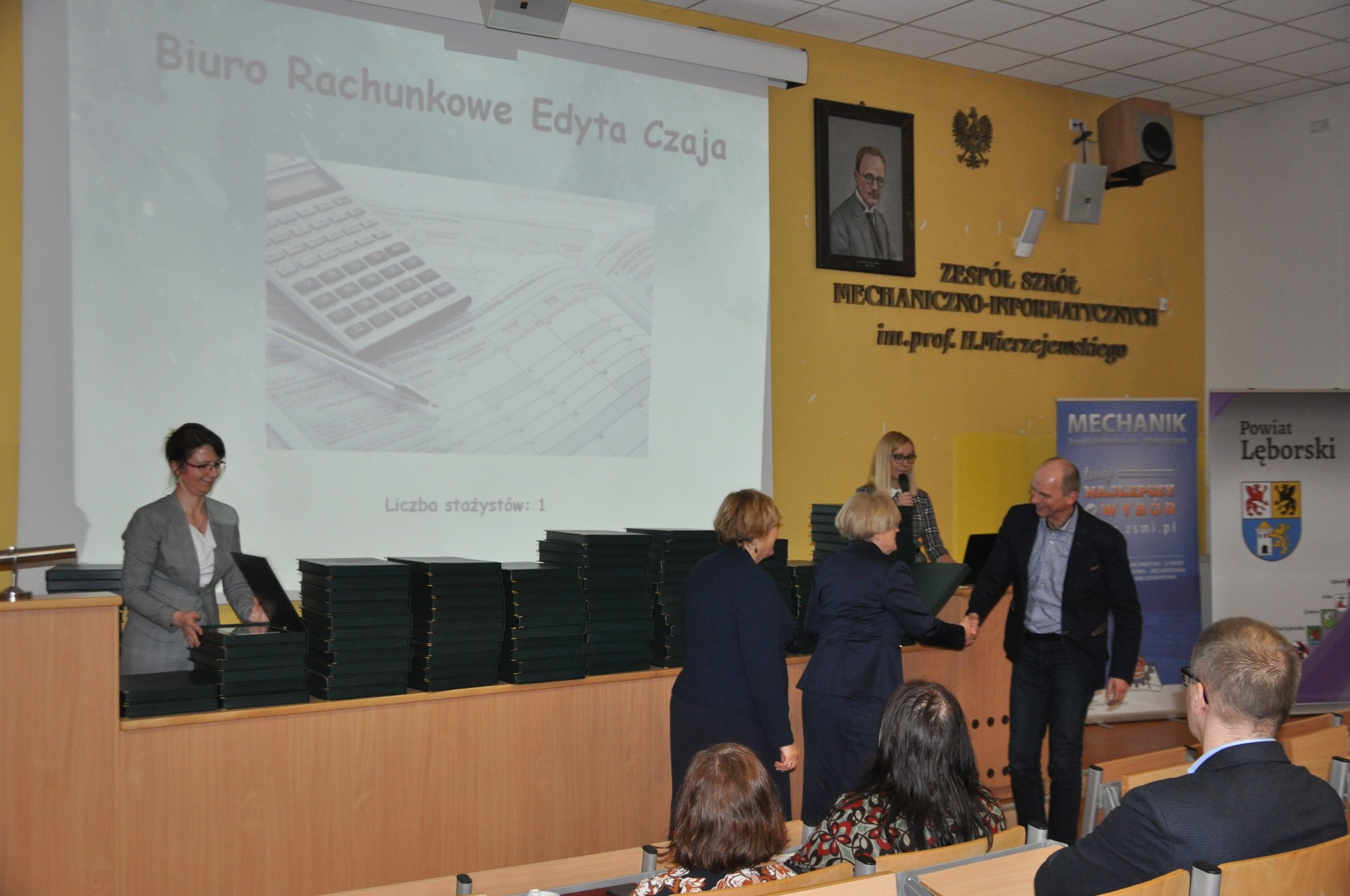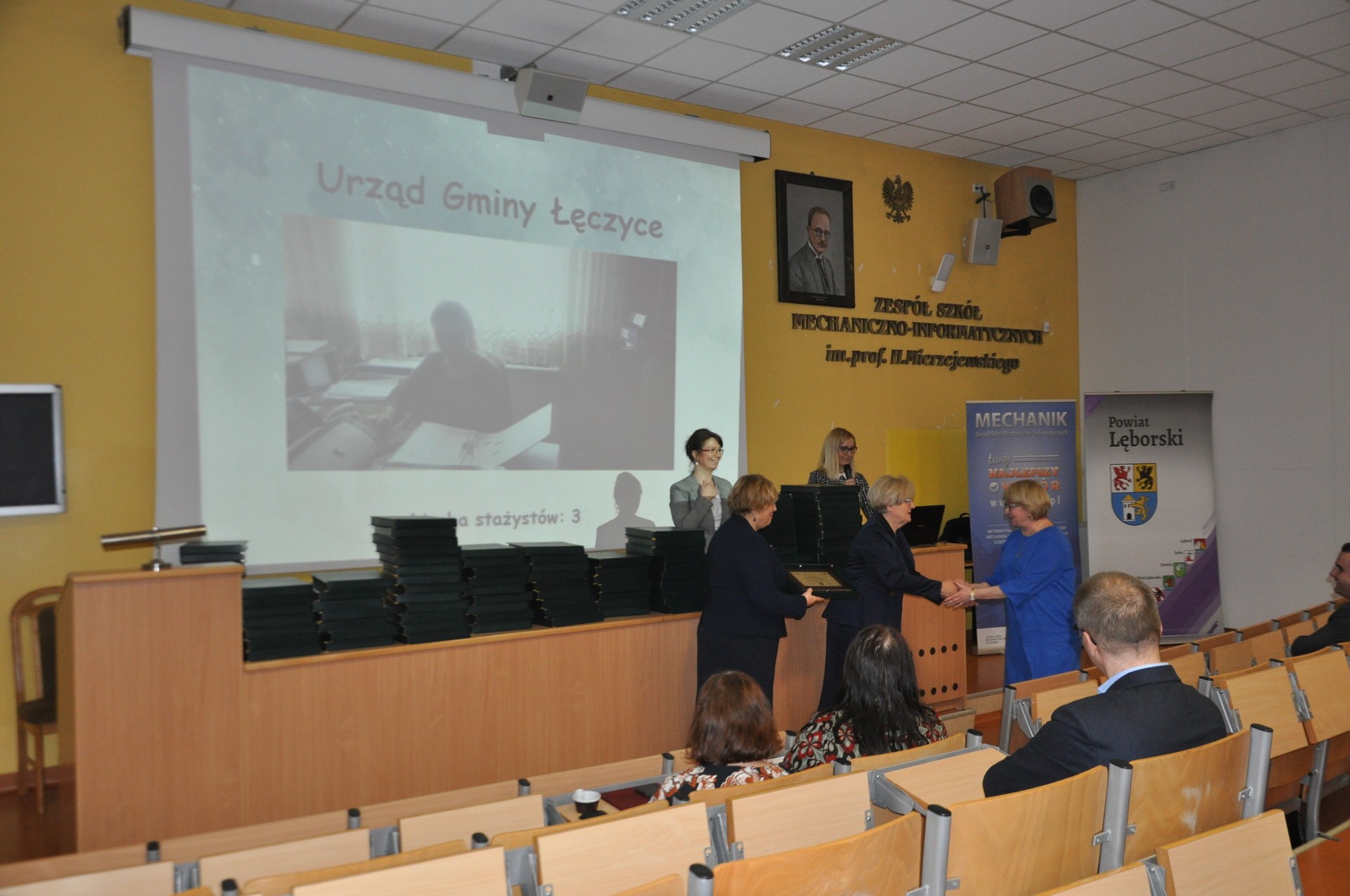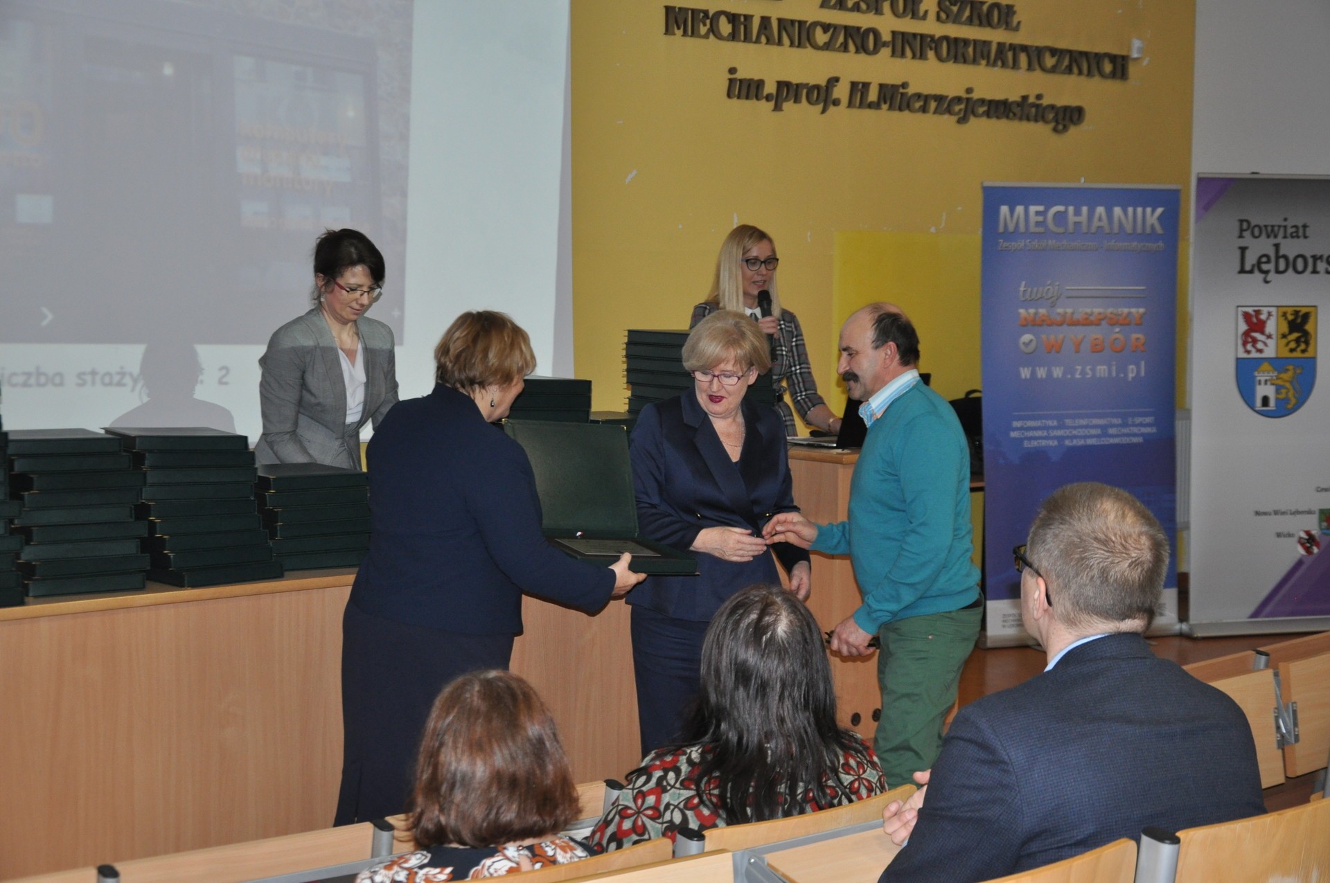 Najważniejszym punktem konferencji było wręczenie przez Starostę oraz Wicestarostę podziękowań w postaci okolicznościowych grawertonów przygotowanych dla wszystkich 125 pracodawców i przedsiębiorców niebędących pracodawcami, którzy w 2017 roku współpracowali z Powiatem Lęborskim oraz powiatowymi szkołami ponadgimnazjalnymi kształcącymi zawodowo w zakresie staży i praktyk zawodowych.