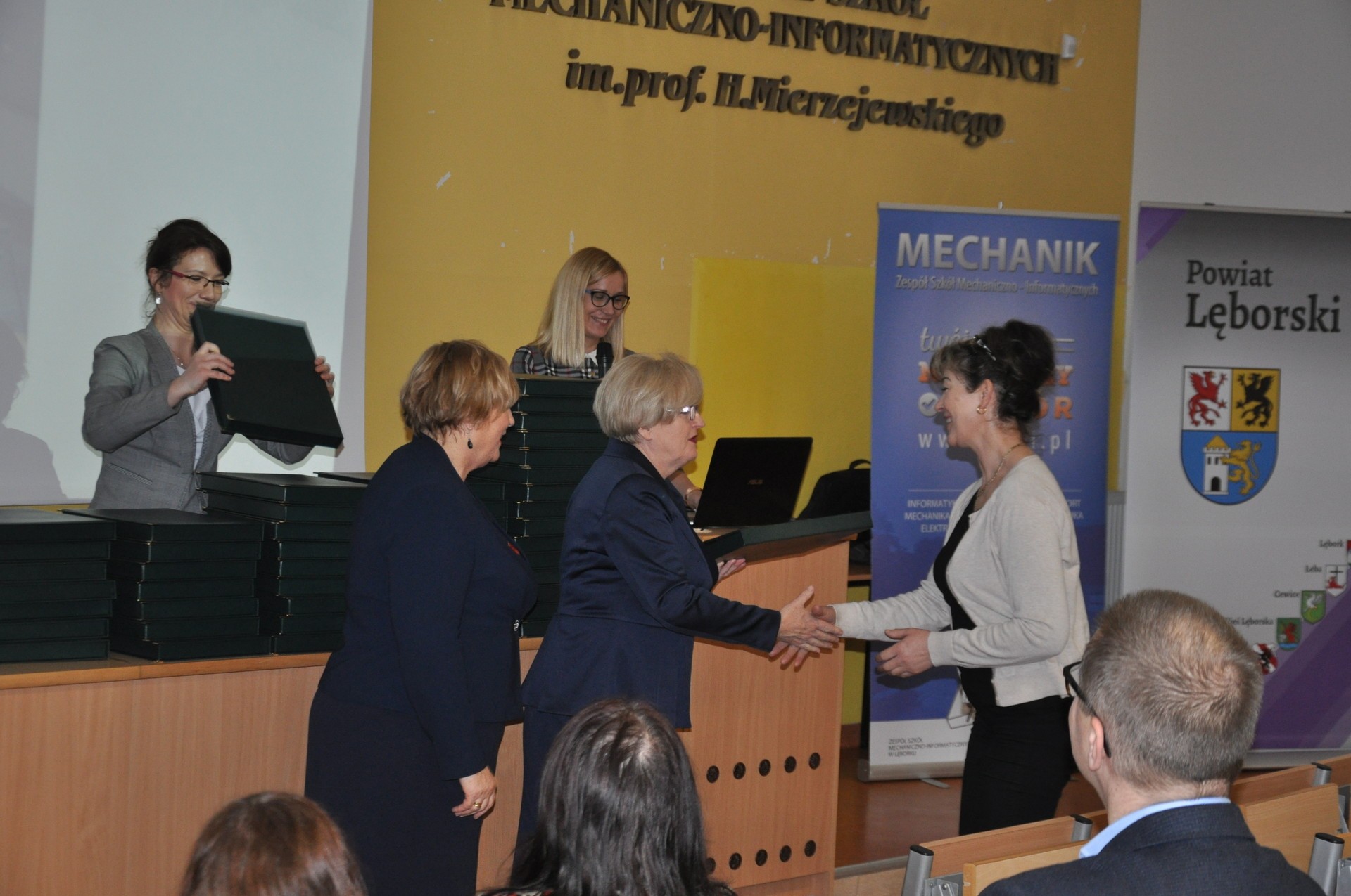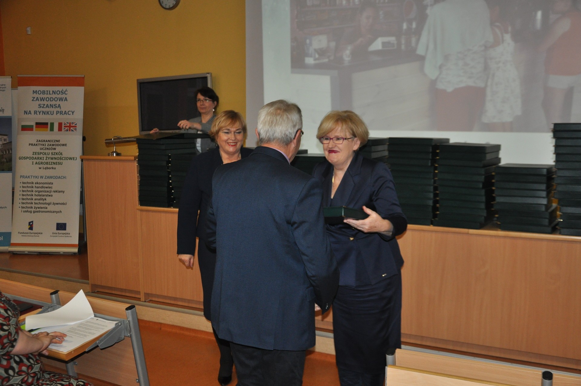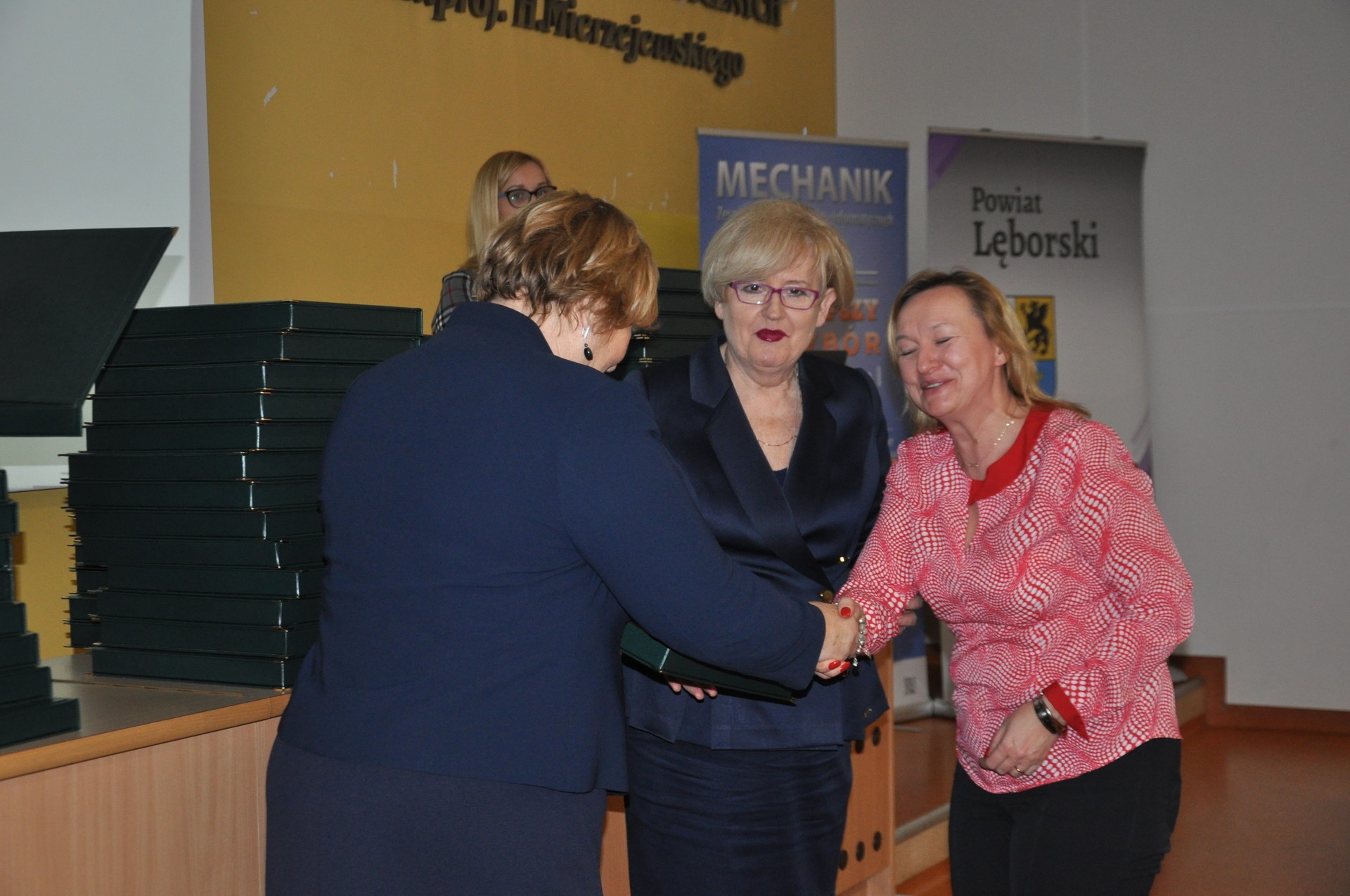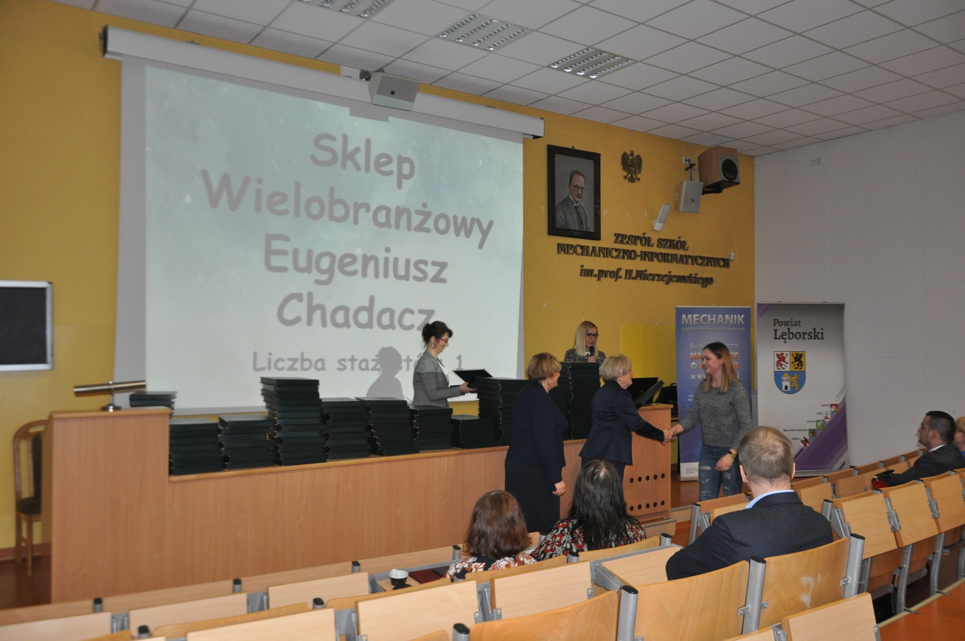 Najważniejszym punktem konferencji było wręczenie przez Starostę oraz Wicestarostę podziękowań w postaci okolicznościowych grawertonów przygotowanych dla wszystkich 125 pracodawców i przedsiębiorców niebędących pracodawcami, którzy w 2017 roku współpracowali z Powiatem Lęborskim oraz powiatowymi szkołami ponadgimnazjalnymi kształcącymi zawodowo w zakresie staży i praktyk zawodowych.