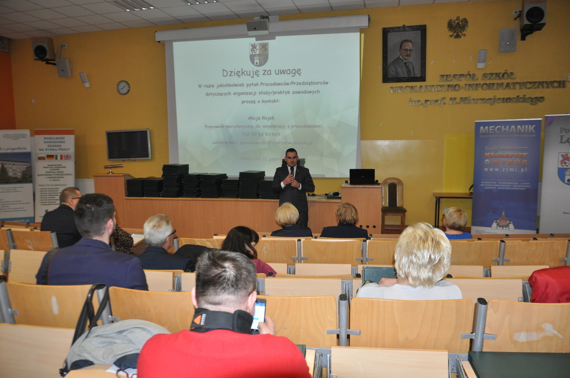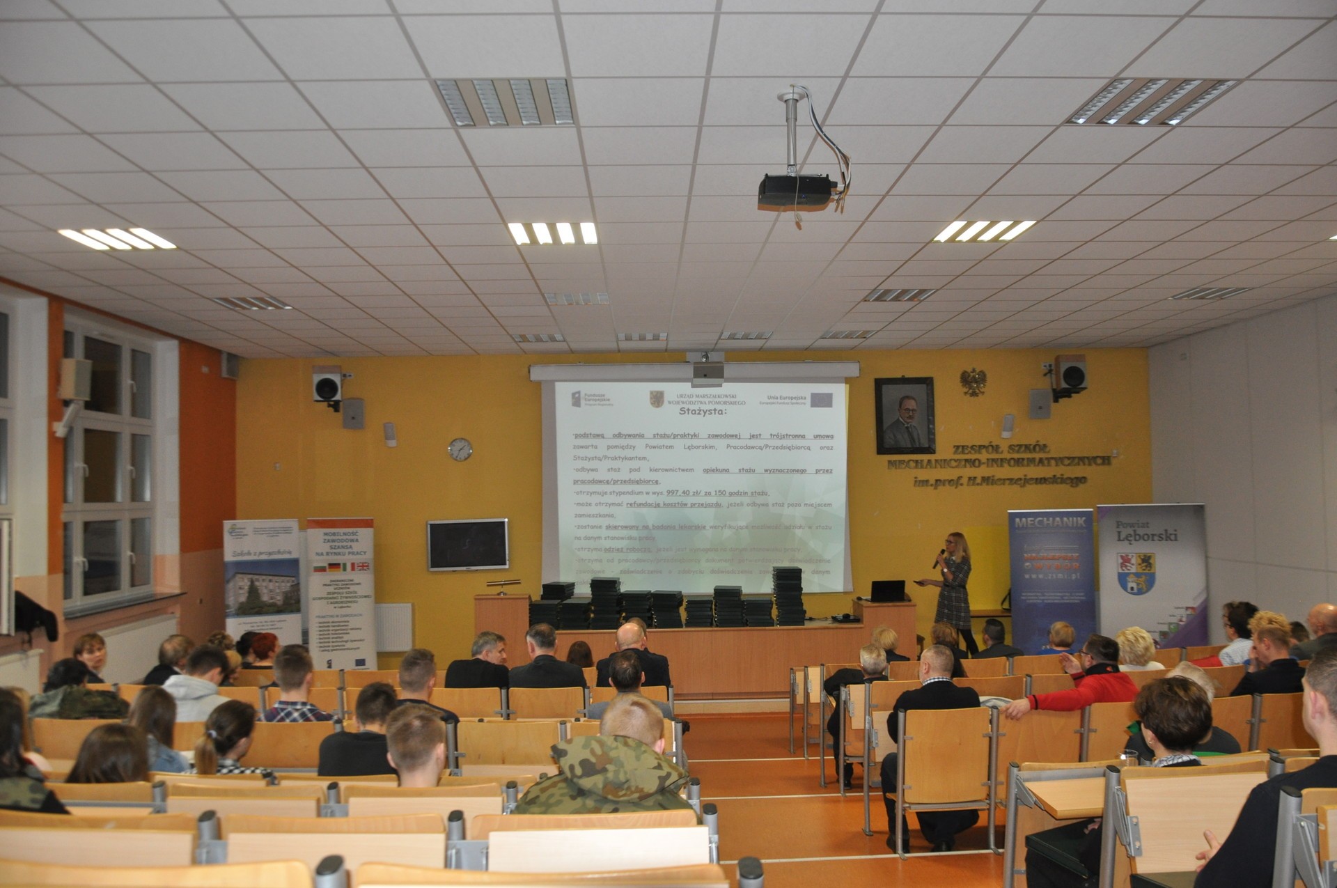 W dniu 13 marca 2018 roku w Zespole Szkół Mechaniczno-Informatycznych odbyła się konferencja "Staże i praktyki zawodowe - współpraca z pracodawcami w powiecie lęborskim" w ramach projektu "Kompetencje zawodowe inwestycją w przyszłość powiatu lęborskiego" dofinansowanego ze środków Europejskiego Funduszu Społecznego w ramach Regionalnego Programu Operacyjnego dla Województwa Pomorskiego na lata 2014-2020.