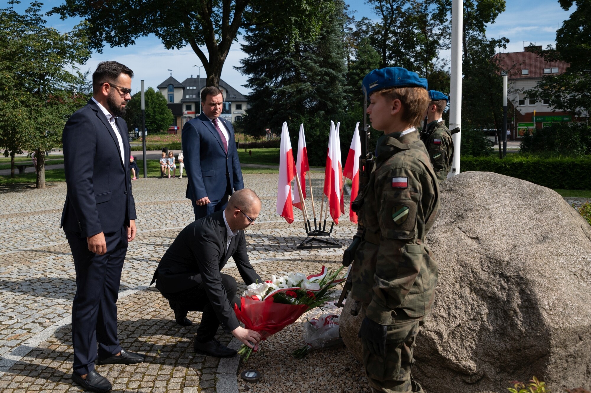 Samorządowcy, przedstawiciele wojska, organizacji wojskowych i kombatanci złożyli w czwartek (15.08) kwiaty pod Obeliskiem Niepodległości na Skwerze Orła Białego.