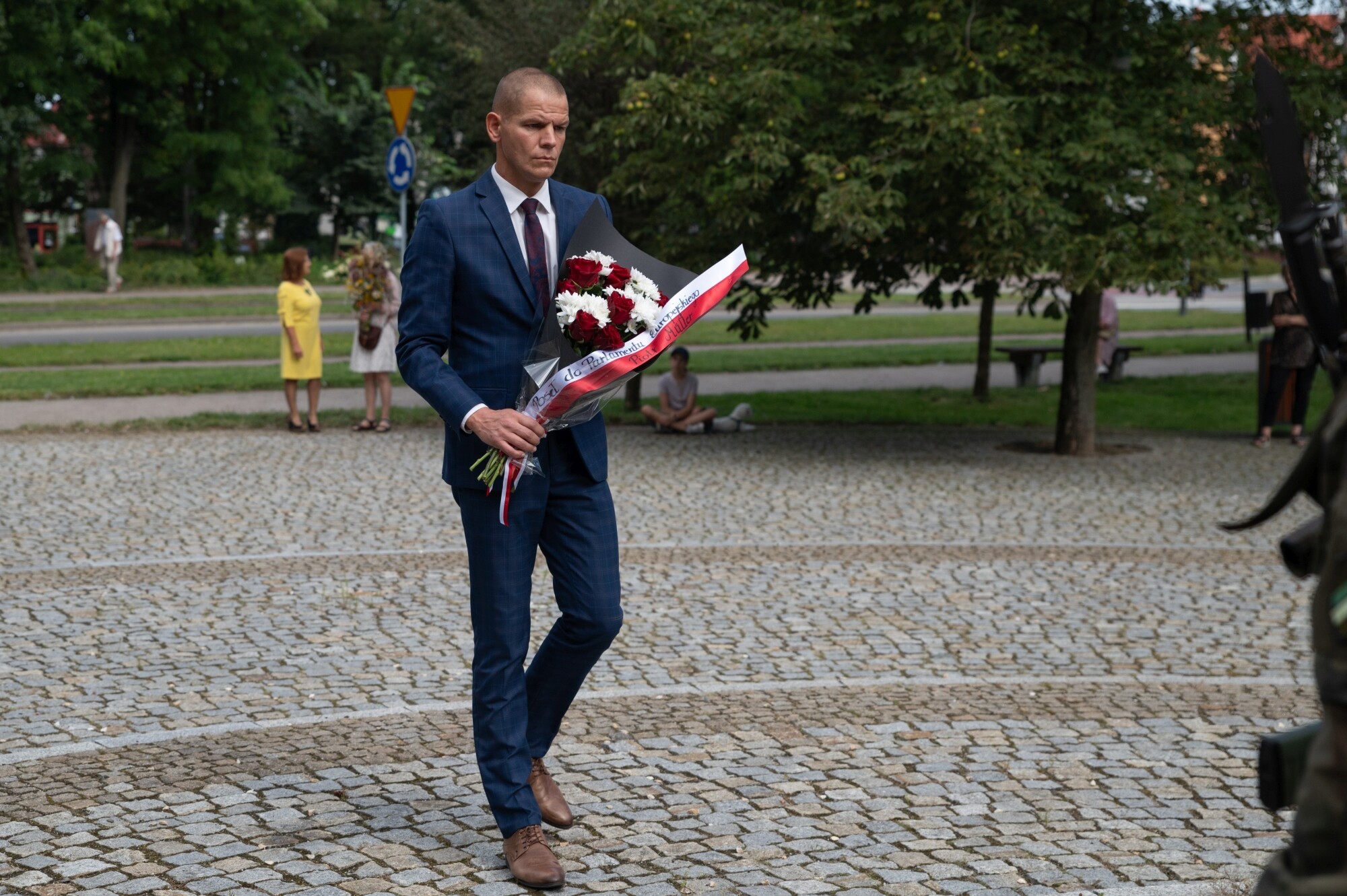 Kwiaty pod obeliskiem w Święto Wojska
