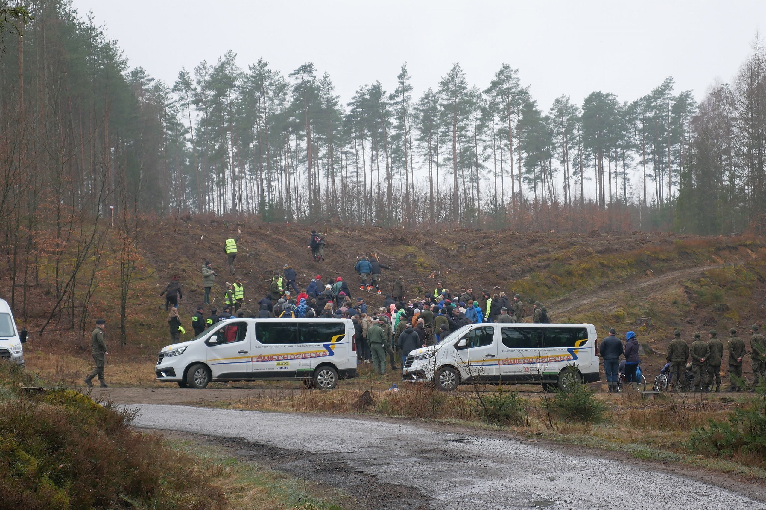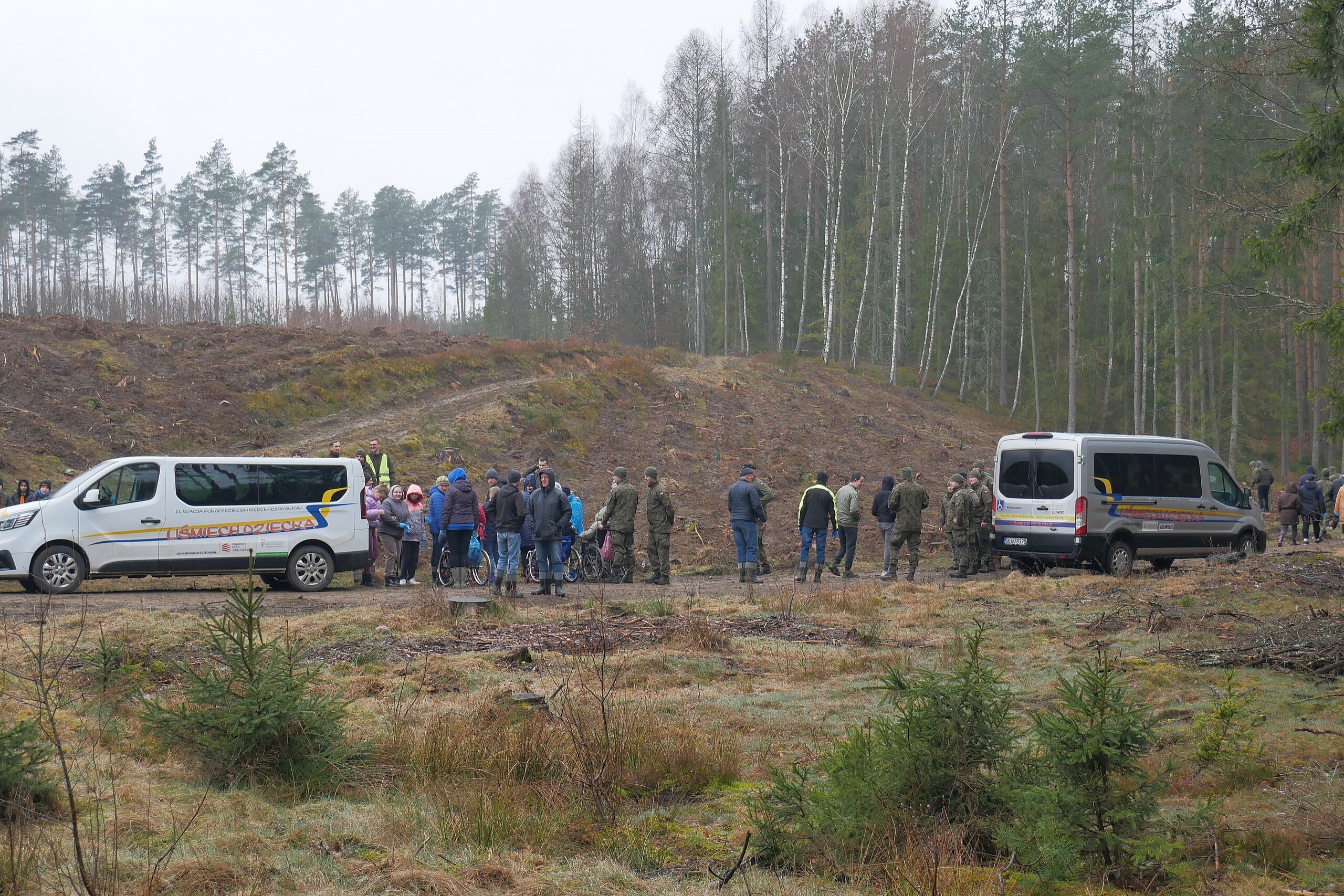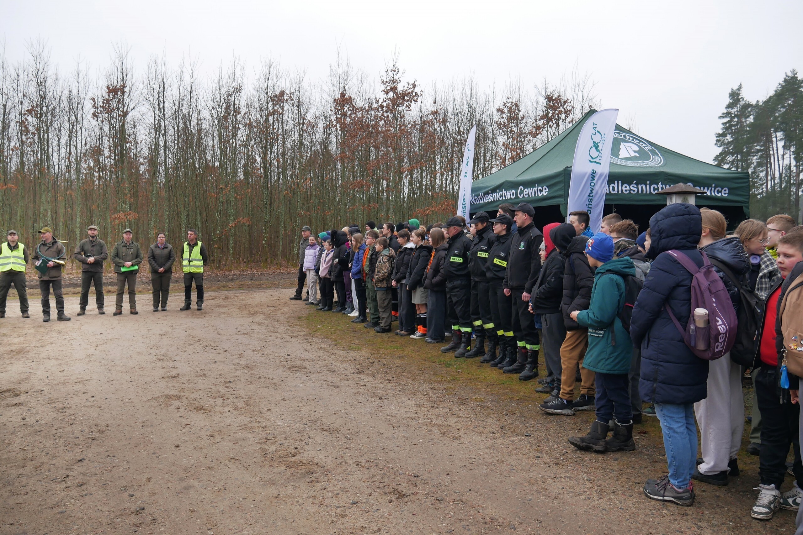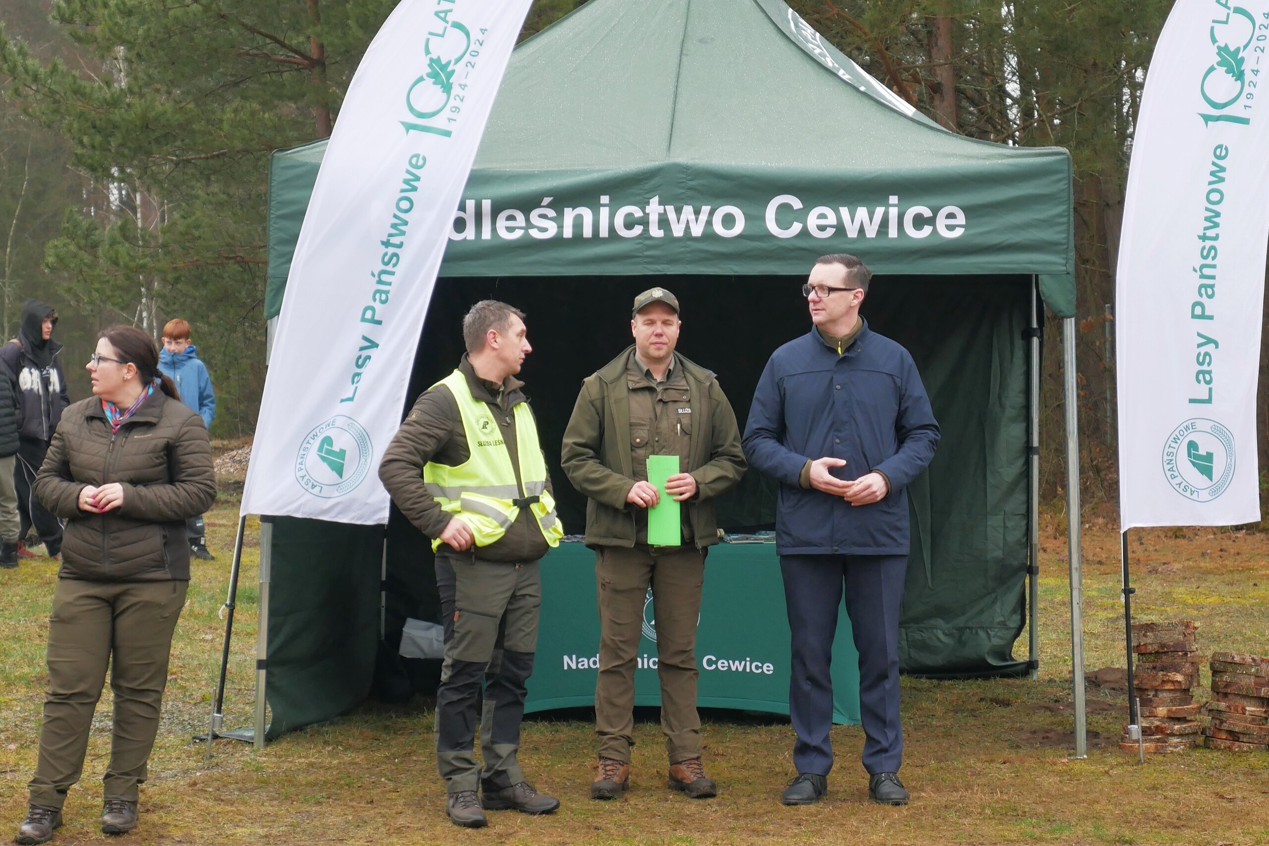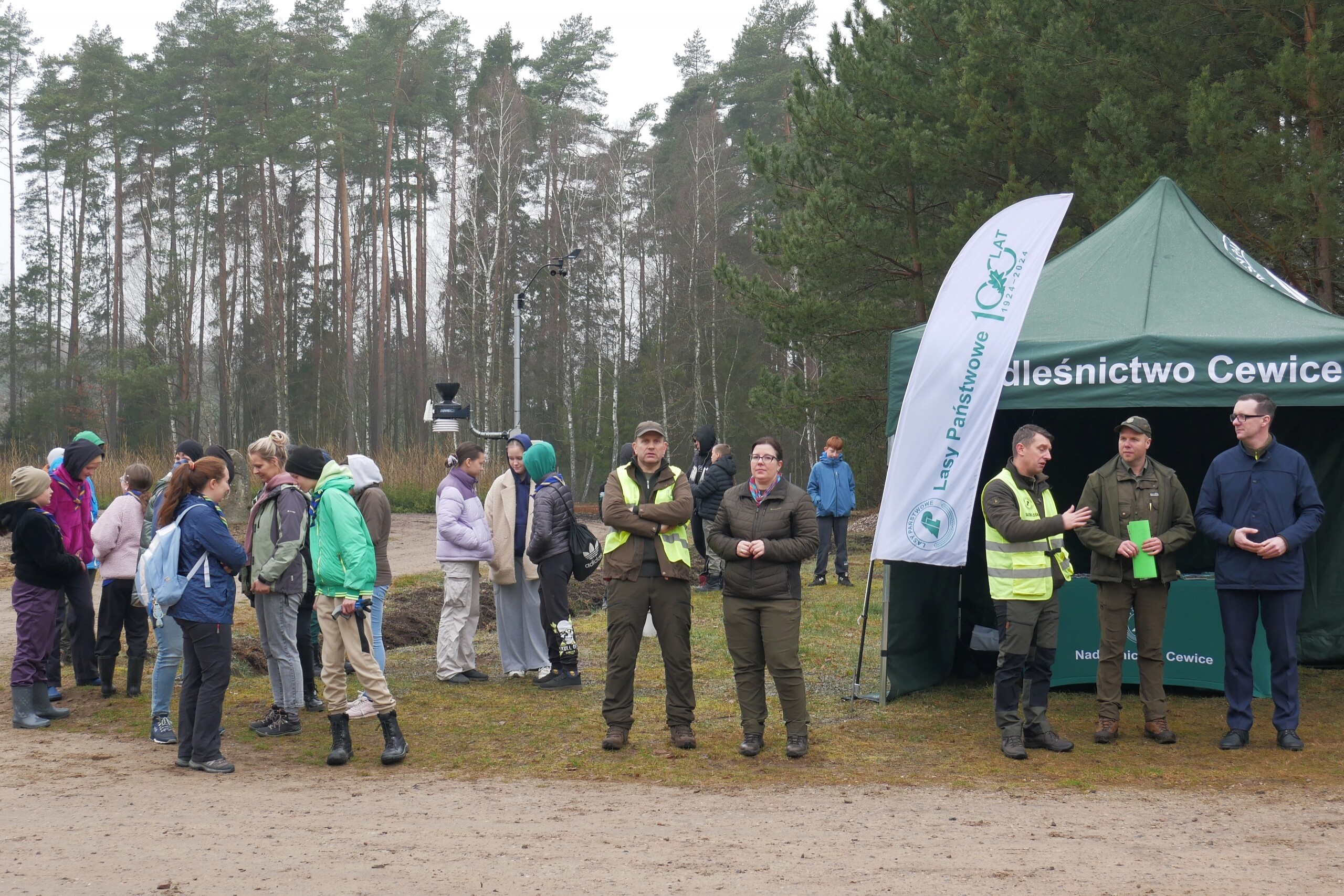 Tego dnia akcję zorganizowano na terenie Szkółki Leśnej Oddziału 2F Leśnictwa Okalice. Na miejscu tłumnie pojawiła się młodzież z okolicznych szkół. Busami, autobusami dojechali na miejsce, gdzie po krótkiej odprawie, połączonej z odegraniem sygnałów na rogach, ruszyli na stanowiska nasadzeń. Na miejscu, krótki instruktaż jak sprawnie radzić sobie ze sprzętem – kosturem do sadzenia lasu i w jaki sposób umieszczać sadzonki, żeby mogły się właściwie ukorzenić. Nie zabrakło oczywiście instruktażu dotyczącego leśnego BHP, czyli jak prace wykonywać efektywnie i bezpiecznie. Młodzieży i leśnikom towarzyszyli strażacy z OSP w Cewicach, samorządowcy z Wójtem Gminy Cewice Jerzym Bańką i Adamem Dominieckim, łączącym zawodową pracę leśnika z pełnieniem mandatu radnego Powiatu Lęborskiego. Zapału do pracy dodawali dowódcy jednostek wojskowych z Siemirowic, funkcjonujących pośród cewickich lasów. Obecny był także Adrian Wenta – Wicestarosta Lęborski, na co dzień związany miejscem zamieszkania z gminą Cewice oraz do niedawna radny cewickiego samorządu. – Jestem przekonany o potrzebie takich akcji, ponieważ lasy to nasze lokalne bogactwo i ważny element gospodarki regionu i kraju – mówi wicestarosta A. Wenta – Kiedyś sam uczestniczyłem w podobnych działaniach, teraz cieszę się, że jest tak wiele młodzieży chętnej do uczestnictwa w świadomym dbaniu o dobrostan leśnego ekosystemu i wychowawców, którzy do szeroko pojętego dbania o przyrodę zachęcają swoich podopiecznych.