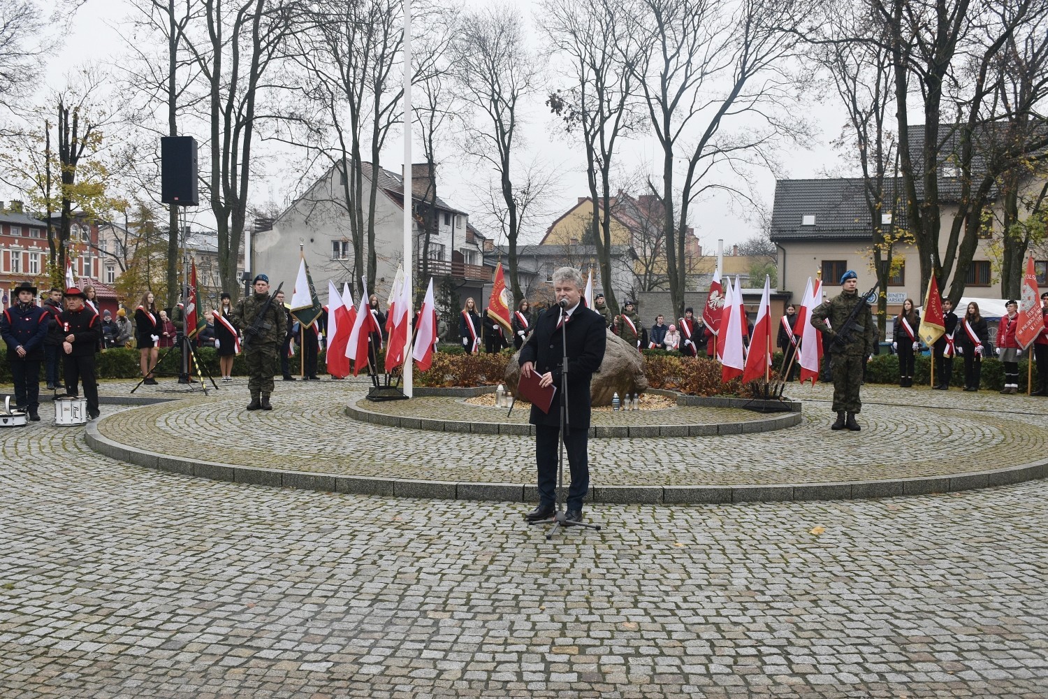 W przemówieniu, burmistrz W. Namyślak zwrócił uwagę na fakt, że wymiar polskiego święta odzyskania niepodległości, ma również swój wymiar europejski, ponieważ 11 listopada we francuskim Compiègne, Niemcy podpisały z państwami ententy rozejm kończący I wojnę światową, co zakończyło krwawą tragedię wojenną ówczesnej Europy. 11 listopada 1918 r Józef Piłsudski otrzymał pełnię władzy wojskowej od Rady Regencyjnej. 1918 rok dał również szansę Polakom, żyjącym dotąd przez 123 lata w trzech różnych państwach o odmiennych systemach politycznych, społecznych i gospodarczych na urzeczywistnienie w formie własnego odrodzonego państwa trwające dotychczas jedynie w świadomości poczucie narodowej wspólnoty.