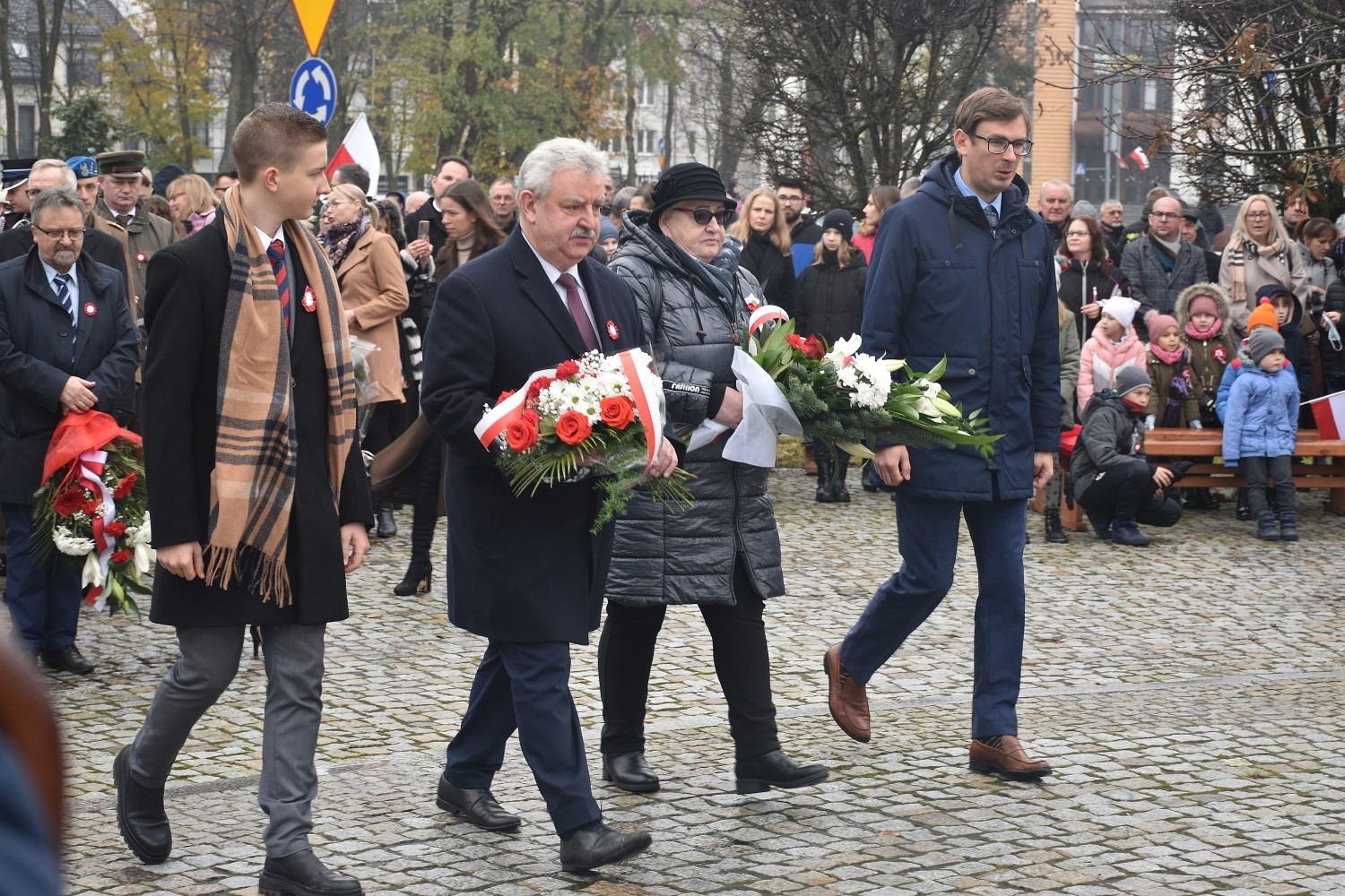 Obchody Narodowego Święta niepodległości zainaugurowała msza odprawiona w Sanktuarium św. Jakuba Ap., skąd w pochodzie, uczestnicy uroczystości dotarli na Skwer Orła Białego, pod Obelisk Niepodległości, gdzie zgodnie z wieloletnią tradycją, odśpiewano wspólnie hymn oraz wysłuchano montażu słowno-muzycznego, przygotowanego tym razem przez uczniów Szkoły Podstawowej nr 3, opracowanego pod kierunkiem Agnieszki Okuszko-Pokojskiej i Mirosławy Grynkiewicz.