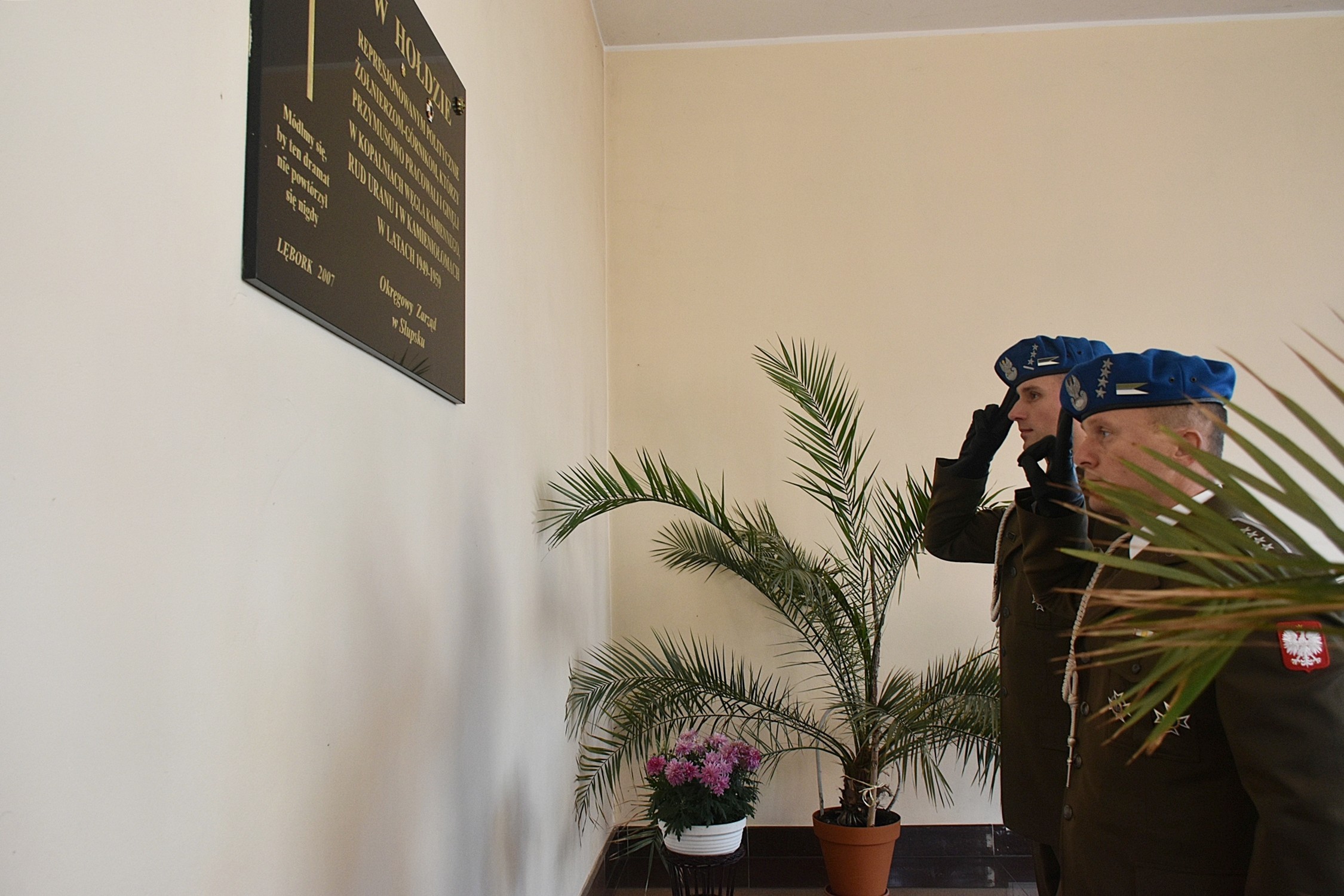 Przedstawiciele władz samorządowych powiatu i miasta złożyli okolicznościowe wiązanki kwiatów pod tablicą „W hołdzie represjonowanym politycznie żołnierzom-górnikom, którzy przymusowo pracowali i ginęli w kopalniach węgla kamiennego, rud uranu i w kamieniołomach w latach 1949-1959”.