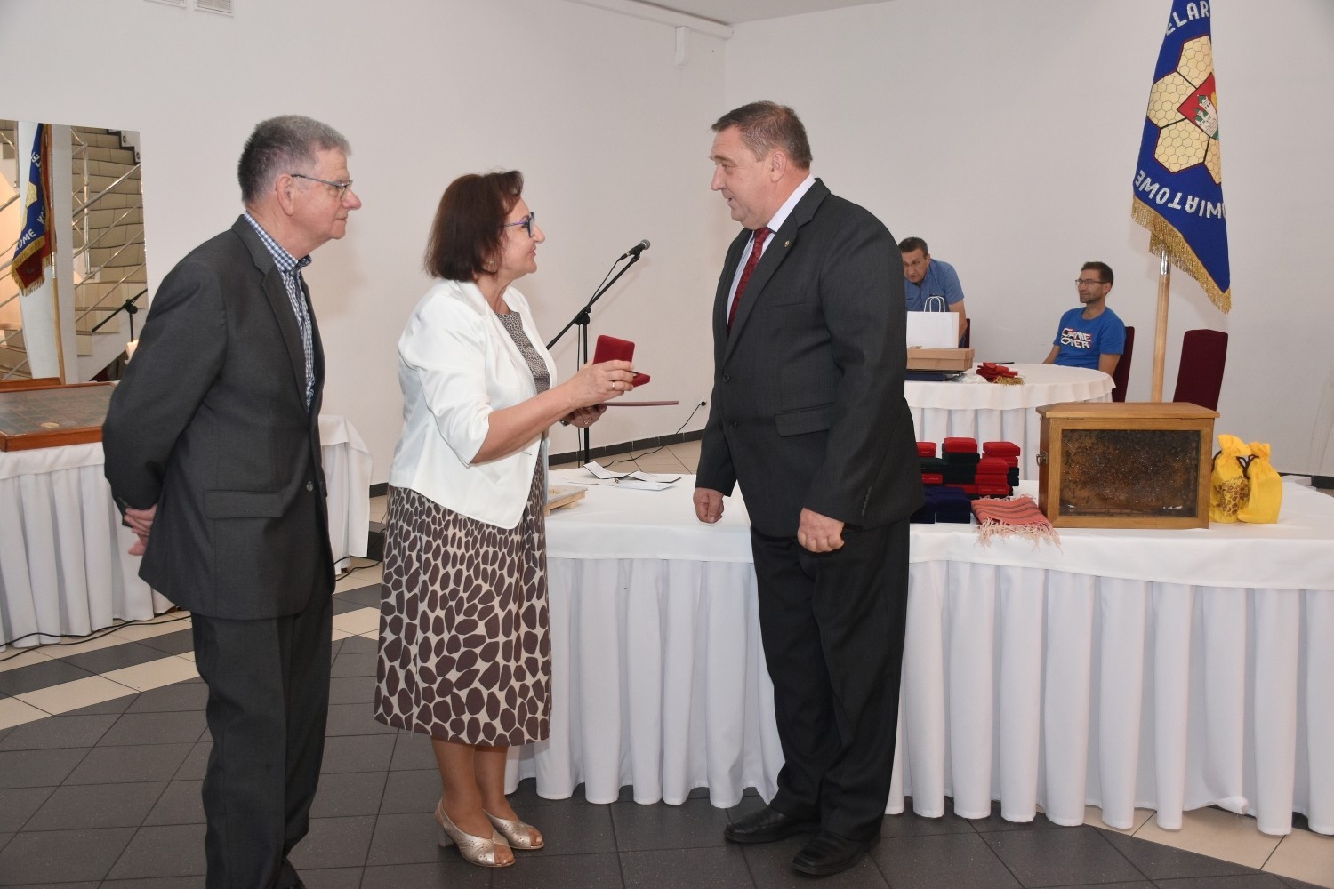 Starosta Alicja Zajączkowska przypomniała dotychczasowe kontakty z pszczelarzami i rozmowy, z których wiele dotyczyło tego, że pszczoły trzeba chronić, zanim jeszcze wpływy środowiskowe doprowadziły do spadku ich populacji. Zwróciła uwagę na wizjonerskie podejście do tematu prezesa Jana Przychody, od dawna pracującego nad promocją pszczelarstwa i działaniami na rzecz ochrony pszczelich rodzin przed wpływami cywilizacji. – Z okazji jubileuszu 75-lecia życzę prężnych i wydajnych rodzin pszczelich, a wszystkim mieszkańcom Ziemi Lęborskiej – słodkich i smacznych wyników waszej pracy, która czyni nasze życie zdrowym i szczęśliwym – odczytała treść okolicznościowego grawertonu starosta.