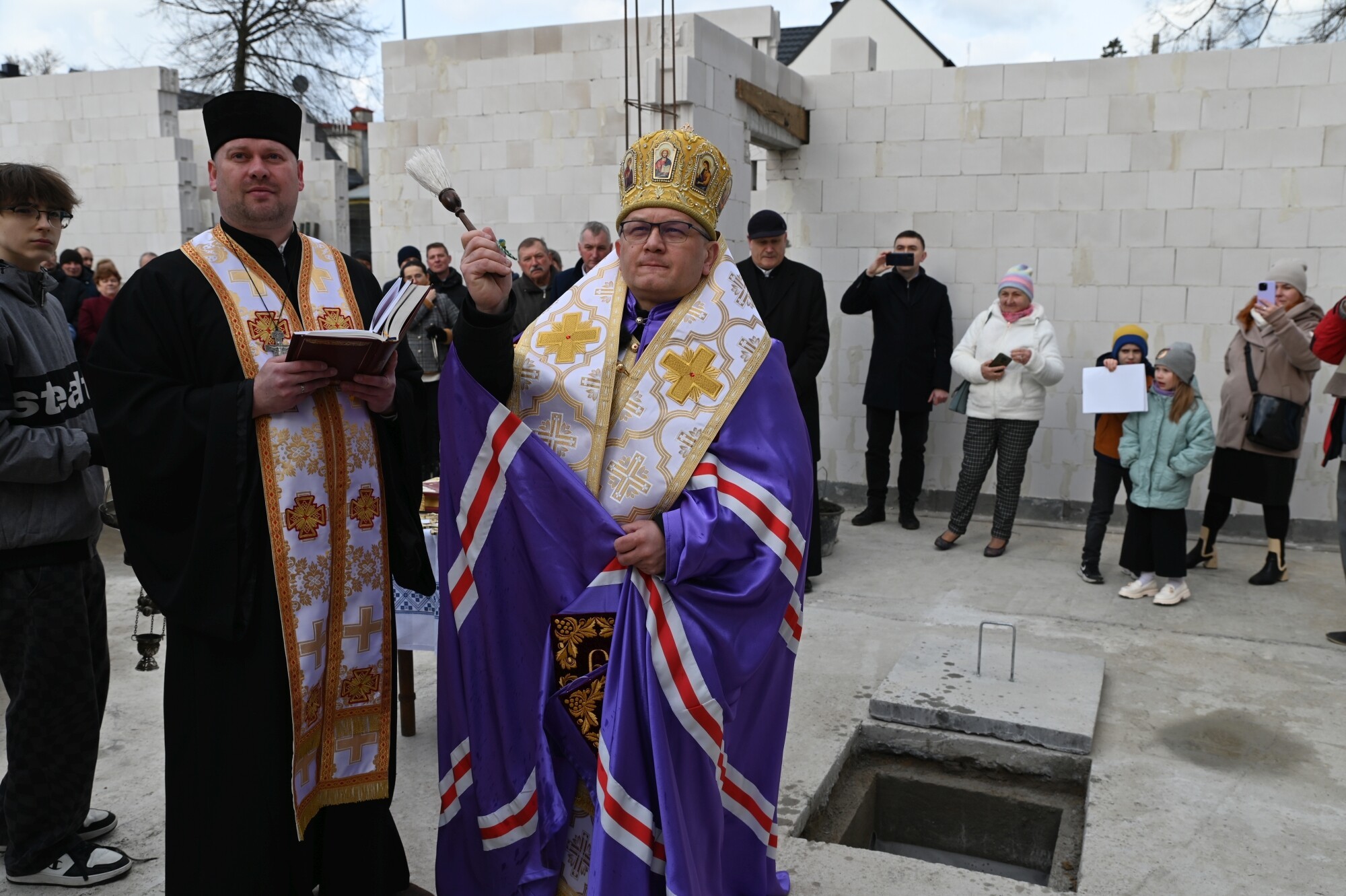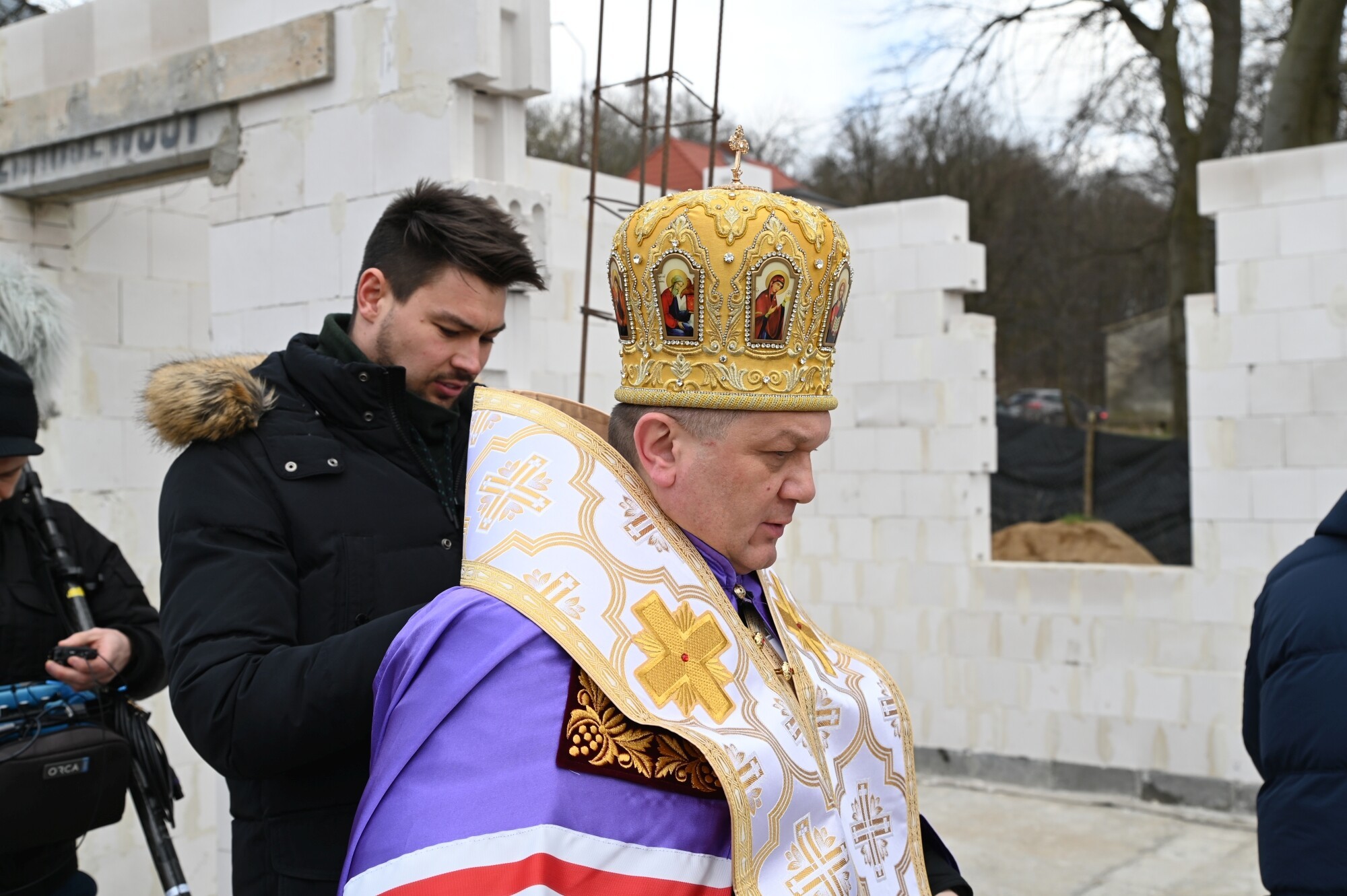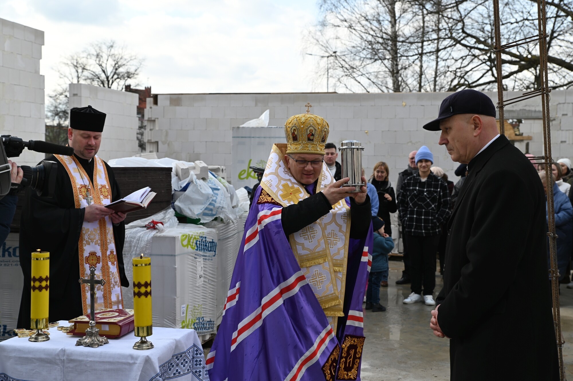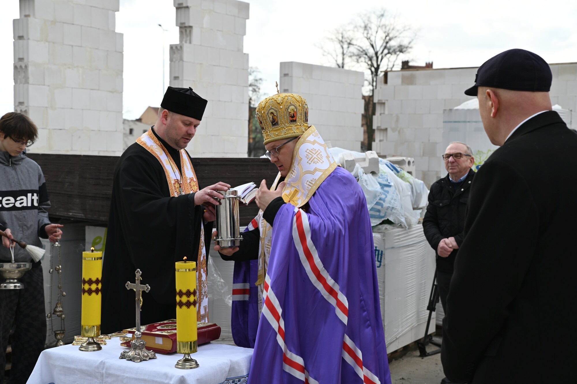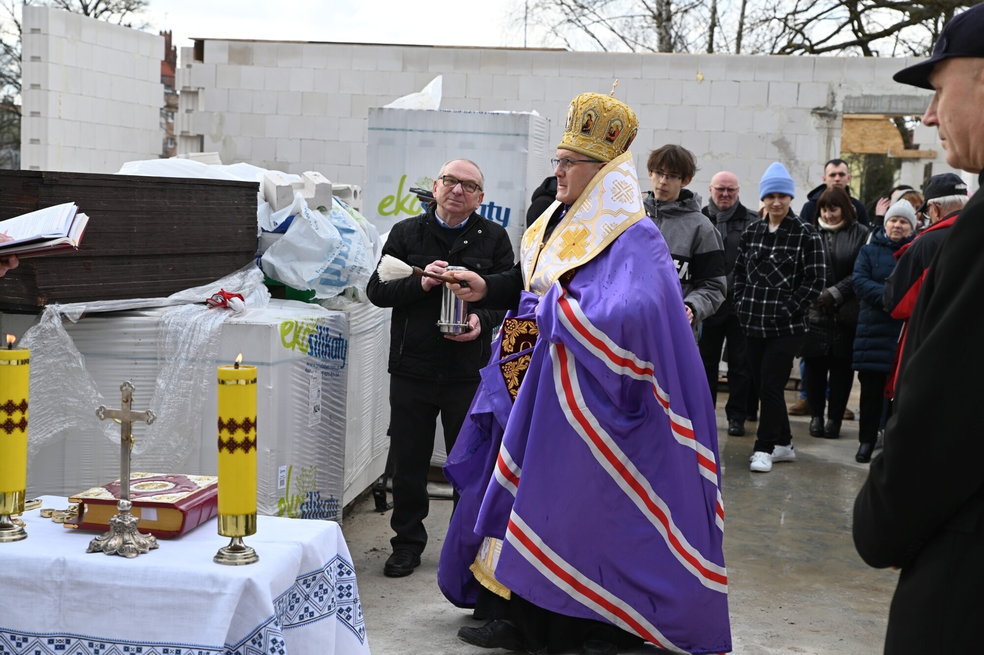 Trzy lata temu – 7 listopada, w miejscu dzisiejszej budowy, bp A. Trochanowski poświęcił krzyż umiejscowiony na zaplanowanym miejscu budowy cerkwi. Budowa ruszyła jednak dopiero po ponad dwóch latach od tego wydarzenia. Wcześniejsze plany pokrzyżowała pandemia i wybuch wojny w Ukrainie. Zmianie uległ również sam projekt świątyni, zakładając nieco skromniejsze, wobec wcześniej planowanych, rozwiązania. To efekt lawinowego wzrostu kosztów materiałów budowlanych i finansowania inwestycji z dość ograniczonych środków, bo pochodzących z funduszy wiernych i pozyskiwanych funduszy zewnętrznych, co nie jest łatwym zadaniem. Spore koszty wygenerowało również przygotowanie terenu, stabilizacja gruntu, co wiązało się z wywiezieniem 70 ciężarówek ziemi. Obecnie realizowana budowla będzie wysoka na 12 m, licząc 250 m kw. powierzchni, w tym ponad 100-metrową nawę główną i 16-metrowe prezbiterium. Do tego niewielka zakrystia, pomieszczenie gospodarcze, toaleta i pokój gościnny. Środki na budowę, społeczność greckokatolicka gromadzi już od 7 lat. Wynikające z nie przewidzianych wcześniej zdarzeń przyczyny sprawiły, że do wspólnej kasy wpływało mniej środków, niż zakładano na początku. Inwestycyjny budżet wspierają różnego rodzaju akcje, jak sprzedaż świec, ciast, czy maseczek podczas pandemii. Dzisiaj pewne jest, że cerkiew powstanie, a to głównie dzięki woli i determinacji wspólnoty wiernych. By inwestycję dokończyć możliwie sprawnie, mile widziane będzie każde wsparcie. Lęborscy grekokatolicy są jedną z nielicznych wspólnot w Polsce północnej, która nie ma własnego miejsca do modlitwy, chociaż parafia św. Dymitra działa nieprzerwanie od 1958 r. Jak powiedział podczas poświęcenia kamienia węgielnego bp. A. Trochanowski, każda budowa, każde chrześcijańskie zadanie powinno zacząć się od modlitwy, żeby Bóg prowadził dzieło mające wysławiać jego imię. – Każda świątynia jest miejscem, które ma uczyć nas na nowo rozumieć przykazanie miłości – miłości boga i bliźniego – mówił bp. Arkadiusz Trochanowski - Znajdujemy się obecnie w takim miejscu, w którym chcemy podziękować wszystkim tym, dzięki którym świątynia powstaje, wszystkim ofiarodawcom. Na wieki wieków w tej świątyni będą wspominani wszyscy, którzy pomogli w jej budowie. Ich imiona będą zawsze w naszej codziennej modlitwie wspominane. Można mieć również przekonanie, że będzie o nich pamiętał Bóg, bo pamięta o tych, dzięki którym szerzy się boże dzieło na Ziemi, sprawiając, że więcej jest pokoju, dobroci i miłości, by Królestwo Boże było między nami.