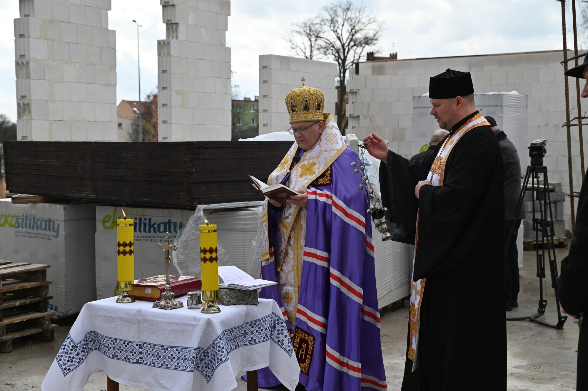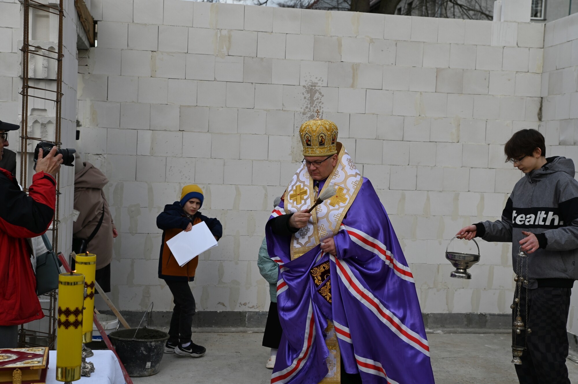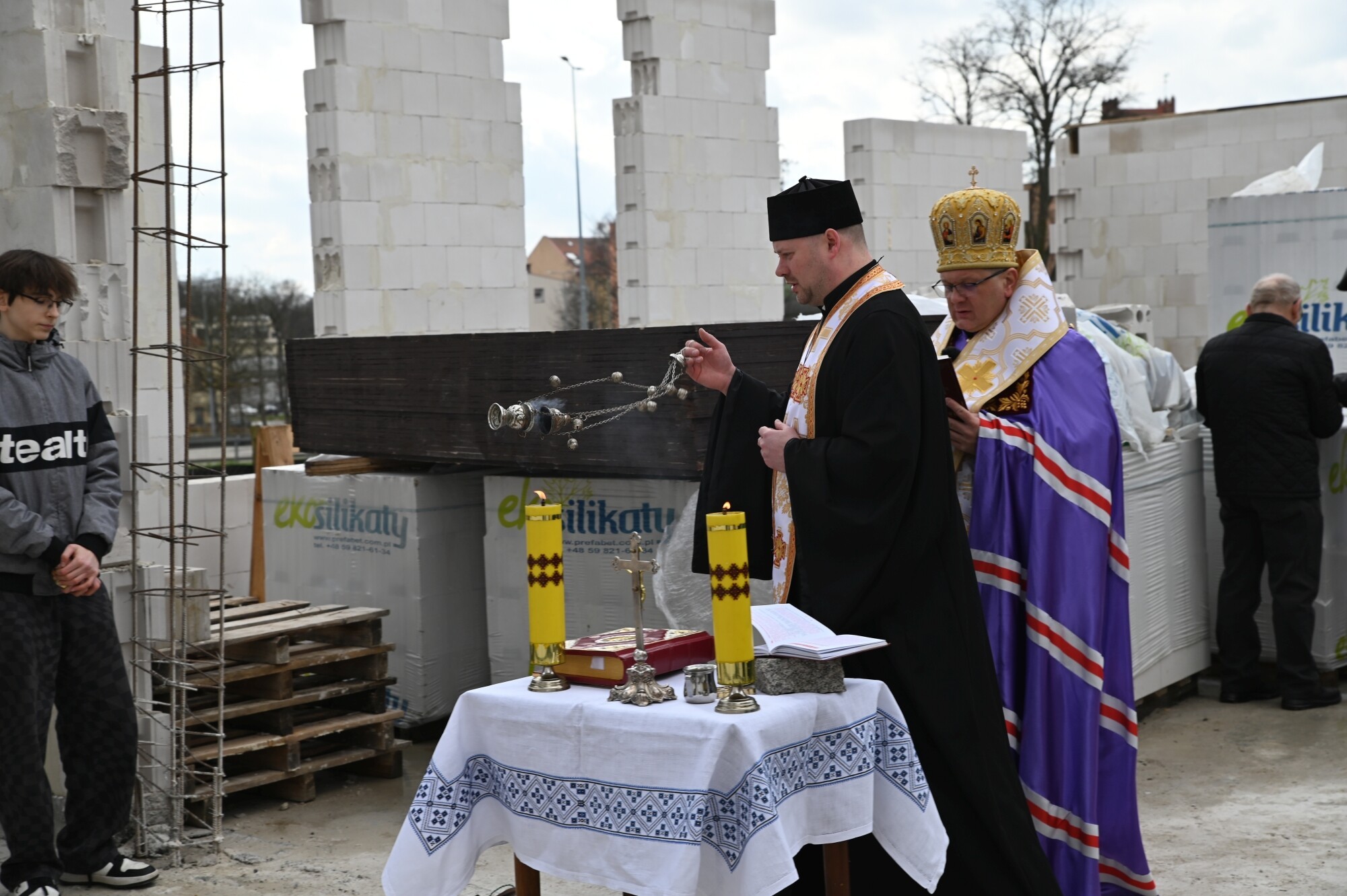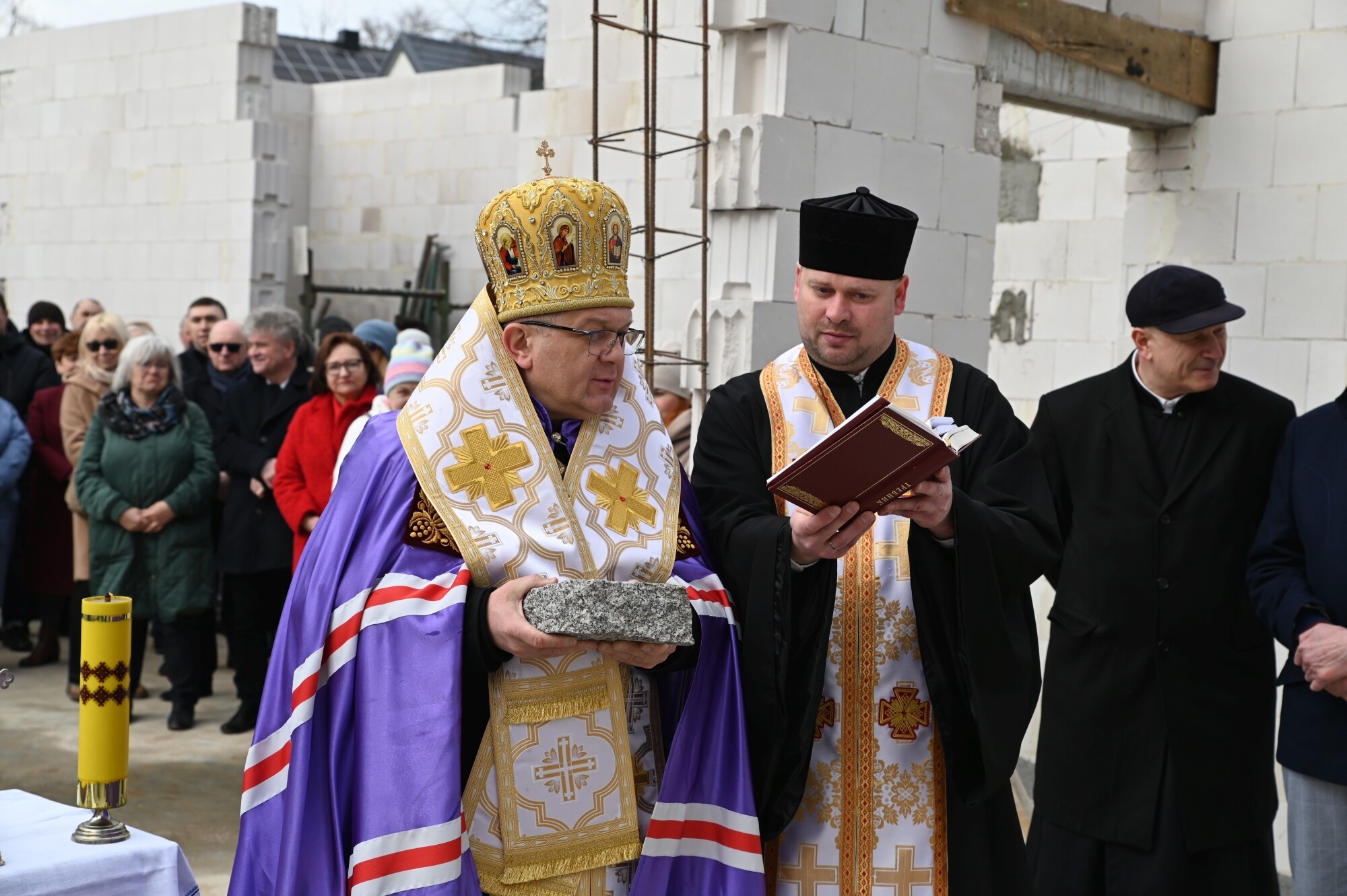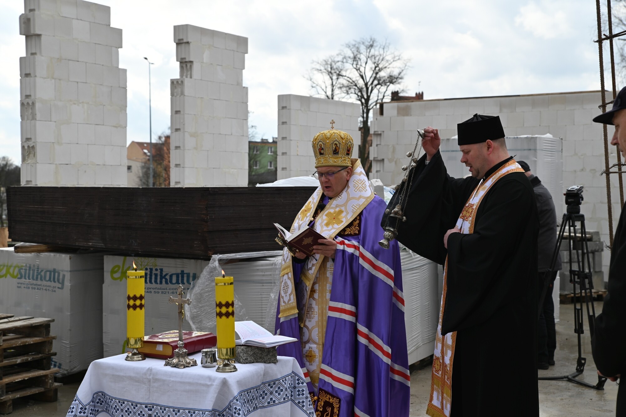 Trzy lata temu – 7 listopada, w miejscu dzisiejszej budowy, bp A. Trochanowski poświęcił krzyż umiejscowiony na zaplanowanym miejscu budowy cerkwi. Budowa ruszyła jednak dopiero po ponad dwóch latach od tego wydarzenia. Wcześniejsze plany pokrzyżowała pandemia i wybuch wojny w Ukrainie. Zmianie uległ również sam projekt świątyni, zakładając nieco skromniejsze, wobec wcześniej planowanych, rozwiązania. To efekt lawinowego wzrostu kosztów materiałów budowlanych i finansowania inwestycji z dość ograniczonych środków, bo pochodzących z funduszy wiernych i pozyskiwanych funduszy zewnętrznych, co nie jest łatwym zadaniem. Spore koszty wygenerowało również przygotowanie terenu, stabilizacja gruntu, co wiązało się z wywiezieniem 70 ciężarówek ziemi. Obecnie realizowana budowla będzie wysoka na 12 m, licząc 250 m kw. powierzchni, w tym ponad 100-metrową nawę główną i 16-metrowe prezbiterium. Do tego niewielka zakrystia, pomieszczenie gospodarcze, toaleta i pokój gościnny. Środki na budowę, społeczność greckokatolicka gromadzi już od 7 lat. Wynikające z nie przewidzianych wcześniej zdarzeń przyczyny sprawiły, że do wspólnej kasy wpływało mniej środków, niż zakładano na początku. Inwestycyjny budżet wspierają różnego rodzaju akcje, jak sprzedaż świec, ciast, czy maseczek podczas pandemii. Dzisiaj pewne jest, że cerkiew powstanie, a to głównie dzięki woli i determinacji wspólnoty wiernych. By inwestycję dokończyć możliwie sprawnie, mile widziane będzie każde wsparcie. Lęborscy grekokatolicy są jedną z nielicznych wspólnot w Polsce północnej, która nie ma własnego miejsca do modlitwy, chociaż parafia św. Dymitra działa nieprzerwanie od 1958 r. Jak powiedział podczas poświęcenia kamienia węgielnego bp. A. Trochanowski, każda budowa, każde chrześcijańskie zadanie powinno zacząć się od modlitwy, żeby Bóg prowadził dzieło mające wysławiać jego imię. – Każda świątynia jest miejscem, które ma uczyć nas na nowo rozumieć przykazanie miłości – miłości boga i bliźniego – mówił bp. Arkadiusz Trochanowski - Znajdujemy się obecnie w takim miejscu, w którym chcemy podziękować wszystkim tym, dzięki którym świątynia powstaje, wszystkim ofiarodawcom. Na wieki wieków w tej świątyni będą wspominani wszyscy, którzy pomogli w jej budowie. Ich imiona będą zawsze w naszej codziennej modlitwie wspominane. Można mieć również przekonanie, że będzie o nich pamiętał Bóg, bo pamięta o tych, dzięki którym szerzy się boże dzieło na Ziemi, sprawiając, że więcej jest pokoju, dobroci i miłości, by Królestwo Boże było między nami.