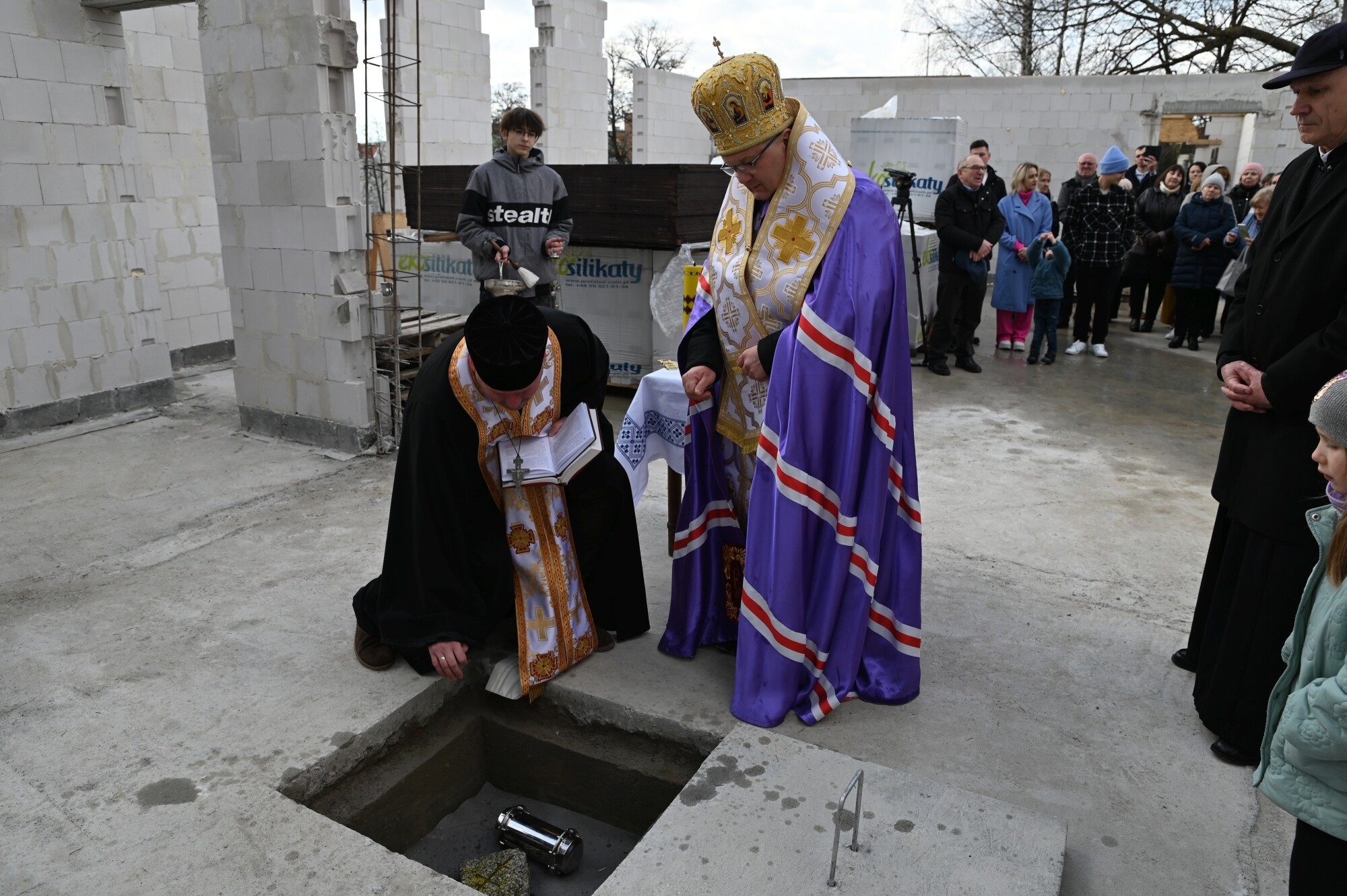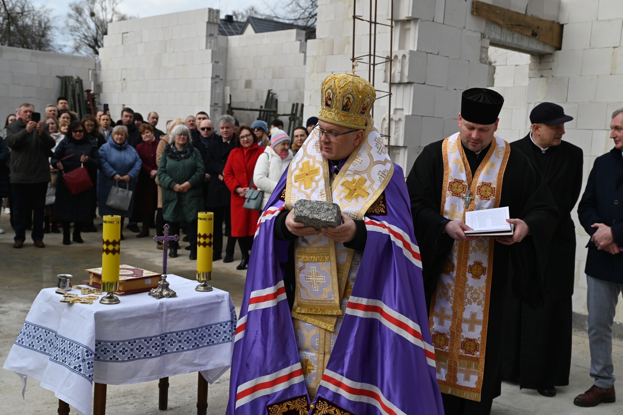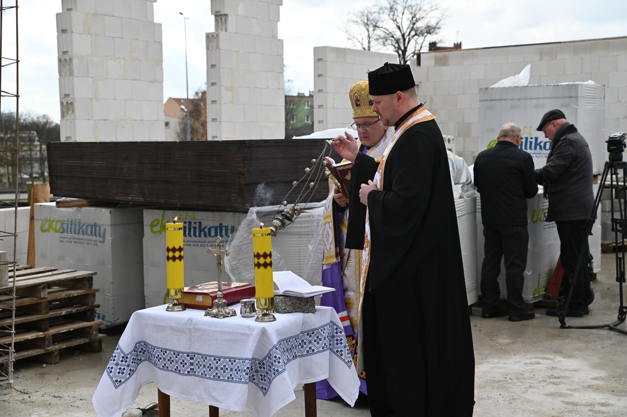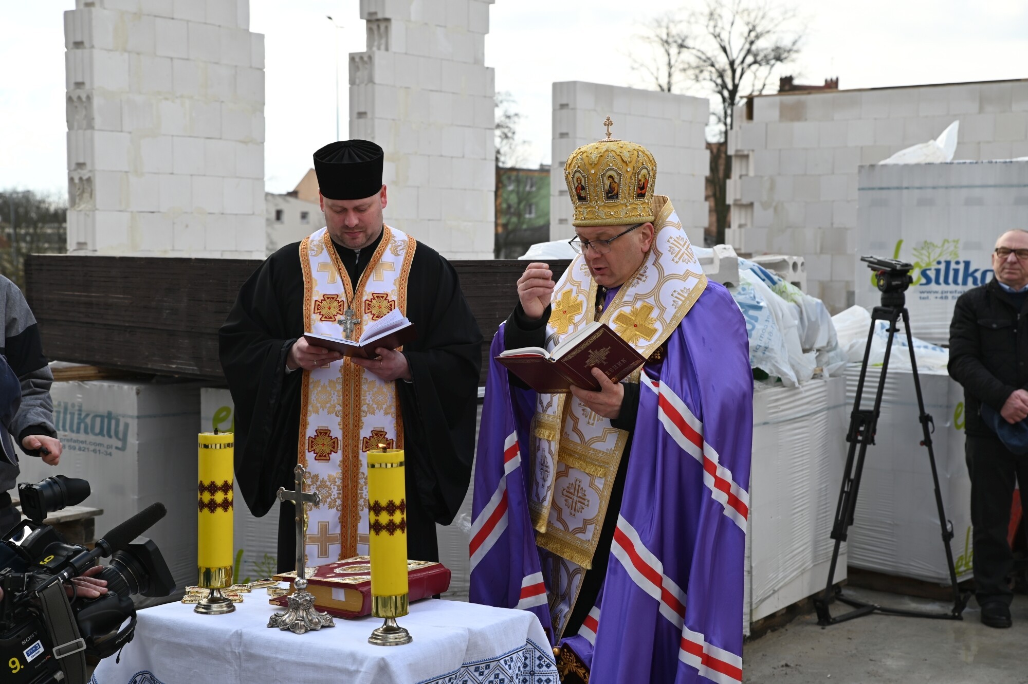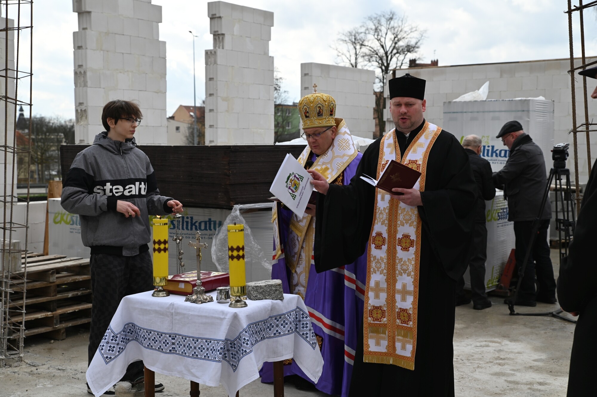 Trzy lata temu – 7 listopada, w miejscu dzisiejszej budowy, bp A. Trochanowski poświęcił krzyż umiejscowiony na zaplanowanym miejscu budowy cerkwi. Budowa ruszyła jednak dopiero po ponad dwóch latach od tego wydarzenia. Wcześniejsze plany pokrzyżowała pandemia i wybuch wojny w Ukrainie. Zmianie uległ również sam projekt świątyni, zakładając nieco skromniejsze, wobec wcześniej planowanych, rozwiązania. To efekt lawinowego wzrostu kosztów materiałów budowlanych i finansowania inwestycji z dość ograniczonych środków, bo pochodzących z funduszy wiernych i pozyskiwanych funduszy zewnętrznych, co nie jest łatwym zadaniem. Spore koszty wygenerowało również przygotowanie terenu, stabilizacja gruntu, co wiązało się z wywiezieniem 70 ciężarówek ziemi. Obecnie realizowana budowla będzie wysoka na 12 m, licząc 250 m kw. powierzchni, w tym ponad 100-metrową nawę główną i 16-metrowe prezbiterium. Do tego niewielka zakrystia, pomieszczenie gospodarcze, toaleta i pokój gościnny. Środki na budowę, społeczność greckokatolicka gromadzi już od 7 lat. Wynikające z nie przewidzianych wcześniej zdarzeń przyczyny sprawiły, że do wspólnej kasy wpływało mniej środków, niż zakładano na początku. Inwestycyjny budżet wspierają różnego rodzaju akcje, jak sprzedaż świec, ciast, czy maseczek podczas pandemii. Dzisiaj pewne jest, że cerkiew powstanie, a to głównie dzięki woli i determinacji wspólnoty wiernych. By inwestycję dokończyć możliwie sprawnie, mile widziane będzie każde wsparcie. Lęborscy grekokatolicy są jedną z nielicznych wspólnot w Polsce północnej, która nie ma własnego miejsca do modlitwy, chociaż parafia św. Dymitra działa nieprzerwanie od 1958 r. Jak powiedział podczas poświęcenia kamienia węgielnego bp. A. Trochanowski, każda budowa, każde chrześcijańskie zadanie powinno zacząć się od modlitwy, żeby Bóg prowadził dzieło mające wysławiać jego imię. – Każda świątynia jest miejscem, które ma uczyć nas na nowo rozumieć przykazanie miłości – miłości boga i bliźniego – mówił bp. Arkadiusz Trochanowski - Znajdujemy się obecnie w takim miejscu, w którym chcemy podziękować wszystkim tym, dzięki którym świątynia powstaje, wszystkim ofiarodawcom. Na wieki wieków w tej świątyni będą wspominani wszyscy, którzy pomogli w jej budowie. Ich imiona będą zawsze w naszej codziennej modlitwie wspominane. Można mieć również przekonanie, że będzie o nich pamiętał Bóg, bo pamięta o tych, dzięki którym szerzy się boże dzieło na Ziemi, sprawiając, że więcej jest pokoju, dobroci i miłości, by Królestwo Boże było między nami.