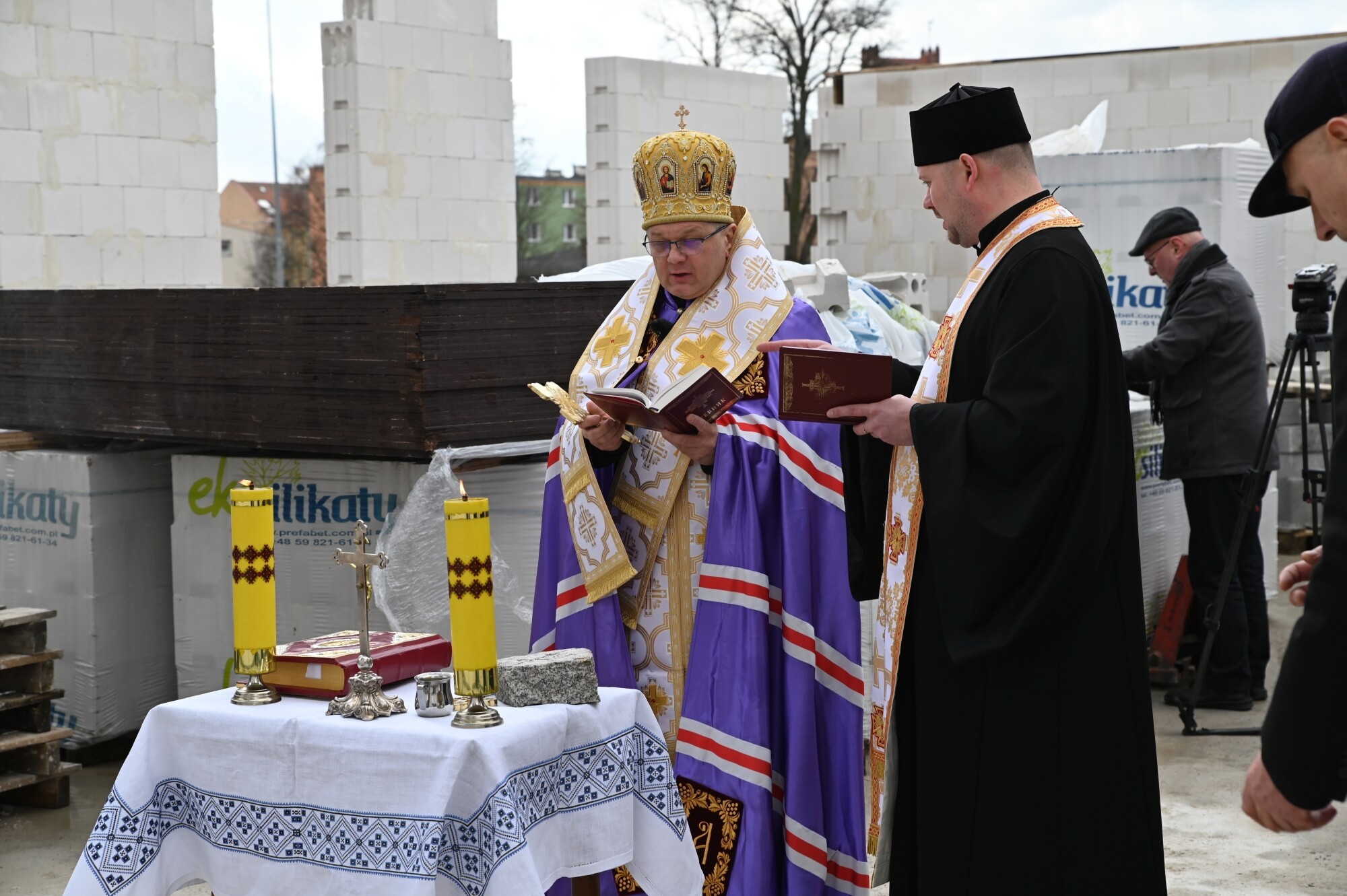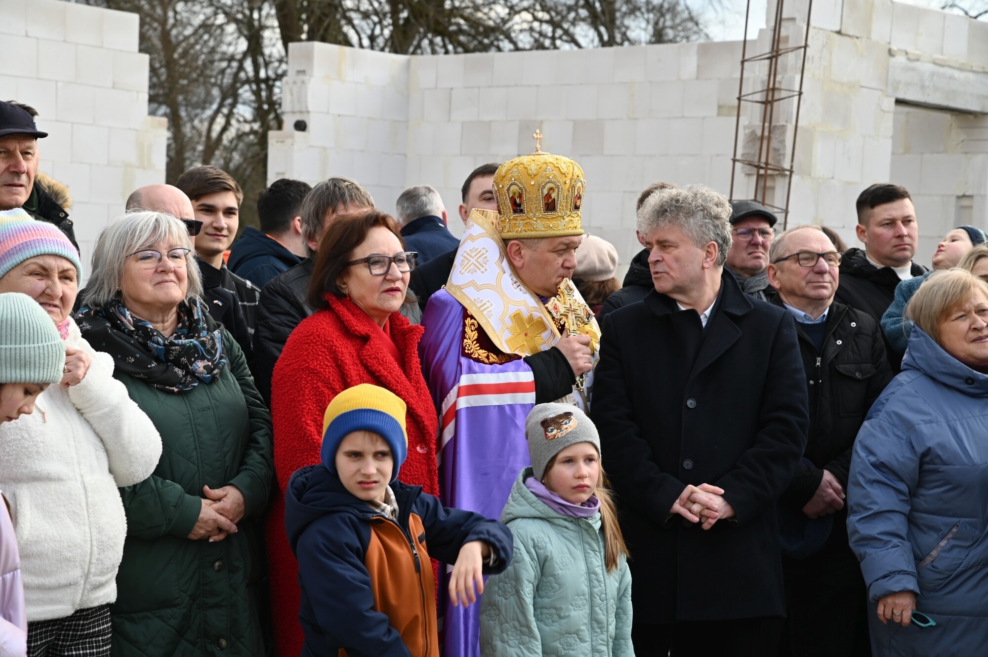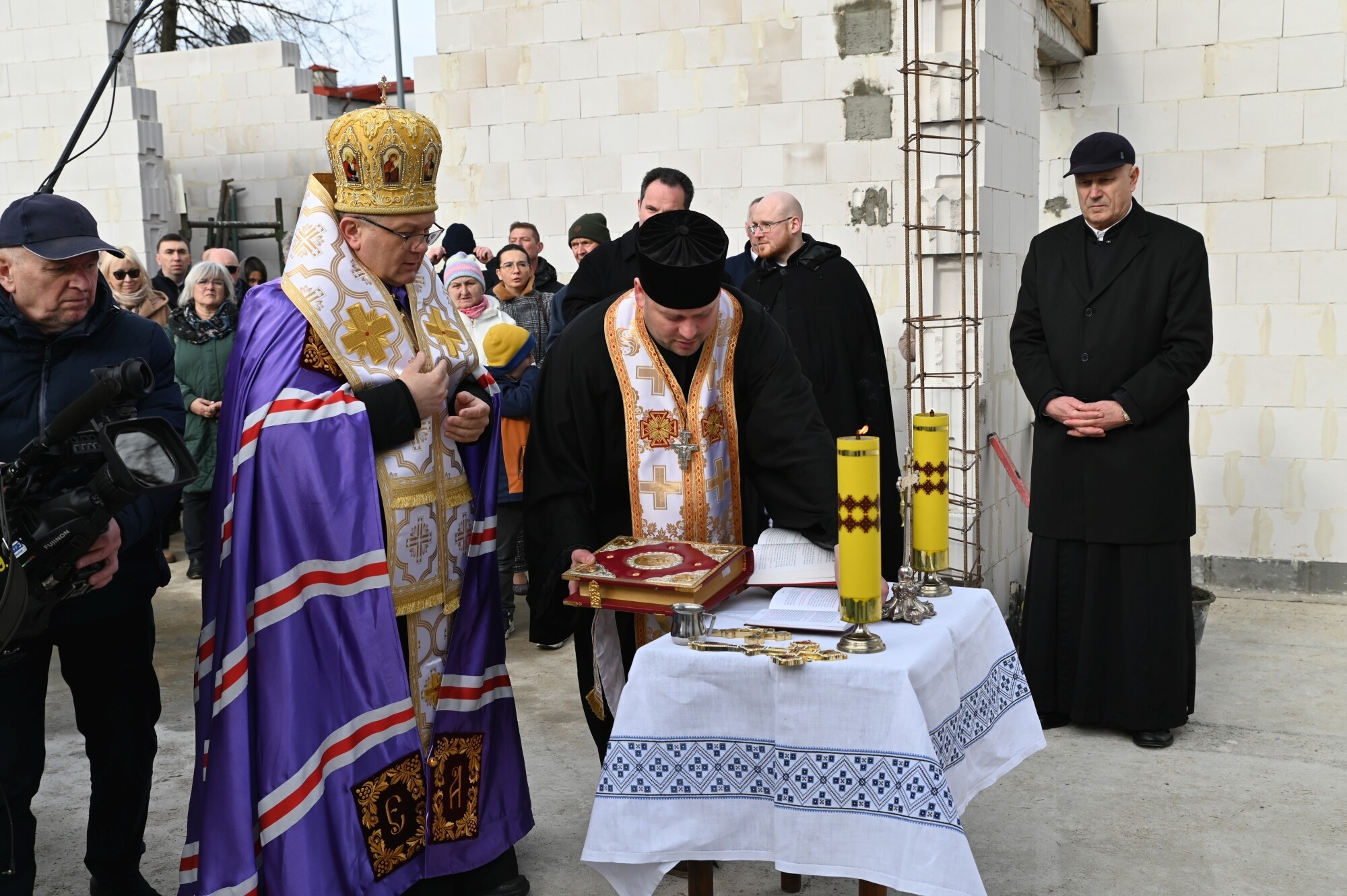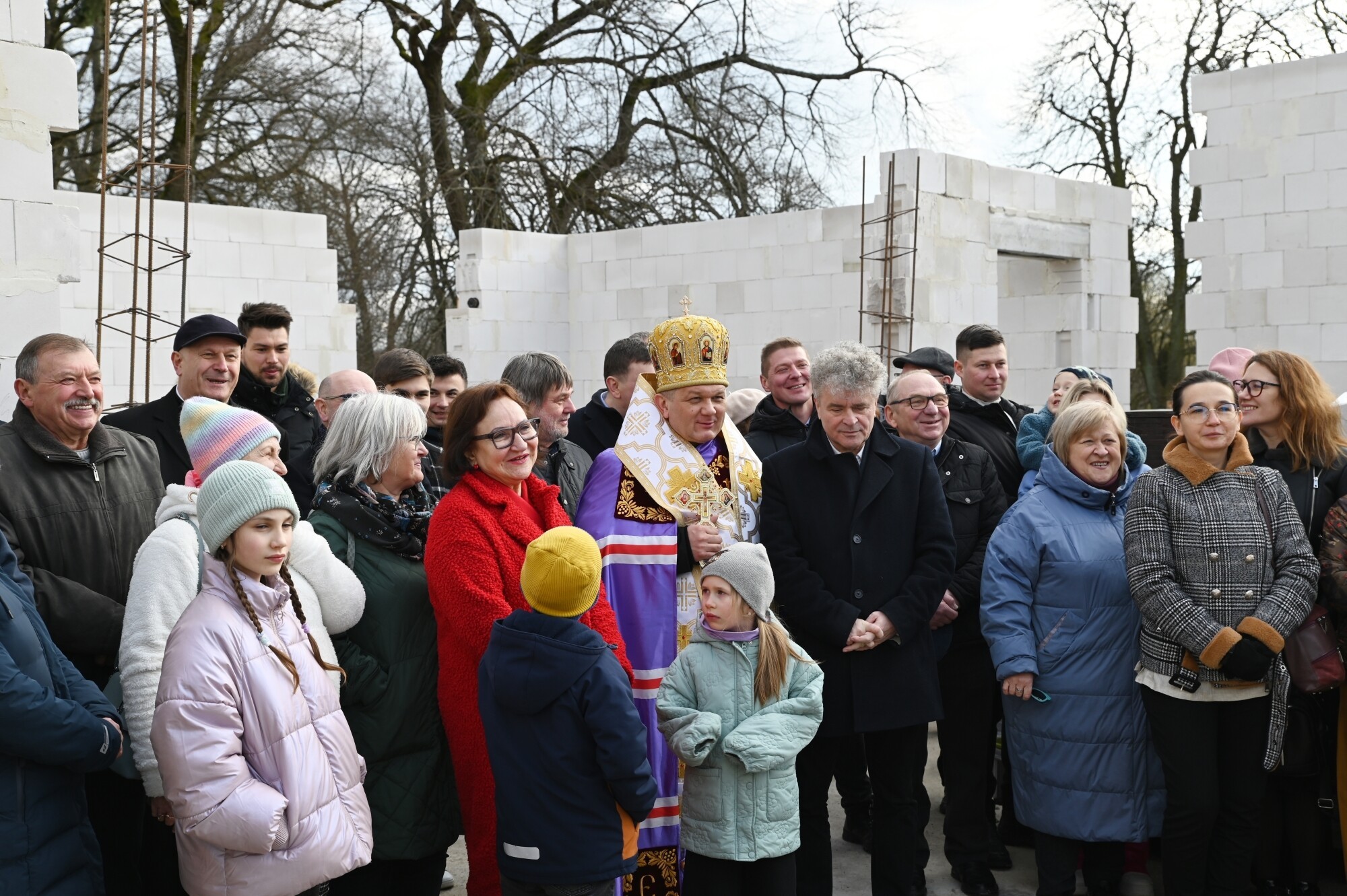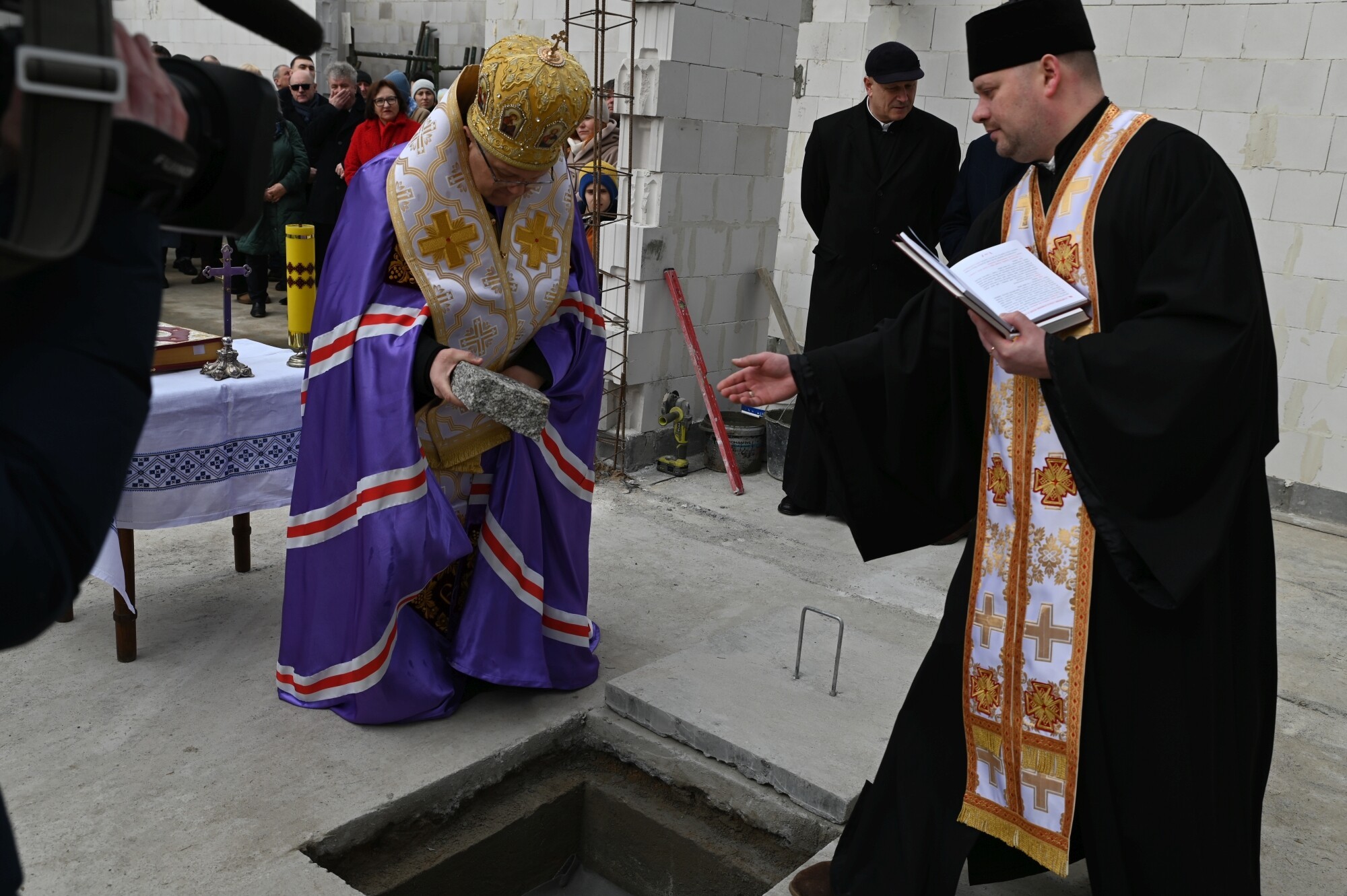 Trzy lata temu – 7 listopada, w miejscu dzisiejszej budowy, bp A. Trochanowski poświęcił krzyż umiejscowiony na zaplanowanym miejscu budowy cerkwi. Budowa ruszyła jednak dopiero po ponad dwóch latach od tego wydarzenia. Wcześniejsze plany pokrzyżowała pandemia i wybuch wojny w Ukrainie. Zmianie uległ również sam projekt świątyni, zakładając nieco skromniejsze, wobec wcześniej planowanych, rozwiązania. To efekt lawinowego wzrostu kosztów materiałów budowlanych i finansowania inwestycji z dość ograniczonych środków, bo pochodzących z funduszy wiernych i pozyskiwanych funduszy zewnętrznych, co nie jest łatwym zadaniem. Spore koszty wygenerowało również przygotowanie terenu, stabilizacja gruntu, co wiązało się z wywiezieniem 70 ciężarówek ziemi. Obecnie realizowana budowla będzie wysoka na 12 m, licząc 250 m kw. powierzchni, w tym ponad 100-metrową nawę główną i 16-metrowe prezbiterium. Do tego niewielka zakrystia, pomieszczenie gospodarcze, toaleta i pokój gościnny. Środki na budowę, społeczność greckokatolicka gromadzi już od 7 lat. Wynikające z nie przewidzianych wcześniej zdarzeń przyczyny sprawiły, że do wspólnej kasy wpływało mniej środków, niż zakładano na początku. Inwestycyjny budżet wspierają różnego rodzaju akcje, jak sprzedaż świec, ciast, czy maseczek podczas pandemii. Dzisiaj pewne jest, że cerkiew powstanie, a to głównie dzięki woli i determinacji wspólnoty wiernych. By inwestycję dokończyć możliwie sprawnie, mile widziane będzie każde wsparcie. Lęborscy grekokatolicy są jedną z nielicznych wspólnot w Polsce północnej, która nie ma własnego miejsca do modlitwy, chociaż parafia św. Dymitra działa nieprzerwanie od 1958 r. Jak powiedział podczas poświęcenia kamienia węgielnego bp. A. Trochanowski, każda budowa, każde chrześcijańskie zadanie powinno zacząć się od modlitwy, żeby Bóg prowadził dzieło mające wysławiać jego imię. – Każda świątynia jest miejscem, które ma uczyć nas na nowo rozumieć przykazanie miłości – miłości boga i bliźniego – mówił bp. Arkadiusz Trochanowski - Znajdujemy się obecnie w takim miejscu, w którym chcemy podziękować wszystkim tym, dzięki którym świątynia powstaje, wszystkim ofiarodawcom. Na wieki wieków w tej świątyni będą wspominani wszyscy, którzy pomogli w jej budowie. Ich imiona będą zawsze w naszej codziennej modlitwie wspominane. Można mieć również przekonanie, że będzie o nich pamiętał Bóg, bo pamięta o tych, dzięki którym szerzy się boże dzieło na Ziemi, sprawiając, że więcej jest pokoju, dobroci i miłości, by Królestwo Boże było między nami.
