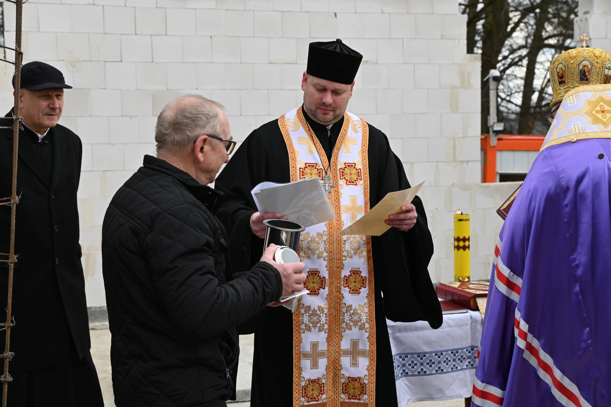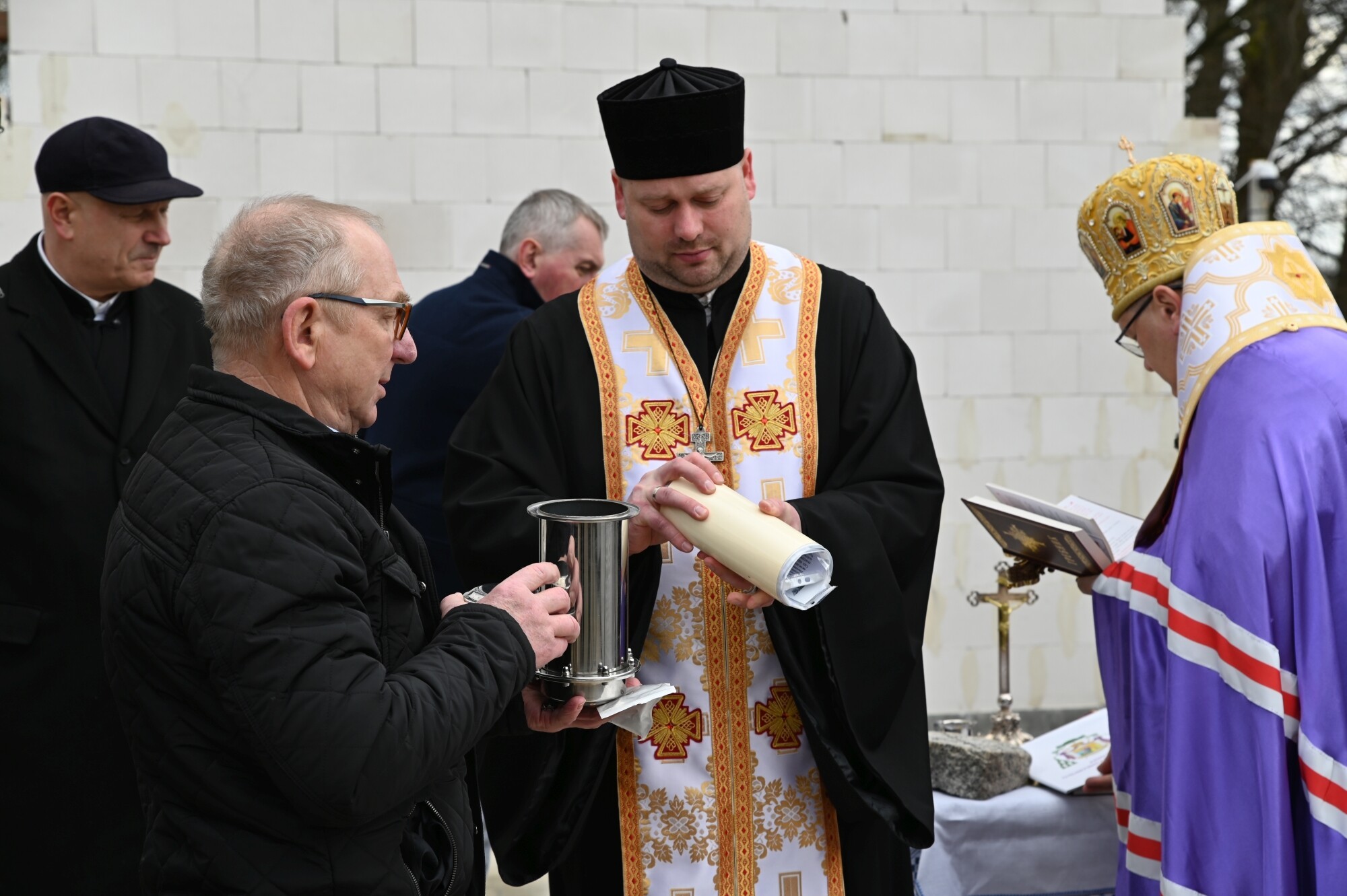Za wsparcie w budowie wszystkim parafianom i samorządowcom dziękował ks. Oleh Hrytsiv – proboszcz parafii św. Dymitra w Lęborku. – Dziękuję samorządowi Lęborka, który przekazał działkę pod budowę, dziękuję burmistrzowi Witoldowi Namyślakowi. Dziękuję pani staroście Alicji Zajączkowskiej, która pomogła w dopięciu wszystkich spraw związanych z uzgodnieniami i pozwoleniami na budowę – mówił ks. O. Hrytsiv – Dziękuję wszystkim członkom wspólnoty parafialnej, którzy umieścili tu swoją cegiełkę – nie jedną cegiełkę. Dziękuję wszystkim budowniczym, panu Jarosławowi Krefcie – naszemu wykonawcy, który wraz z pracownikami wykonali tu ogromną pracę w zaledwie trzy miesiące. Dziękuję panu Piotrowi Kłosowskiemu – kierownikowi budowy, komitetowi budowlanemu oraz obecnej i poprzedniej radzie parafialnej.