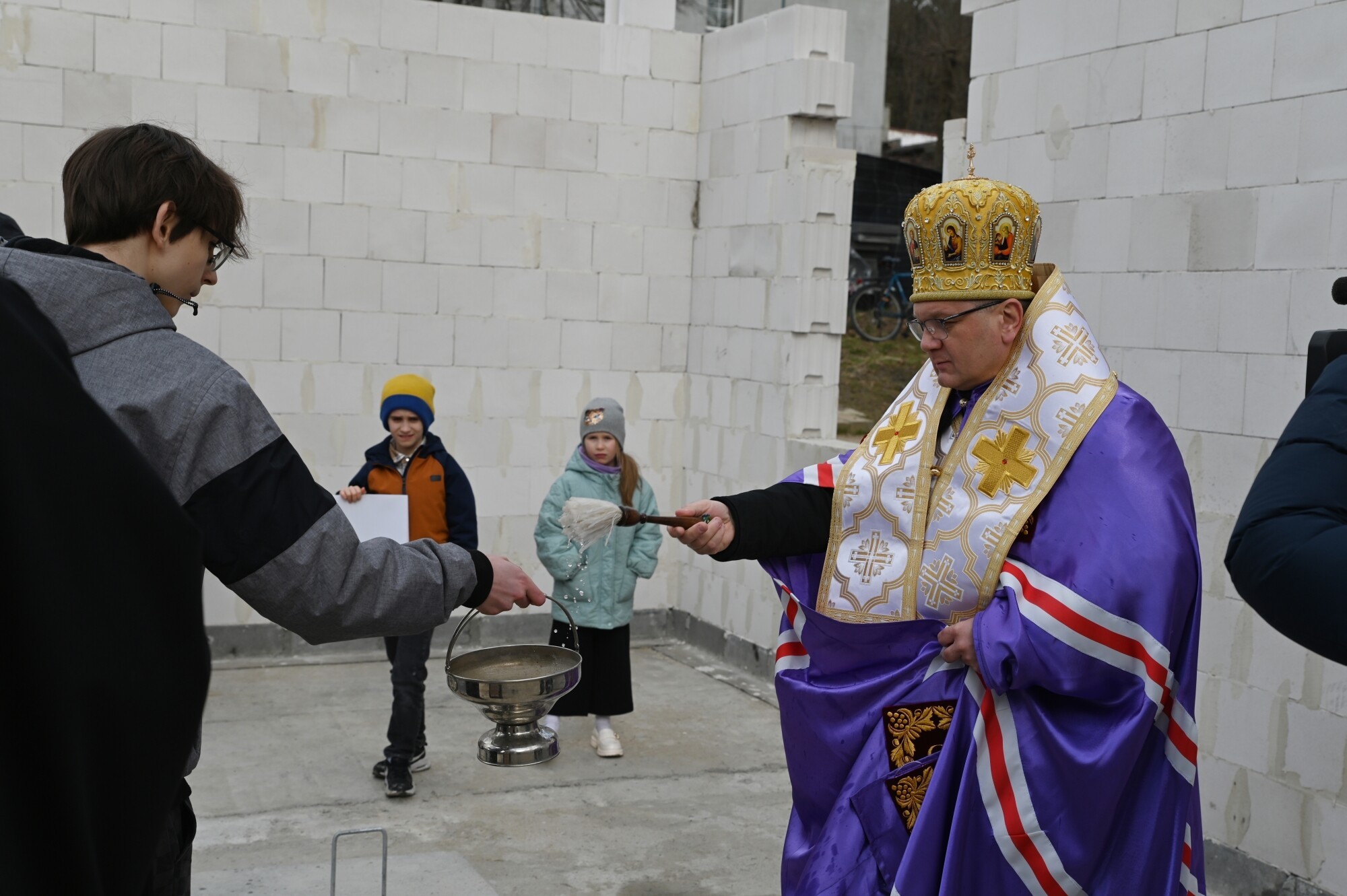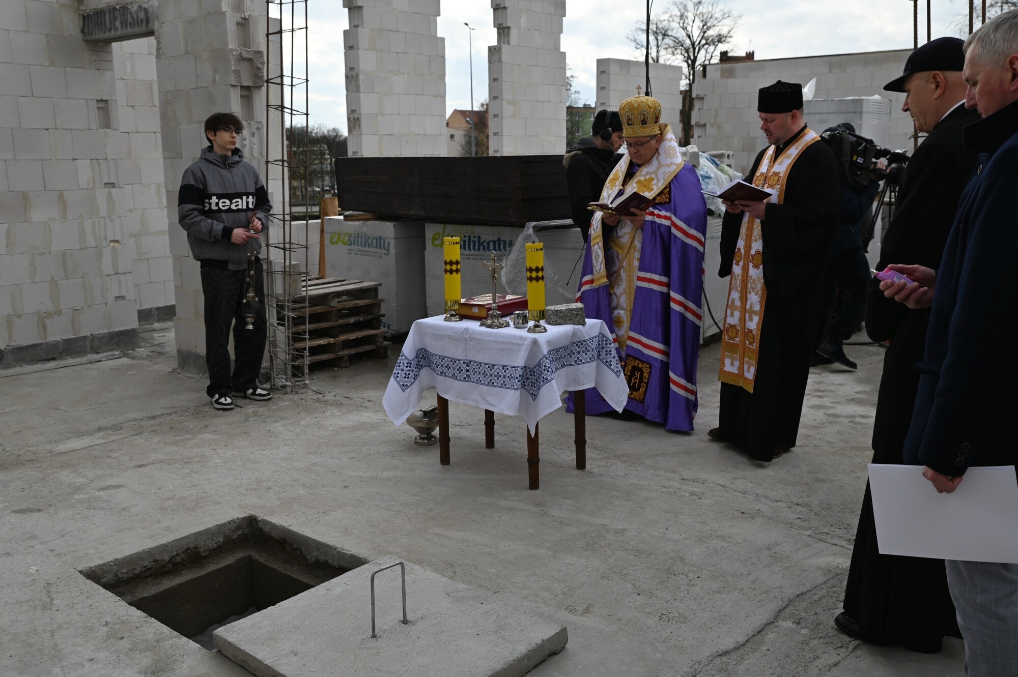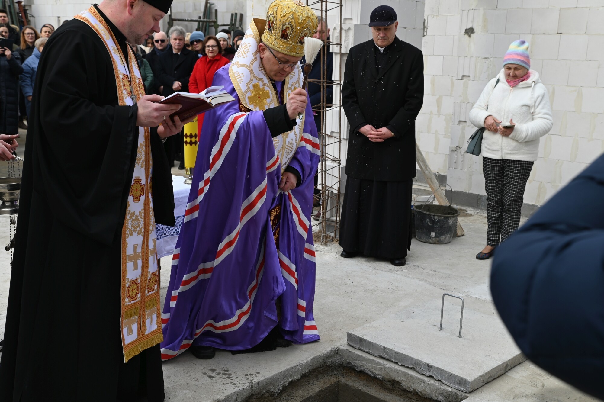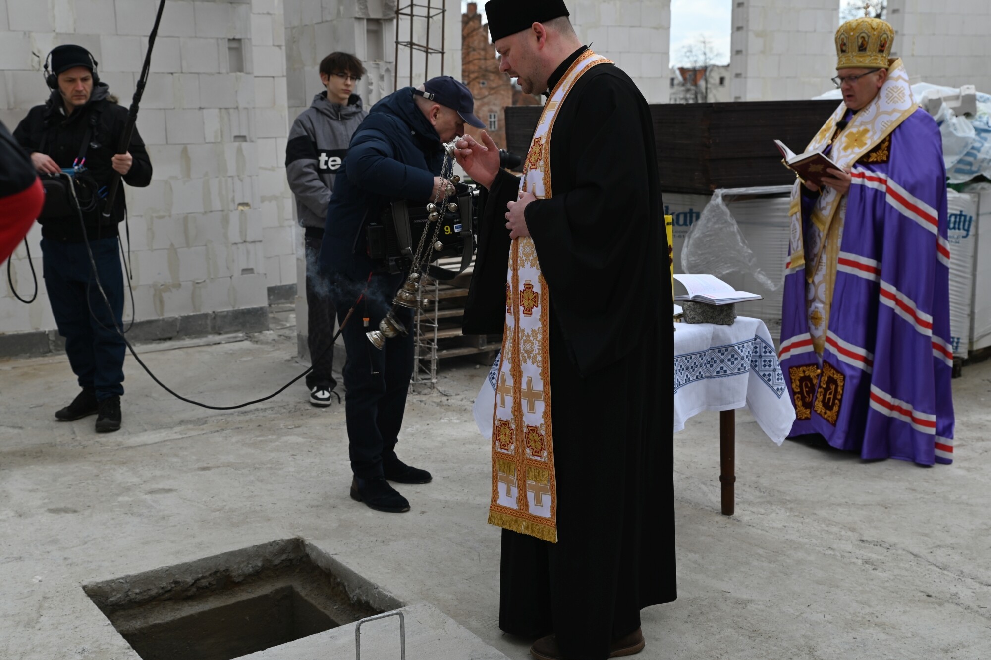 Uroczystości na placu budowy poprzedziła msza pod przewodnictwem bp. Arkadiusza Trochanowskiego, odprawiona w kościele pw. św. Maksymiliana Kolbe, w miejscu, w którym do tej pory spotykali się na nabożeństwach grekokatolicy. W miejscu wmurowania kamienia węgielnego umieszczono również kapsułę czasu, zawierającą dokumenty wraz z aktem erekcyjnym budowli, fotografiami i historią parafii św. Dymitra.
