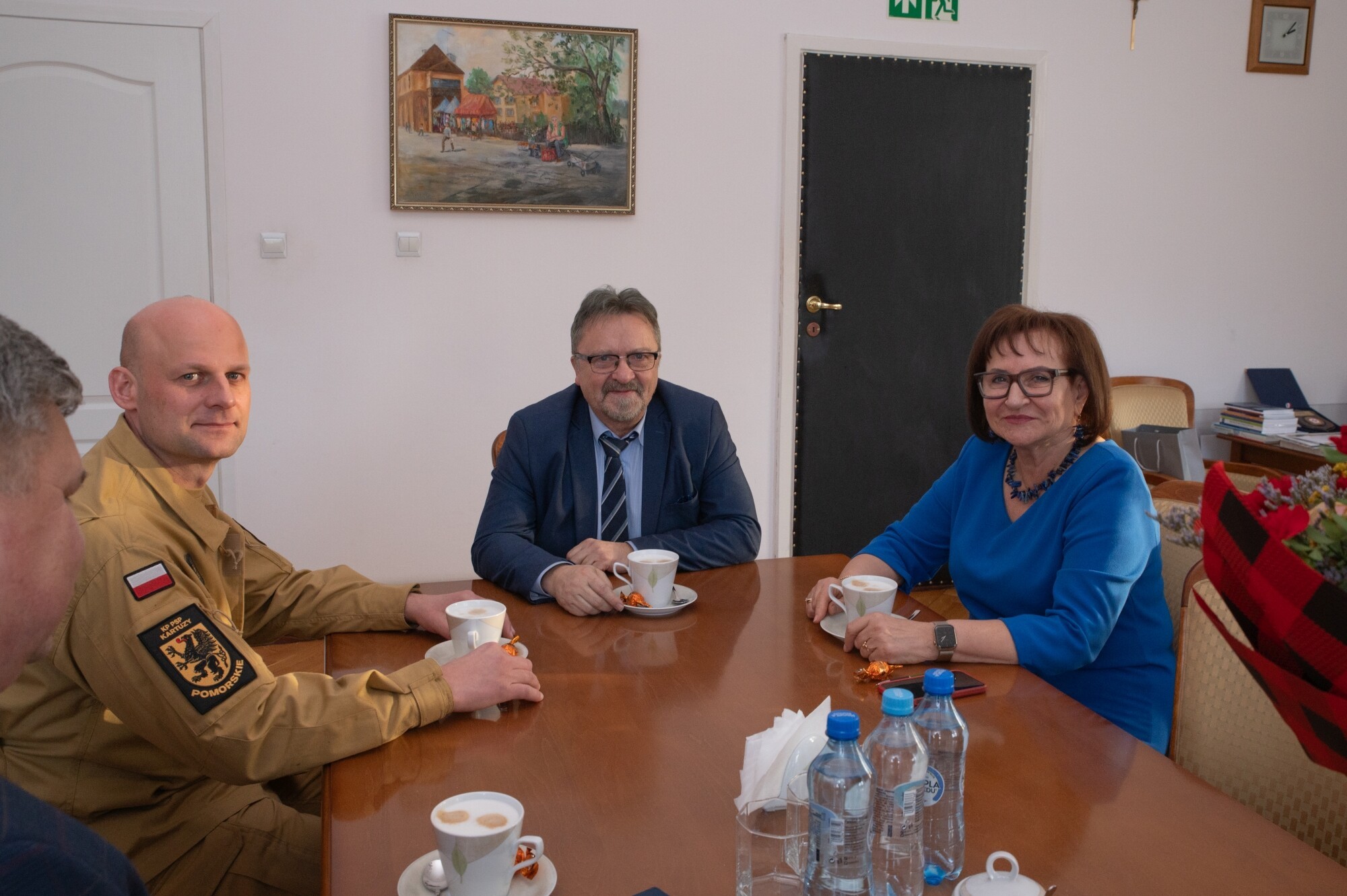 Z komendantem spotkali się: Alicja Zajączkowska – Starosta Lęborski, Edmund Głombiewski – Wicestarosta Lęborski i Cezary Kossewski – kierownik Referatu Bezpieczeństwa w Starostwie Powiatowym w Lęborku