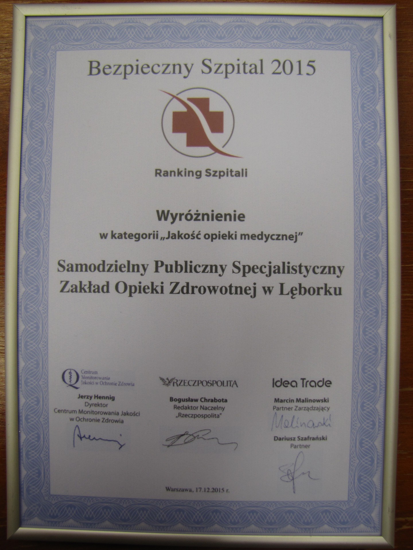 Ranking ukazał się w dodatku do dziennika „Rzeczpospolita” w dn. 17.12.2015 r. Można się z nim zapoznać również pod adresem http://www.rankingszpitali2015.pl/