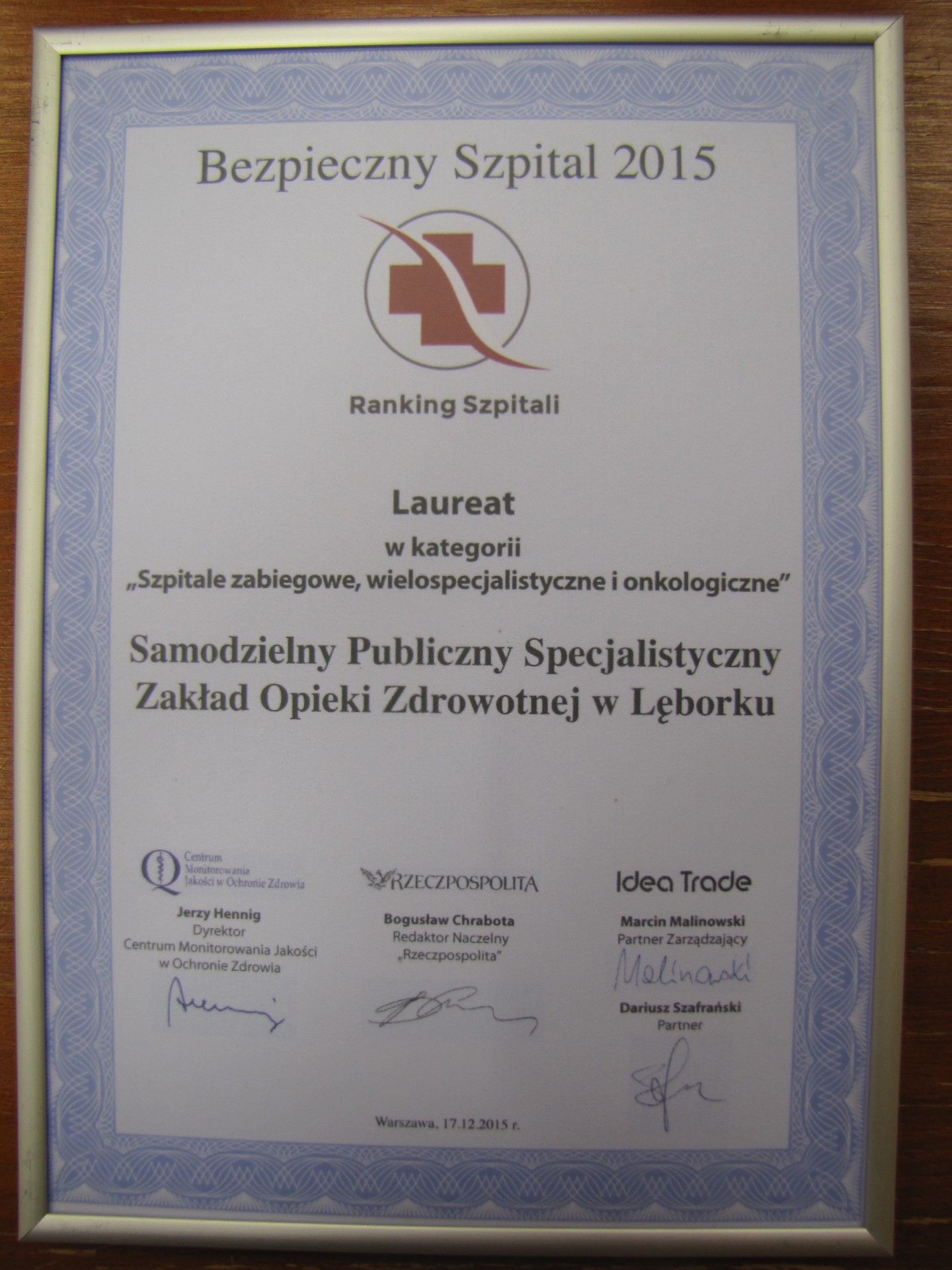 Lęborski Szpital na wysokiej pozycji w rankingu szpitali CMJ „Bezpieczny Szpital 2015”