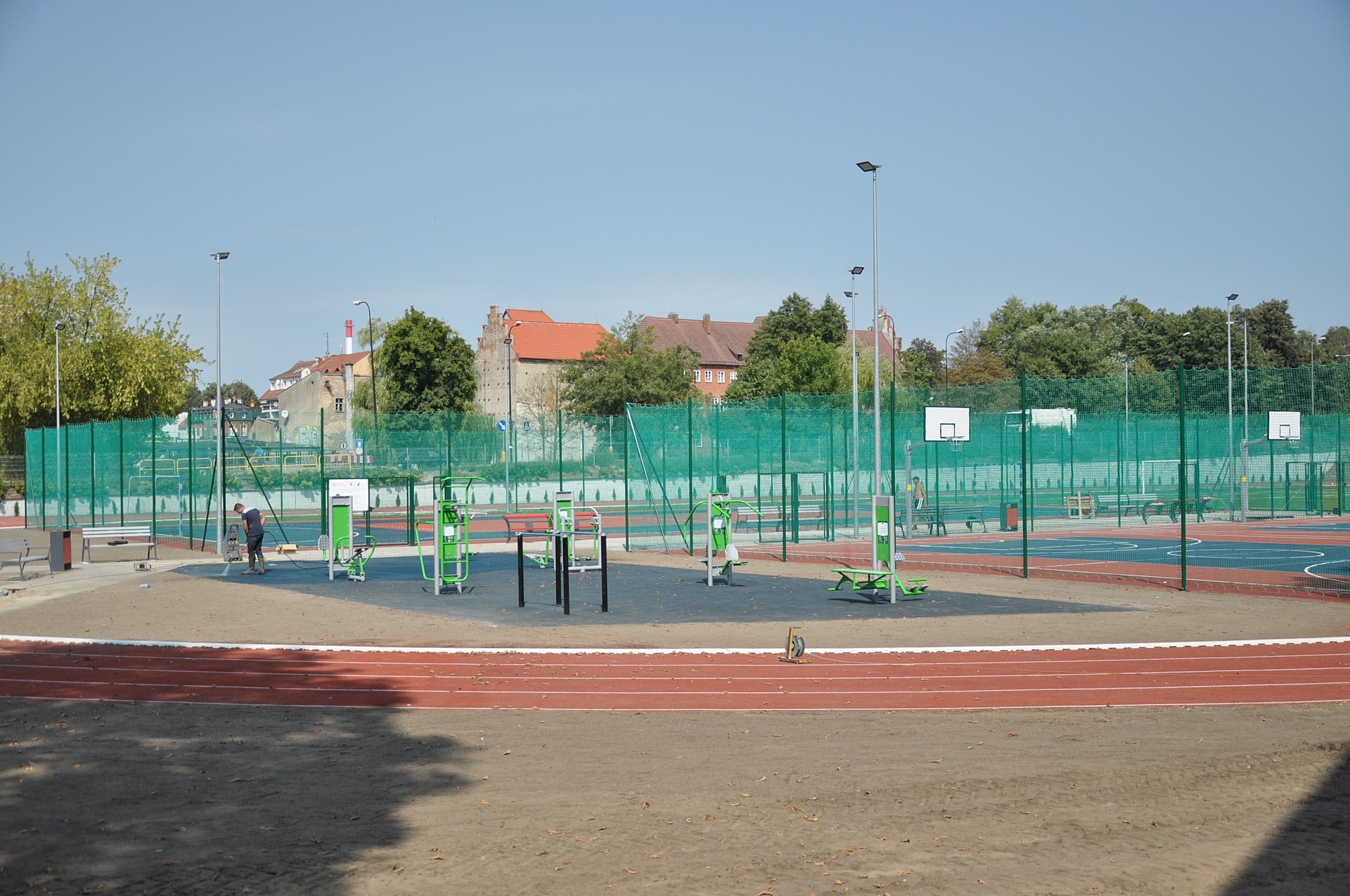 Znalazła się tu także skocznia do skoków wzwyż, rzutnia do pchnięcia kulą i wyposażona w zamontowane na stałe urządzenia treningowe, „siłownia pod chmurką”. Teren oświetla kilkanaście wysoko wydajnych i energooszczędnych naświetlaczy LED, co w połączeniu z profesjonalnym odwodnieniem nawierzchni gwarantuje możliwość przeprowadzania treningów niemal w każdych warunkach pogodowych, również po zmroku. Obszar stadionu zyskał ponadto odpowiednio pojemny punkt dostępowy bezprzewodowego internetu oraz mobilny system nagłaśniający.