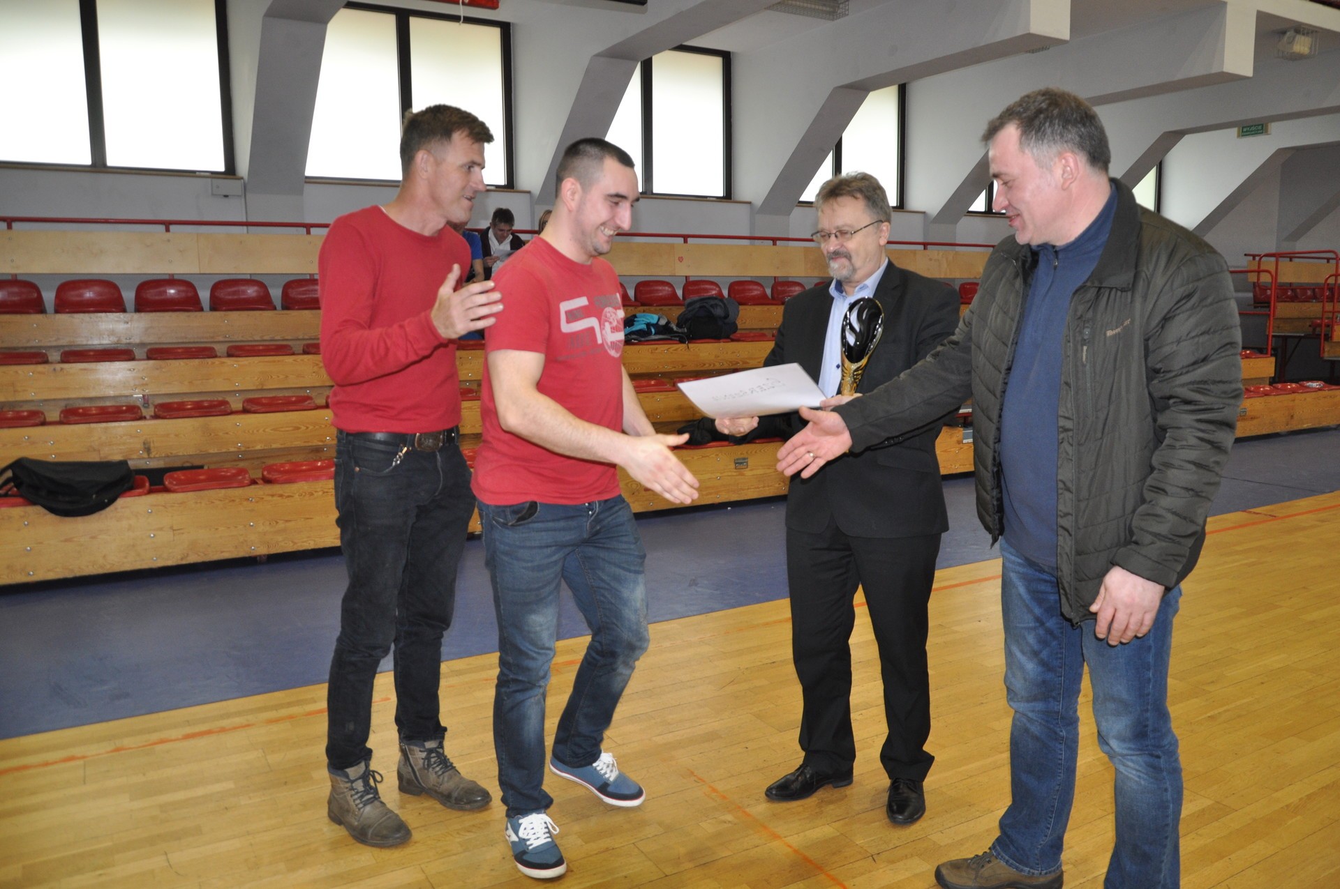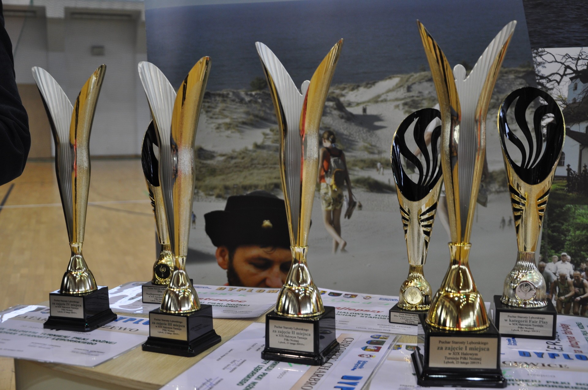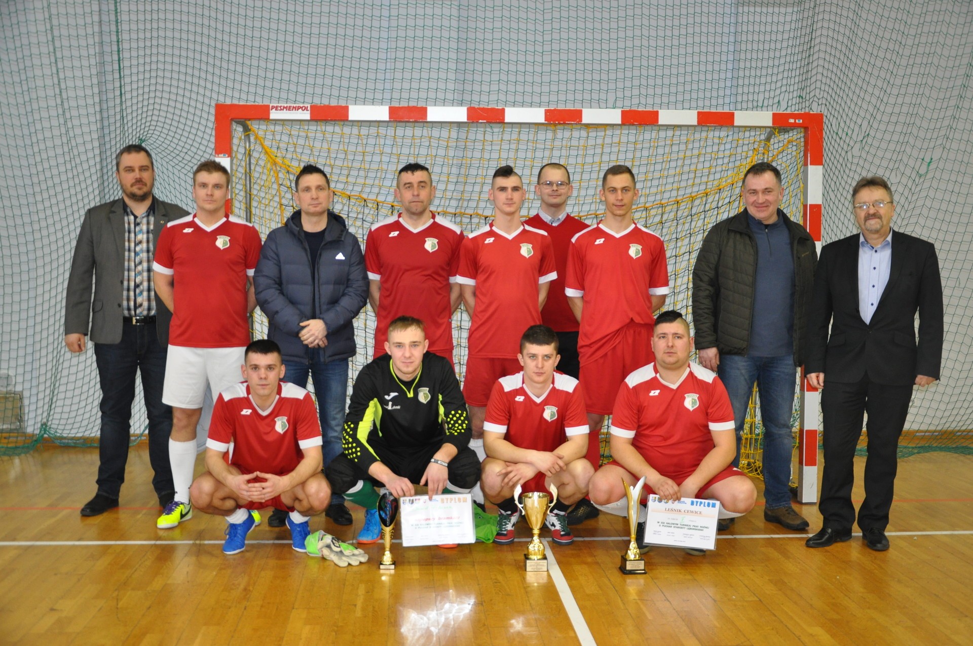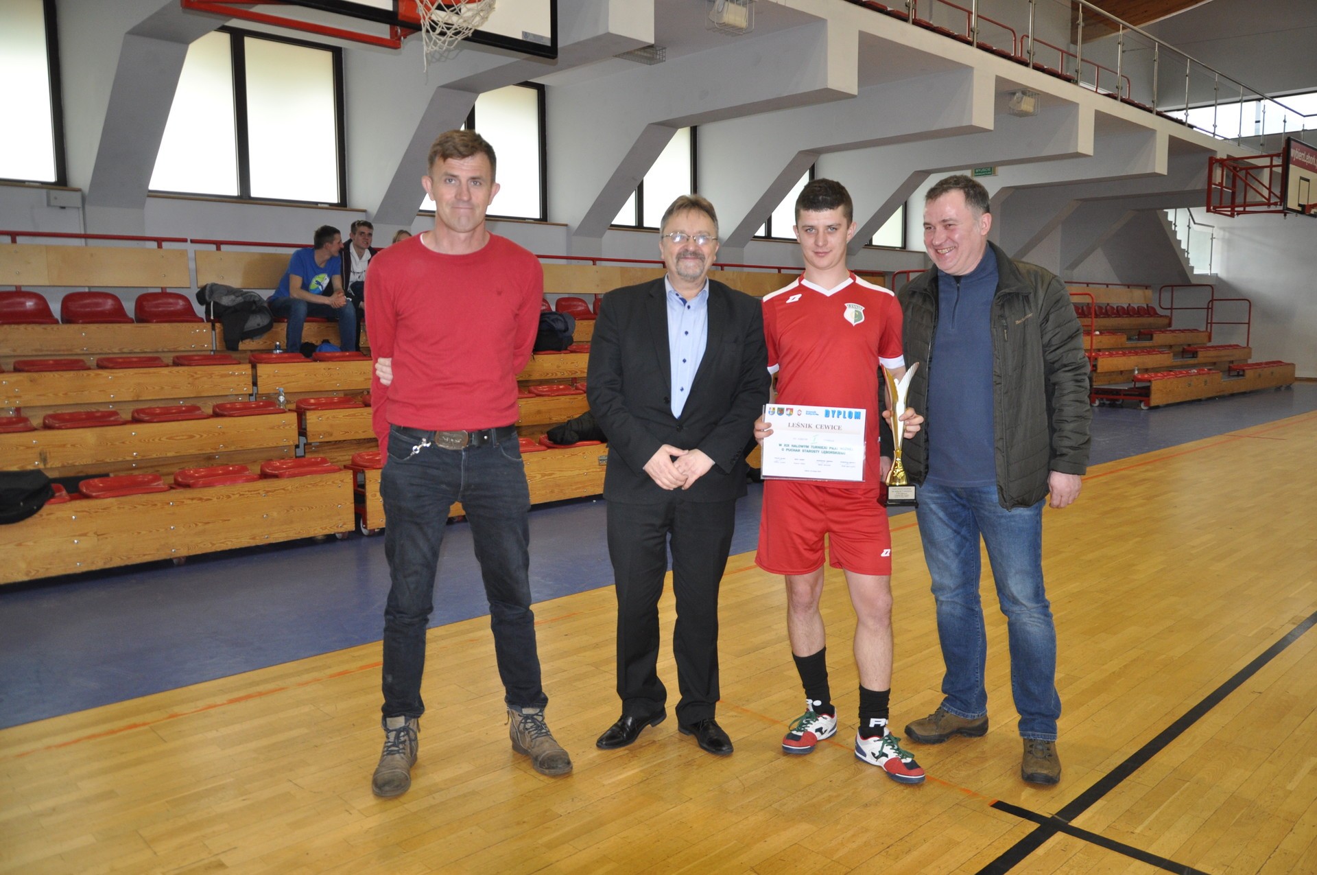Edmund Głombiewski, wicestarosta lęborski, Adam Nowak, członek Zarządu Powiatu Lęborskiego i Andrzej Syldatk, współorganizator turnieju nagrodzili najlepsze ekipy piłkarskie uczestniczące w XIX edycji Halowego Turnieju Piłki Nożnej o Puchar Starosty Lęborskiego. W tegorocznym turnieju o laury walczyło 9 zespołów.