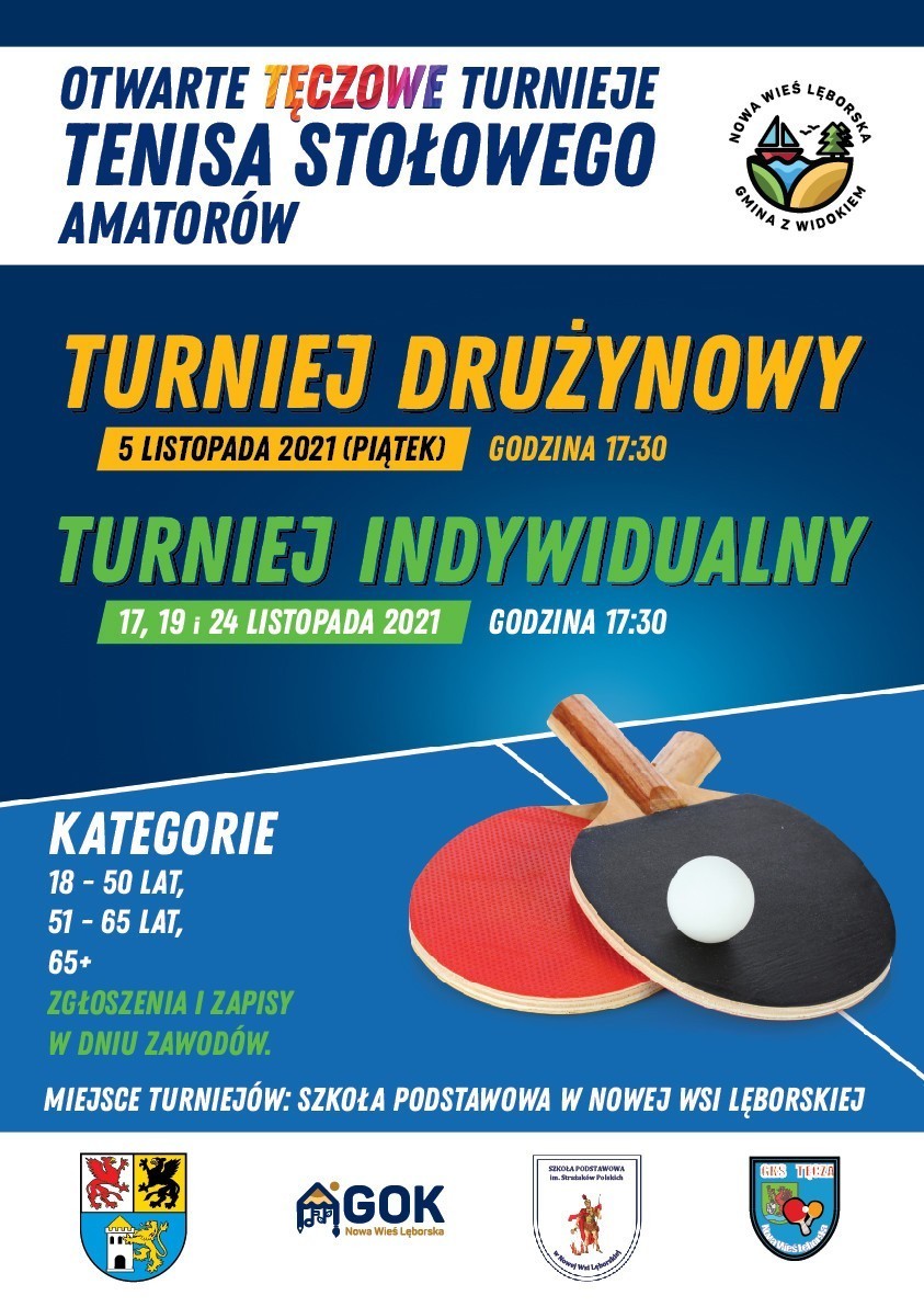 Zapraszamy miłośników tenisa stołowego do Nowej Wsi Lęborskiej na listopadowe granie w TĘCZOWYCH TURNIEJACH TENISA STOŁOWEGO AMATORÓW.