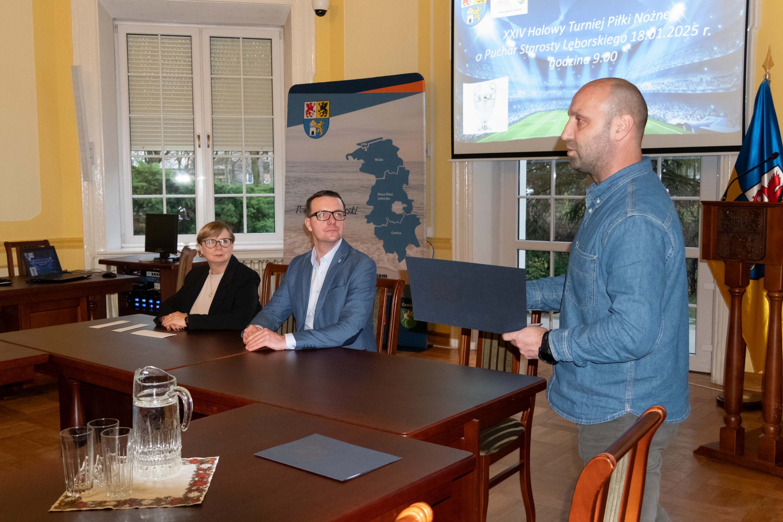 W Starostwie Powiatowym w Lęborku odbyło się losowanie grup, w których zagrają uczestnicy XXIV Halowego Turnieju Piłki Nożnej o Puchar Starosty Lęborskiego. Omówiony został również system turniejowych rozgrywek.