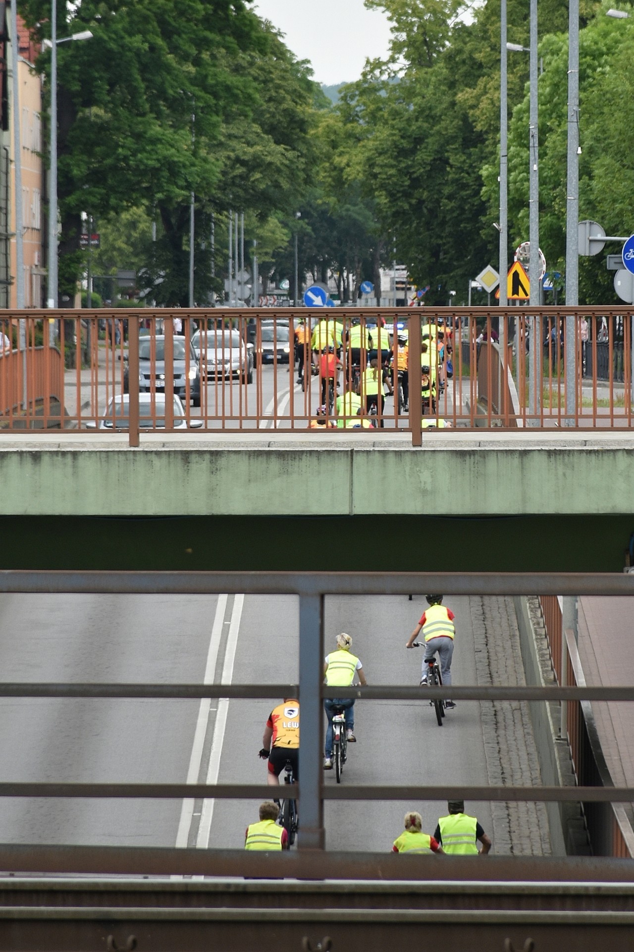Tegoroczna Masa Krytyczna wystartowała tradycyjnie z parkingu przy Salonie Sportowym „Mistral”, po czym w asyście policyjnych radiowozów przejechała ul. Żeromskiego, Toruńską, Krzywoustego i Zwycięstwa do Ronda Solidarności. Dalej Al. Niepodległości do następnego ronda. Następnie przez ul. Kossaka, w Al. Wolności, ul. Orzeszkową. Potem ul. Armii Krajowej, ulicami: Czołgistów, Jagiellońską, Mireckiego, Okrzei, I Armii WP, Słupską, Kusocińskiego przez Osiedle Sportowe, ul. Mieszka I, by zakończyć rajd w miejscu startu. Jak podkreślają rowerzyści, dobrze jest chociaż raz w roku zaprezentować innym uczestnikom ruchu drogowego, jak wielu jest użytkowników rowerów. To pomaga we wzajemnym szanowaniu się na drodze i poprawia kulturę jazdy. Ważnym elementem jest dobre oznakowanie, tak więc wszelkie elementy świetlne i odblaskowe są niezbędnym wyposażeniem każdego rowerzysty. Przy okazji Masy Krytycznej, uczestnicy otrzymują od organizatorów takie elementy poprawiające widoczność na drodze. Powiat Lęborski, jako, że jednym z priorytetów powiatowego samorządu jest bezpieczeństwo mieszkańców, w tym bezpieczeństwo w ruchu drogowym, wyposażył uczestników przejazdu w specjalne przewiewne kamizelki odblaskowe, dopasowane zarówno do stroju letniego, jak i do ubioru w miesiącach chłodniejszych, ponieważ swobodnie można zmieniać ich rozmiar. Masa Krytyczna wpisuje się również świetnie w działania Powiatu popularyzujące aktywny styl życia, w tym w akcję „Powiat Lęborski – Z nami zdrowo i sportowo”. Wiele ze wspólnie zebranych – na dzień dzisiejszy 227.565 km „nakręcili” rowerzyści. Do akcji można się jeszcze przyłączyć, a wspólne zbieranie kilometrów w tej edycji kończymy 31 lipca br. Podczas uroczystego zakończenia akcji, 25 sierpnia, podczas którego nagrody otrzymają najaktywniejsi uczestnicy, zapewne spotkamy się z wieloma uczestnikami rowerowej Masy Krytycznej.