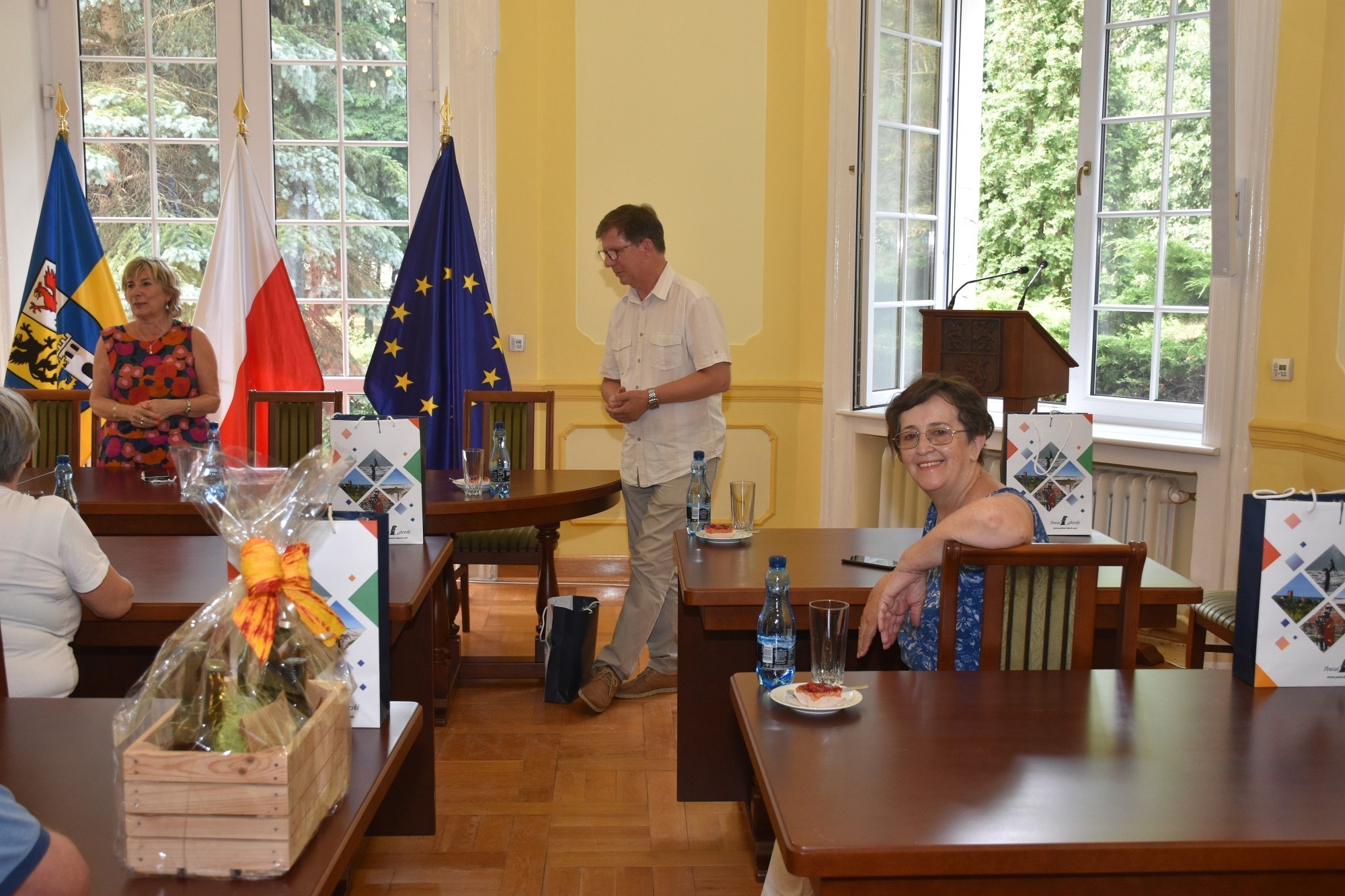 W miniony piątek (23 lipca), starosta Alicja Zajączkowska uczestniczyła w wernisażu wystawy „I anieli go powiedli”, przygotowanej przez Muzeum w Lęborku w wieży Sanktuarium św. Jakuba Ap., poświęconej malarskiej twórczości Krzysztofa Grzesiaka i upamiętniającej postać niedawno zmarłego artysty, będącego m.in. współtwórcą Międzynarodowej Enklawy Malarzy, odbywającej się w Łebie.