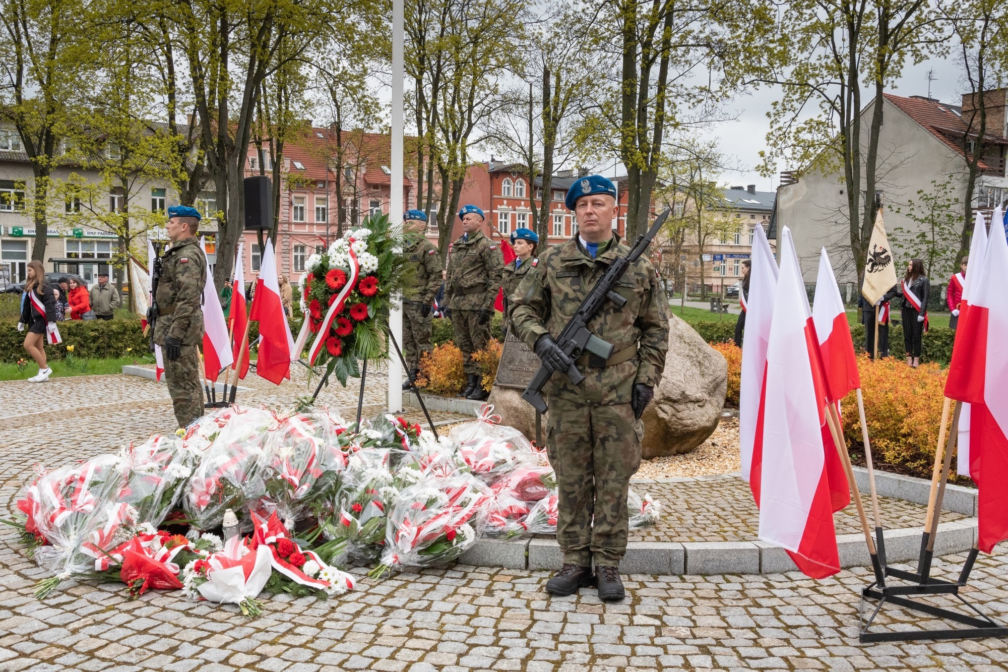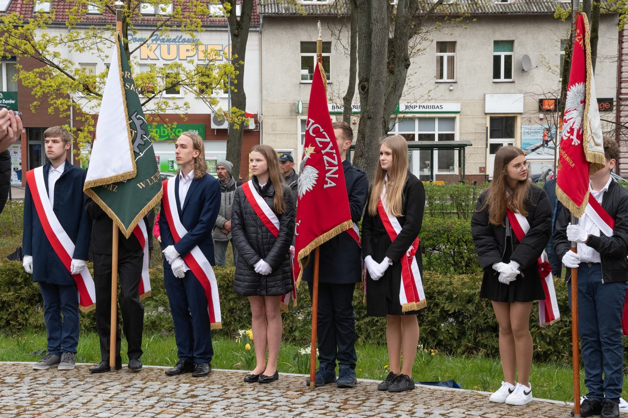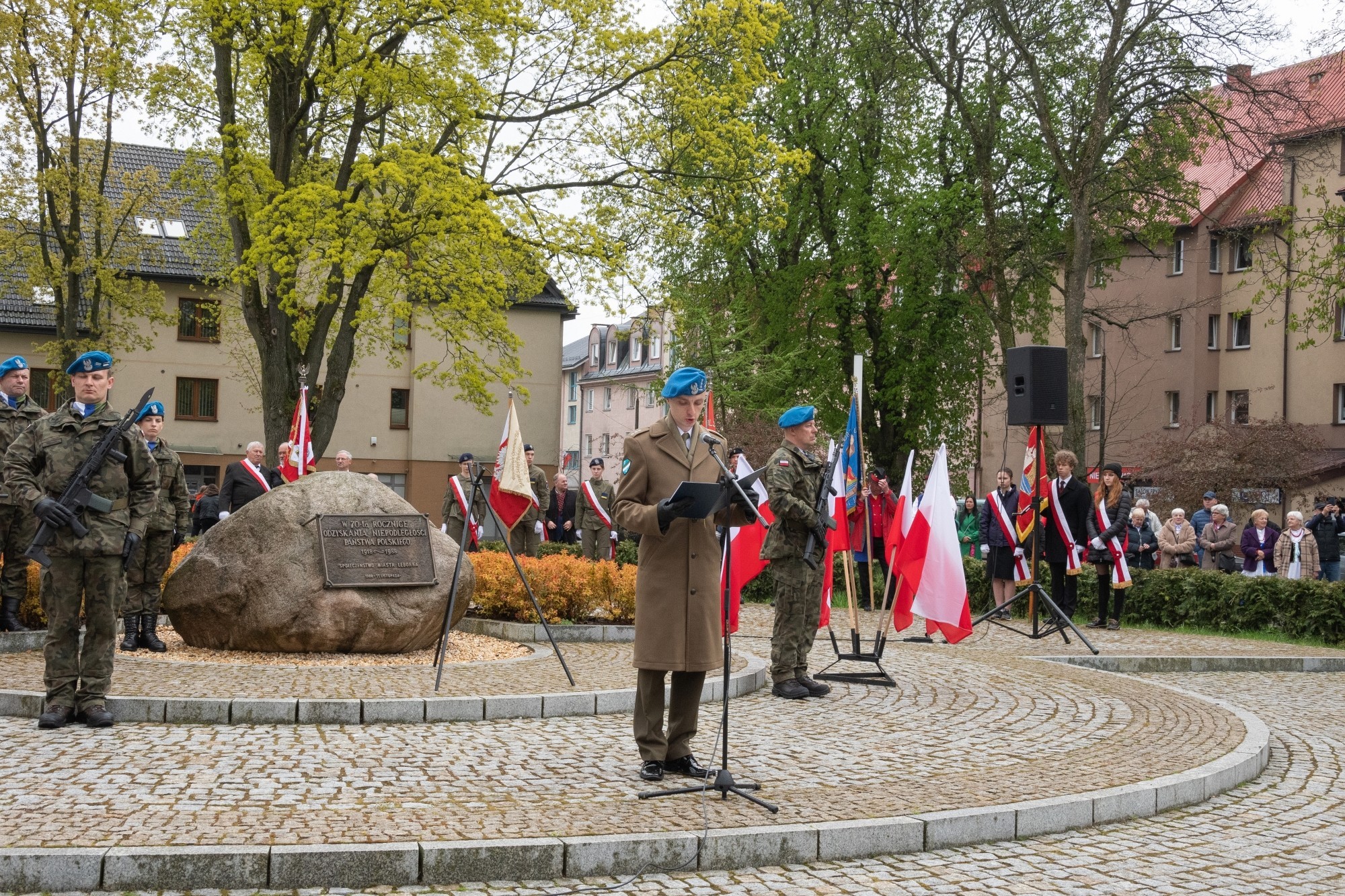 Przywołanym faktom historycznym towarzyszyły odniesienia do obecnej sytuacji militarnego konfliktu w środku Europy oraz do świętowanego wcześniej Dnia Flagi Rzeczpospolitej Polskiej – symbolu jednoczącego społeczeństwo. Podobnie jak dzień wcześniej o potrzebie narodowej jedności i solidarności mówił Edmund Głombiewski – Wicestarosta Lęborski, dzisiaj te same wartości prawa do wolności, demokracji i niezależności wyartykułował burmistrz Witold Namyślak.