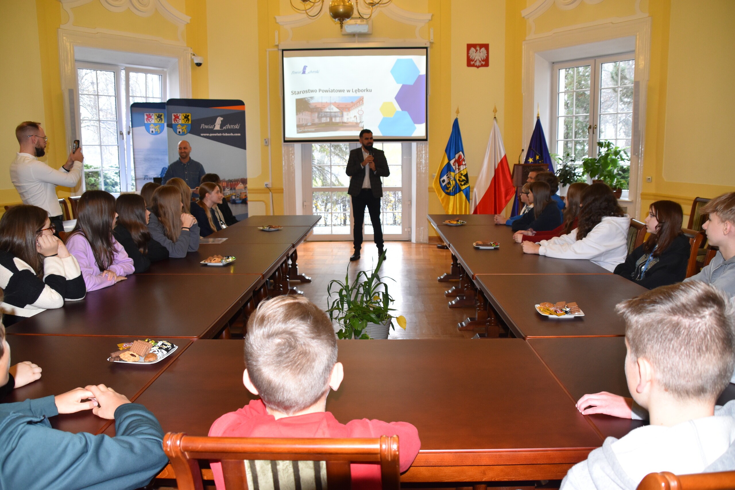 O zadaniach urzędu i jednostek, dla których organem prowadzącym jest Powiat Lęborski mówił również Krystian Kuczyński –inspektor Wydziału Edukacji i Spraw Społecznych, zaś wycieczkę po budynku wraz z omówieniem zakresu spraw realizowanych przez poszczególne wydziały i referaty przygotował Mateusz Podlewski z Wydziału Organizacyjnego.