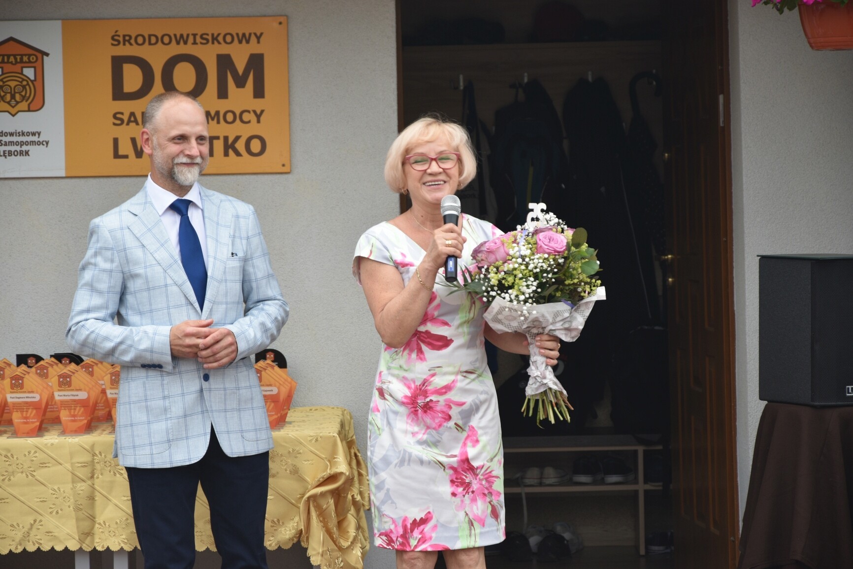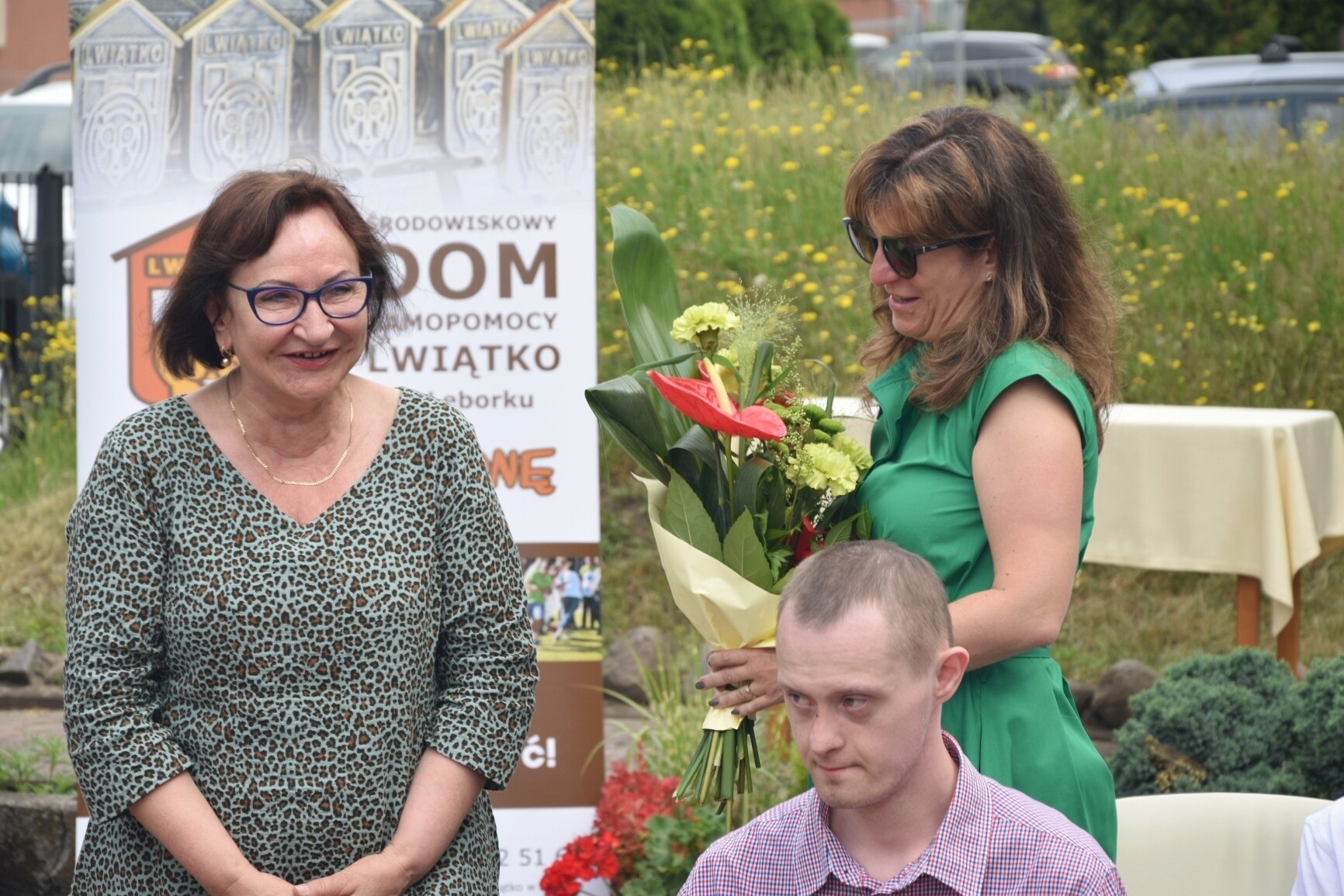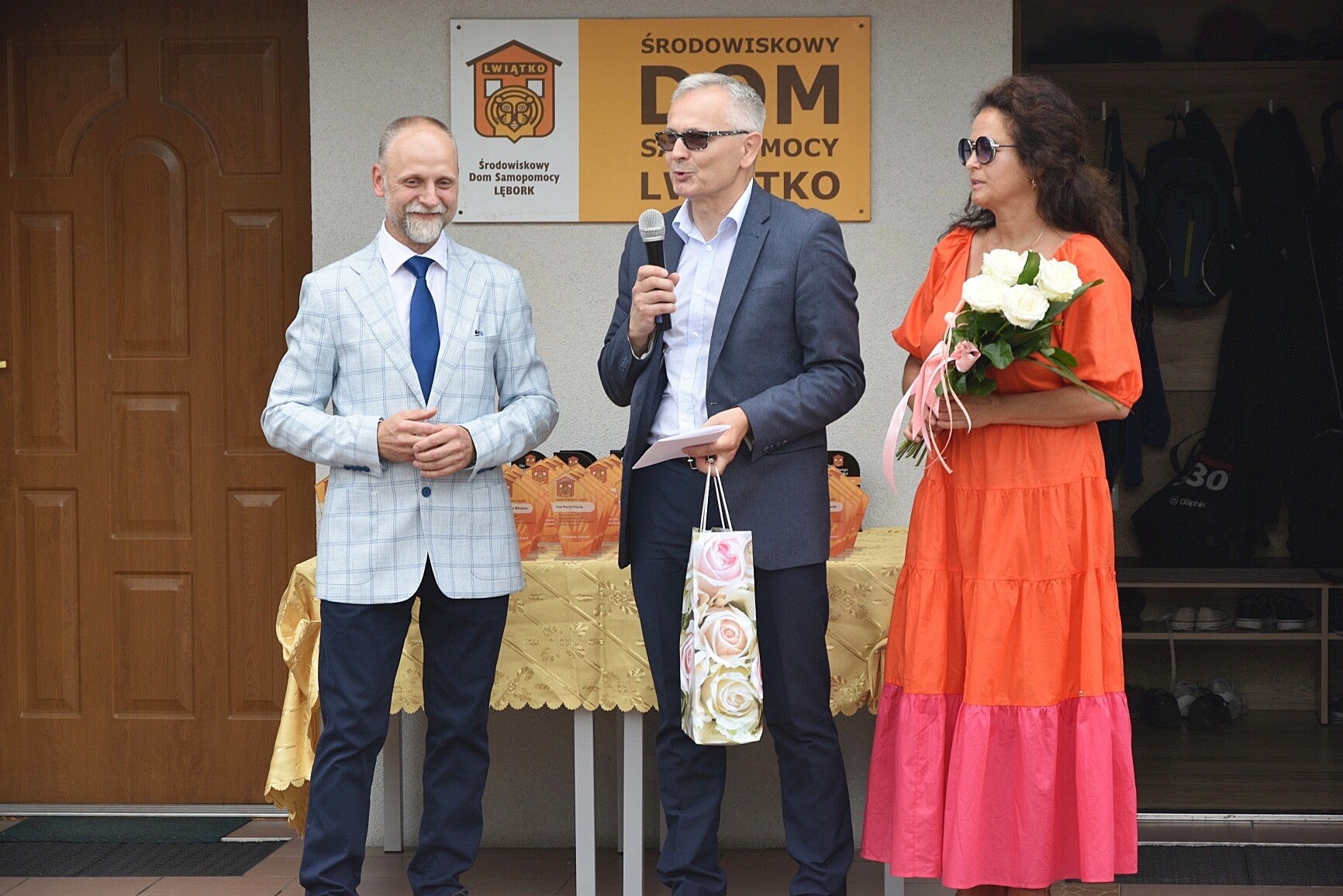 Wśród gości obecni byli m.in.: Ewa Szczypior, reprezentująca Wojewodę Pomorskiego, Starosta Lęborski Alicja Zajączkowska, burmistrz Lęborka Witold Namyślak, przedstawiciele licznych instytucji publicznych oraz przyjaciele „Lwiątka”. Rocznicowe uroczystości prowadził Jarosław Klassa, dyrektor ŚDS. Był czas na wspomnienia, podziękowania za pomoc w realizacji inwestycji i wyróżnienie statuetkami osób najbardziej związanych z ośrodkiem. Jedną ze statuetek otrzymał Jan Przychoda, były burmistrz Lęborka, całym sercem oddany idei tej jednostki. – Bardzo się cieszę, że mogę tu z wami być, bo tutaj zawsze panuje świetna rodzinna, przyjacielska atmosfera – mówiła starosta Alicja Zajączkowska – Gratuluję wam bardzo dużego grona wiernych i oddanych przyjaciół. Życzę kolejnych szczęśliwych jubileuszy i ogromu szczęścia, na które zasługujecie wszyscy – tak kadra ośrodka, jak i uczestnicy zajęć.