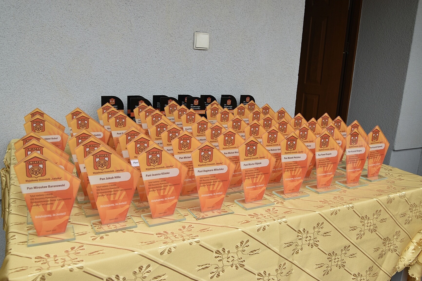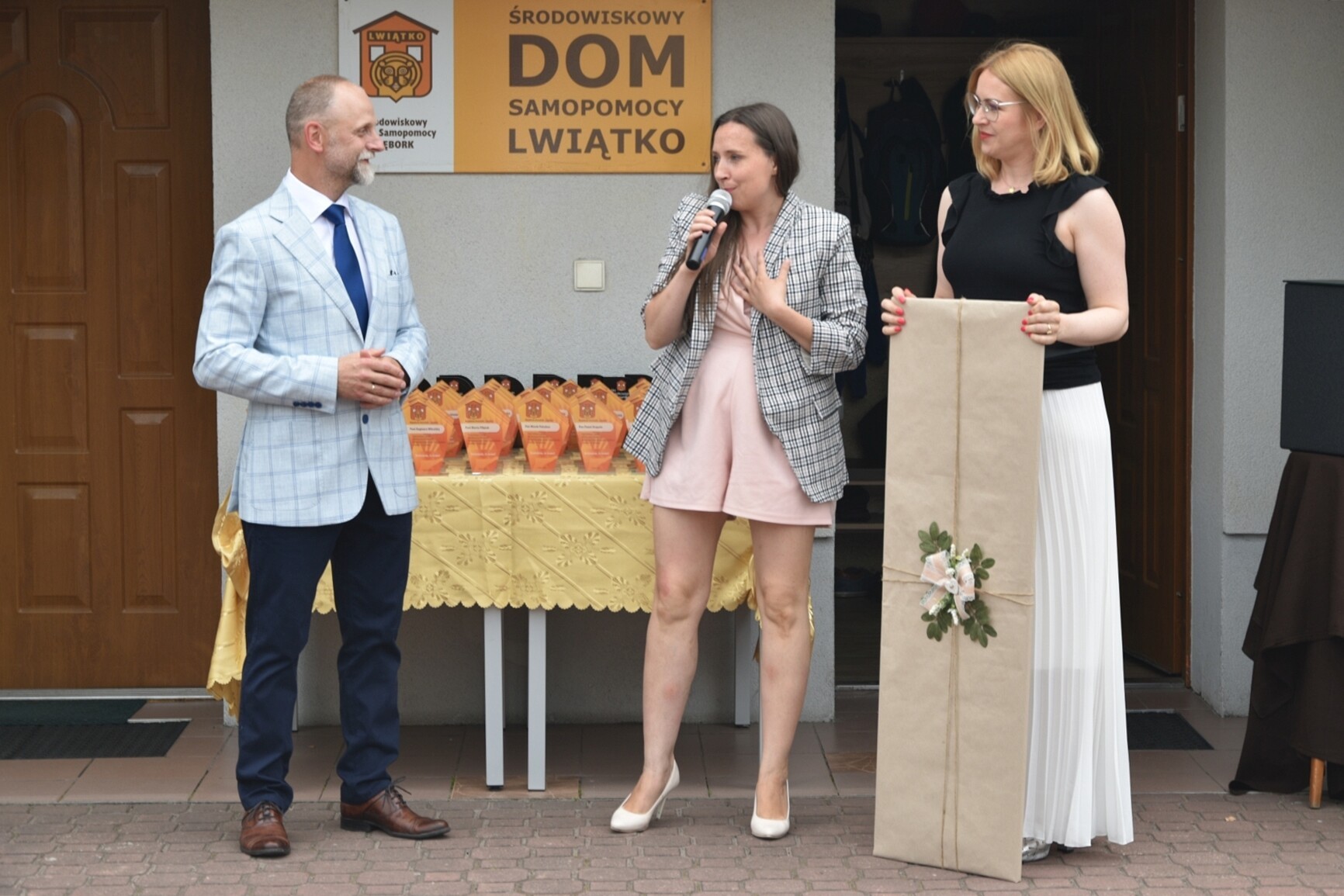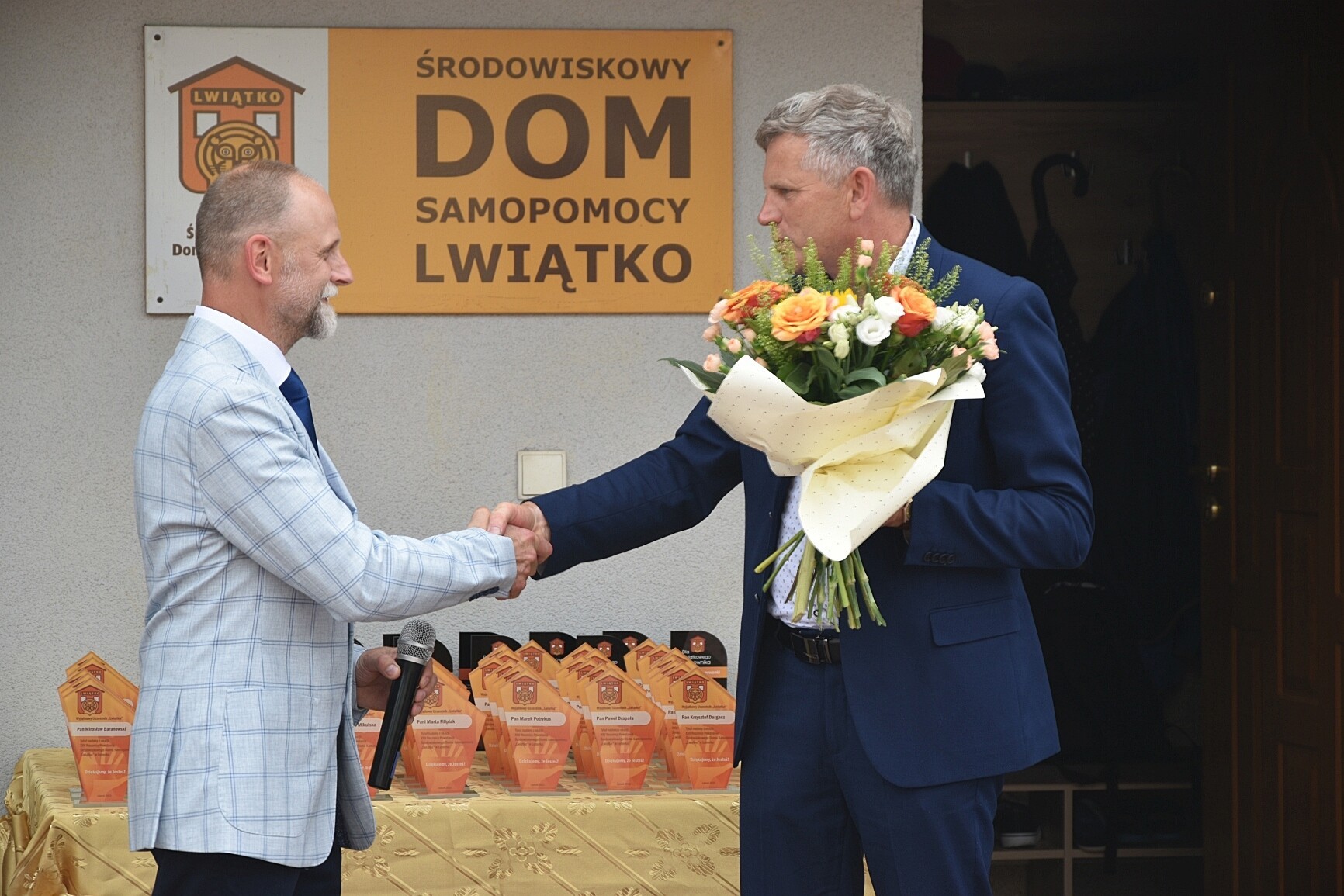 Wśród gości obecni byli m.in.: Ewa Szczypior, reprezentująca Wojewodę Pomorskiego, Starosta Lęborski Alicja Zajączkowska, burmistrz Lęborka Witold Namyślak, przedstawiciele licznych instytucji publicznych oraz przyjaciele „Lwiątka”. Rocznicowe uroczystości prowadził Jarosław Klassa, dyrektor ŚDS. Był czas na wspomnienia, podziękowania za pomoc w realizacji inwestycji i wyróżnienie statuetkami osób najbardziej związanych z ośrodkiem. Jedną ze statuetek otrzymał Jan Przychoda, były burmistrz Lęborka, całym sercem oddany idei tej jednostki. – Bardzo się cieszę, że mogę tu z wami być, bo tutaj zawsze panuje świetna rodzinna, przyjacielska atmosfera – mówiła starosta Alicja Zajączkowska – Gratuluję wam bardzo dużego grona wiernych i oddanych przyjaciół. Życzę kolejnych szczęśliwych jubileuszy i ogromu szczęścia, na które zasługujecie wszyscy – tak kadra ośrodka, jak i uczestnicy zajęć.