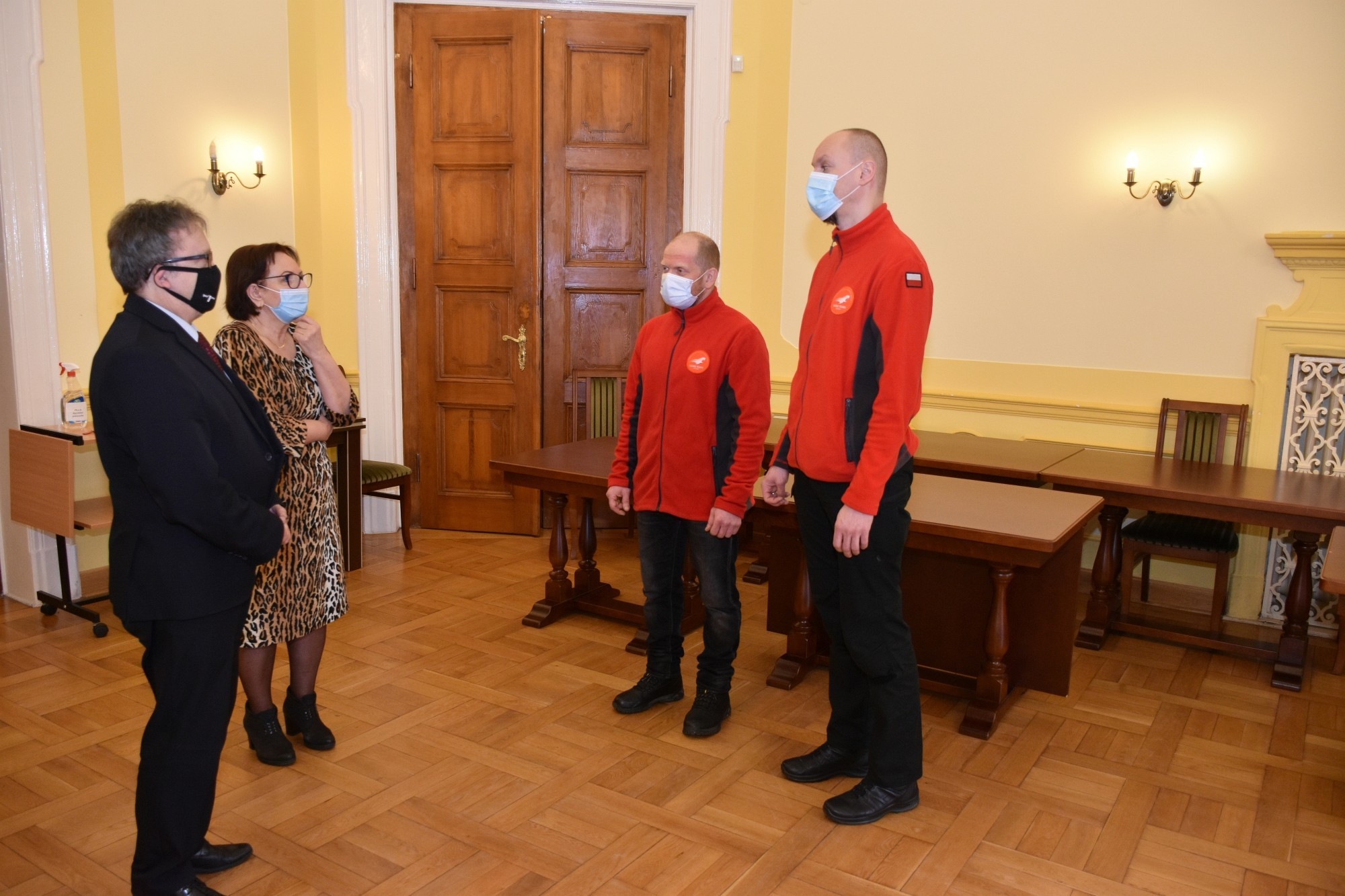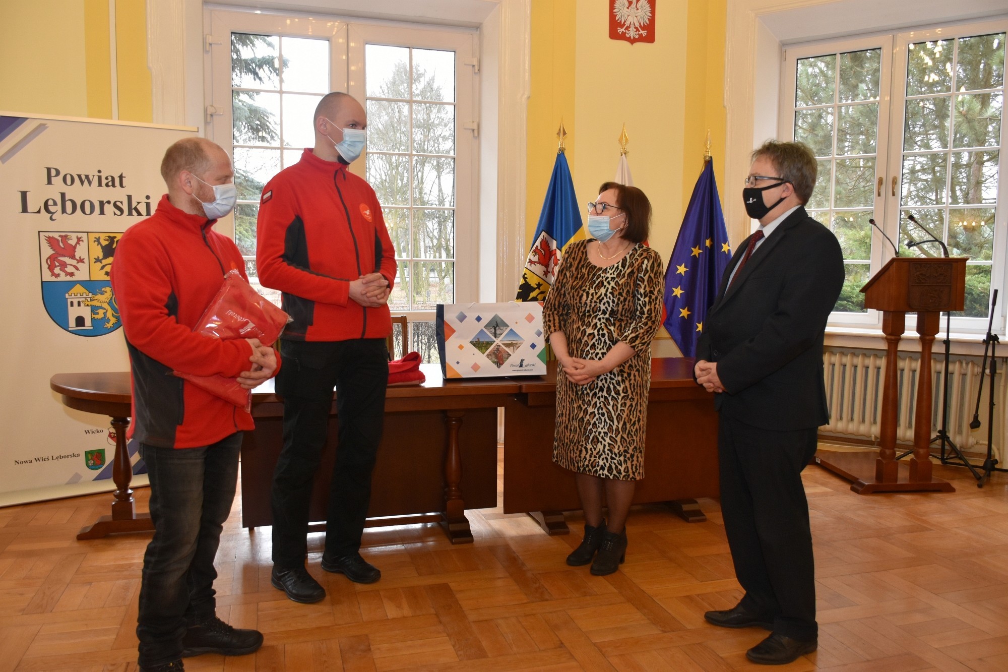 O zdrowym stylu życia, podnoszeniu odporności organizmu w trudnych czasach pandemii rozmawiali przedstawiciele Mors Team Lębork ze Starostą Lęborskim i Wicestarostą podczas czwartkowej wizyty w urzędzie.