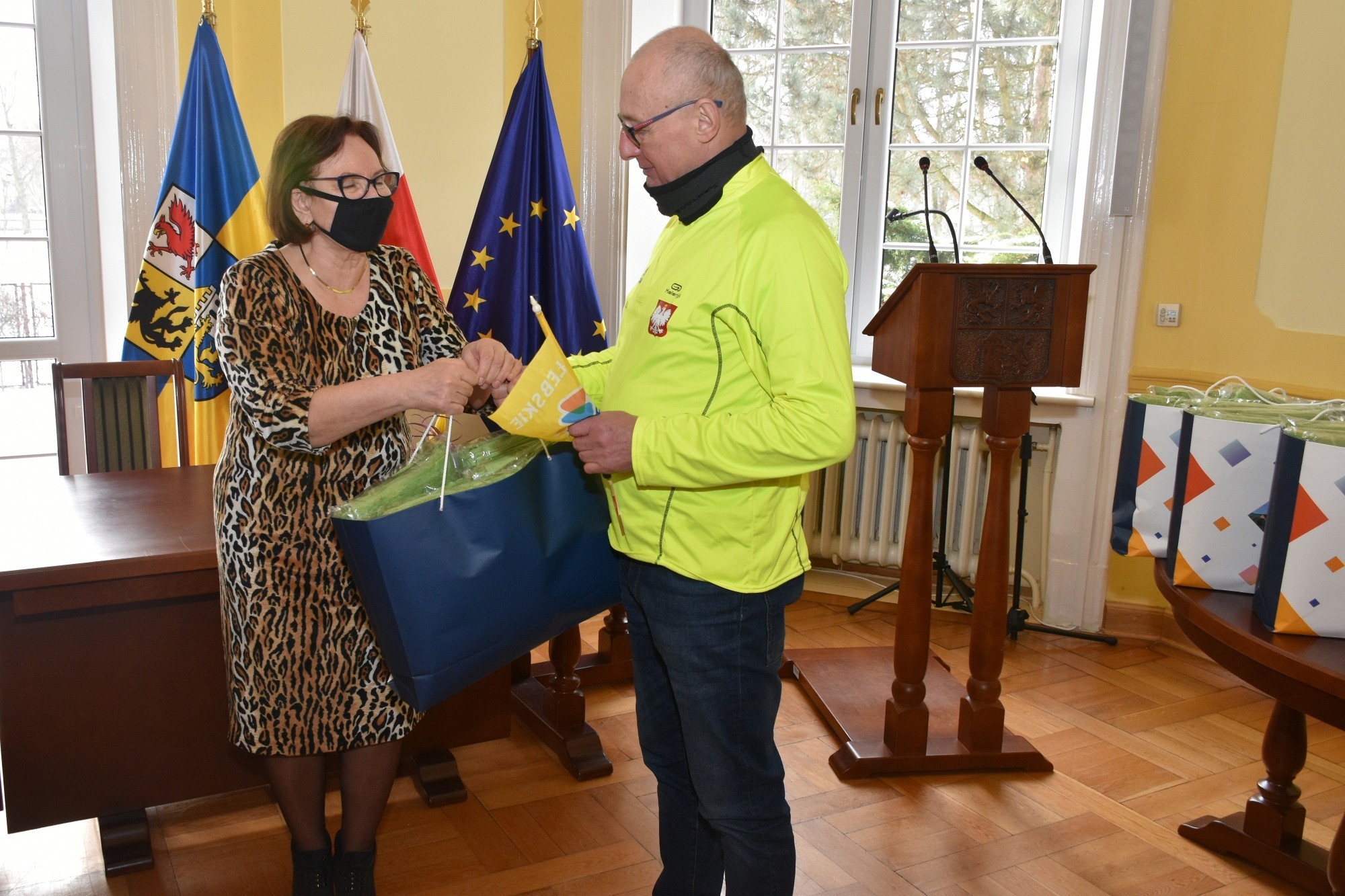 Starosta Lęborski Alicja Zajączkowska i Wicestarosta Edmund Głombiewski gościli reprezentantów Klubu Łeba Mors Poland. To najstarszy klub skupiający miłośników morsowania w powiecie lęborskim.